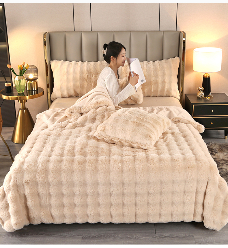 当前位置: 91家纺网 > 商品网购 > 毛毯休闲毯绒毯 > 毛毯 > 栩裕纺织 2025新款纯色托斯卡纳兔毛大泡泡绒毛毯 米杏