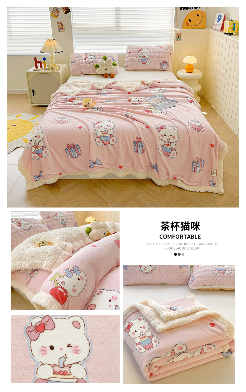 商品名称:雯豆家纺 2025新款双面暖绒多功能被套毯盖毯毯子 甜心布布