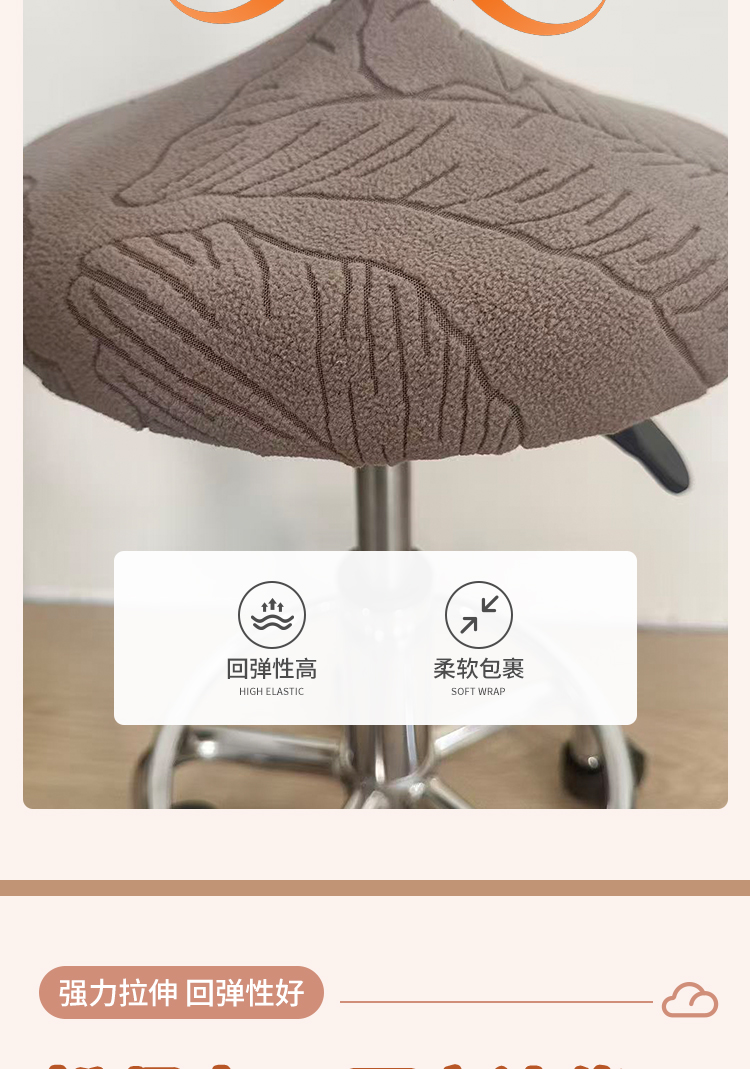 商品名称:逐日沙发套 2025新款提花绒针织款圆凳套-叶沙 叶沙-咖色