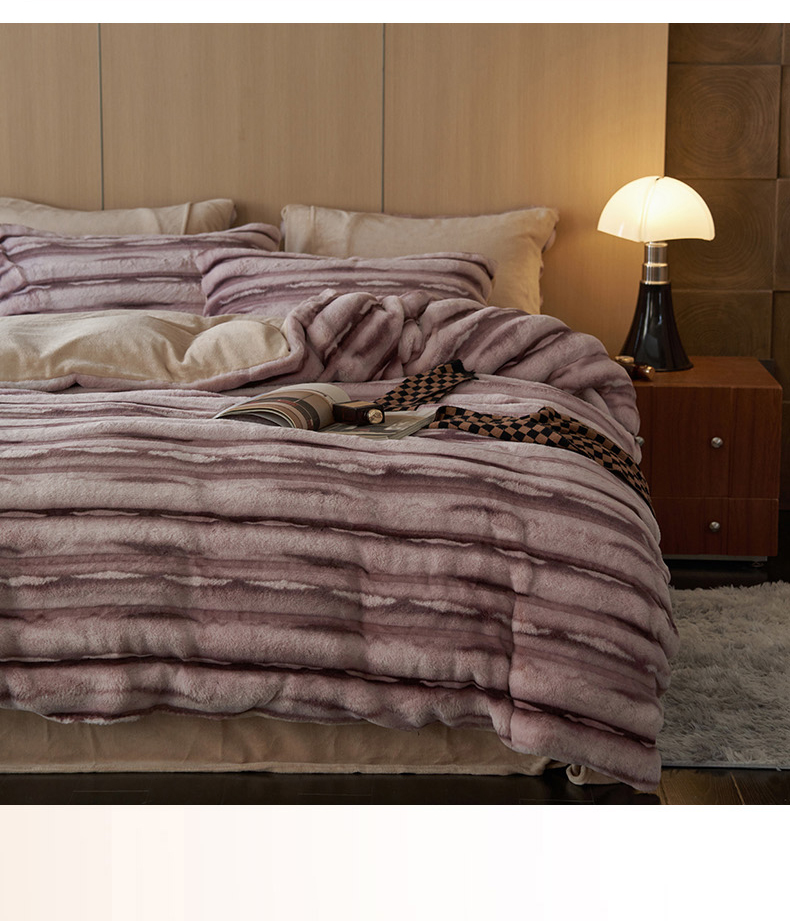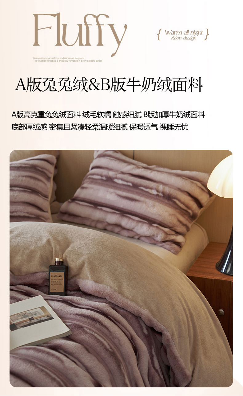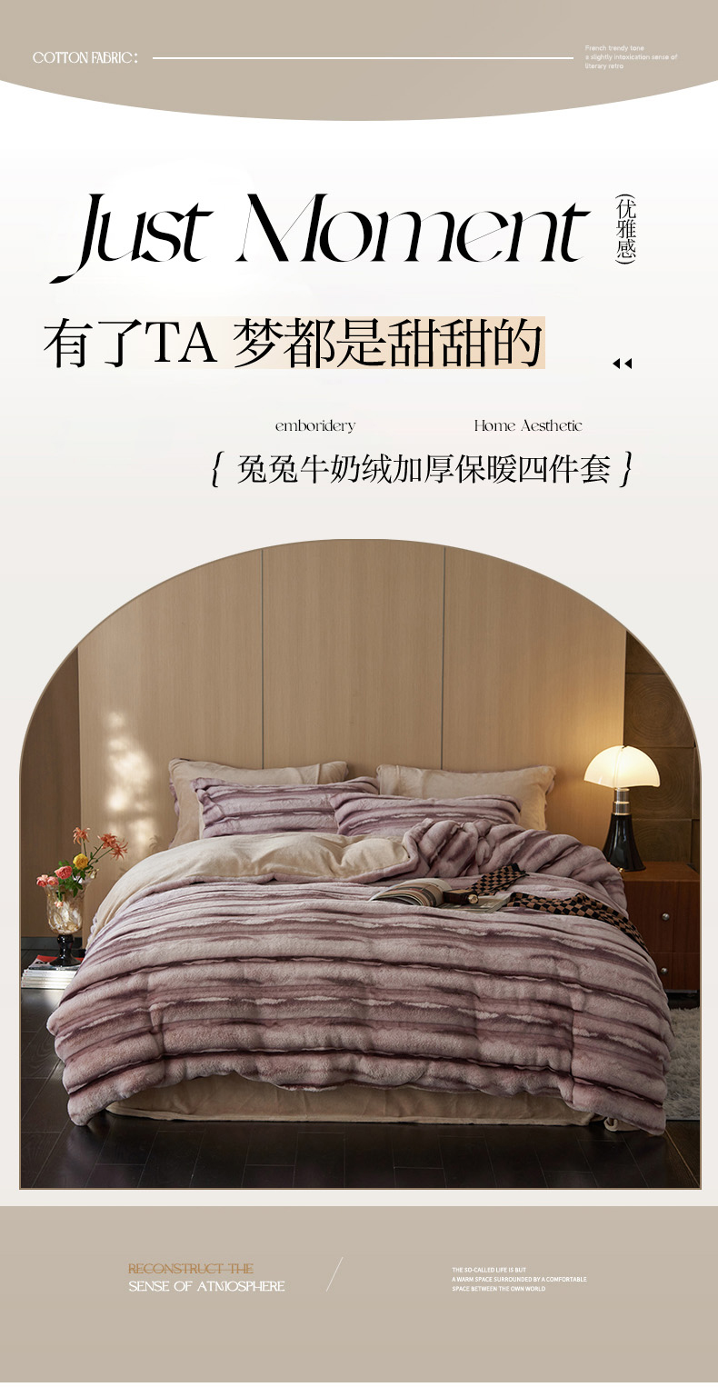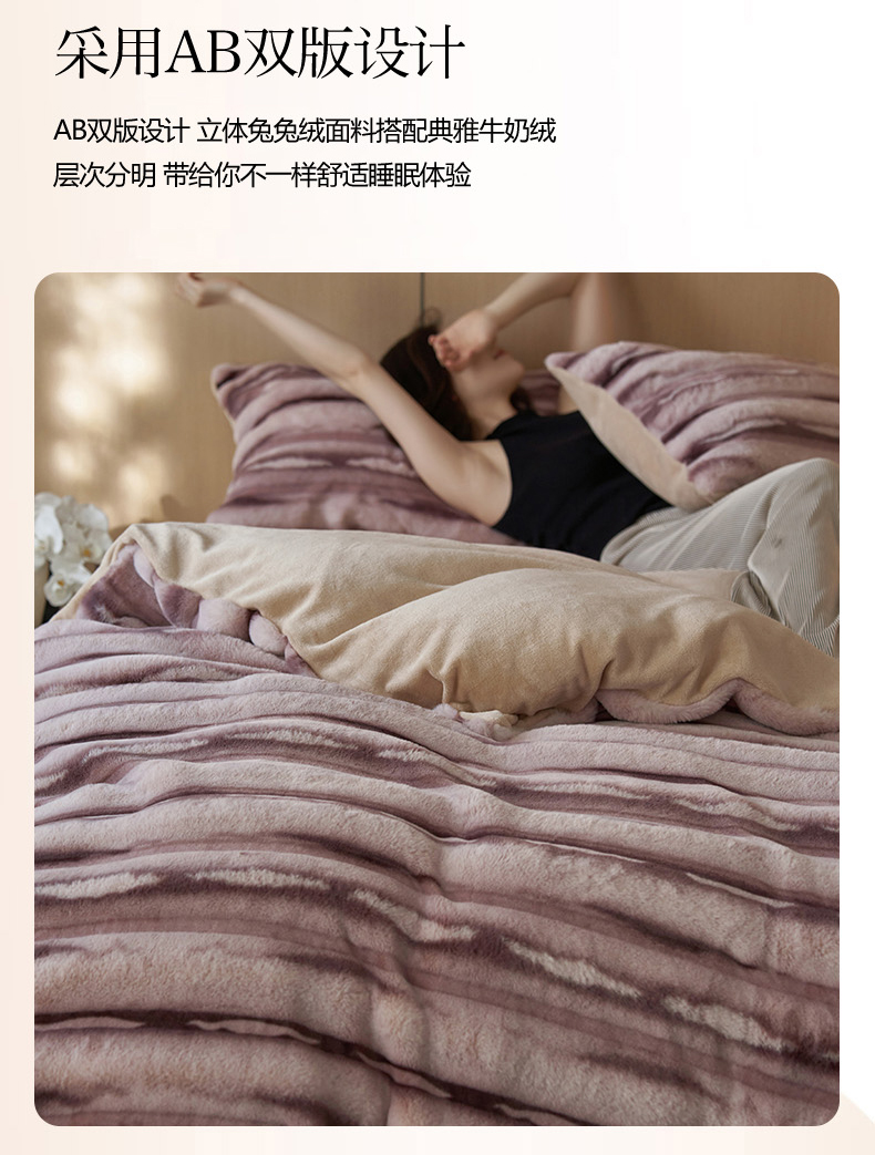 商品名称:眠博士 2025新款兔兔牛奶绒加厚保暖四件套 兔兔绒-条条紫咖