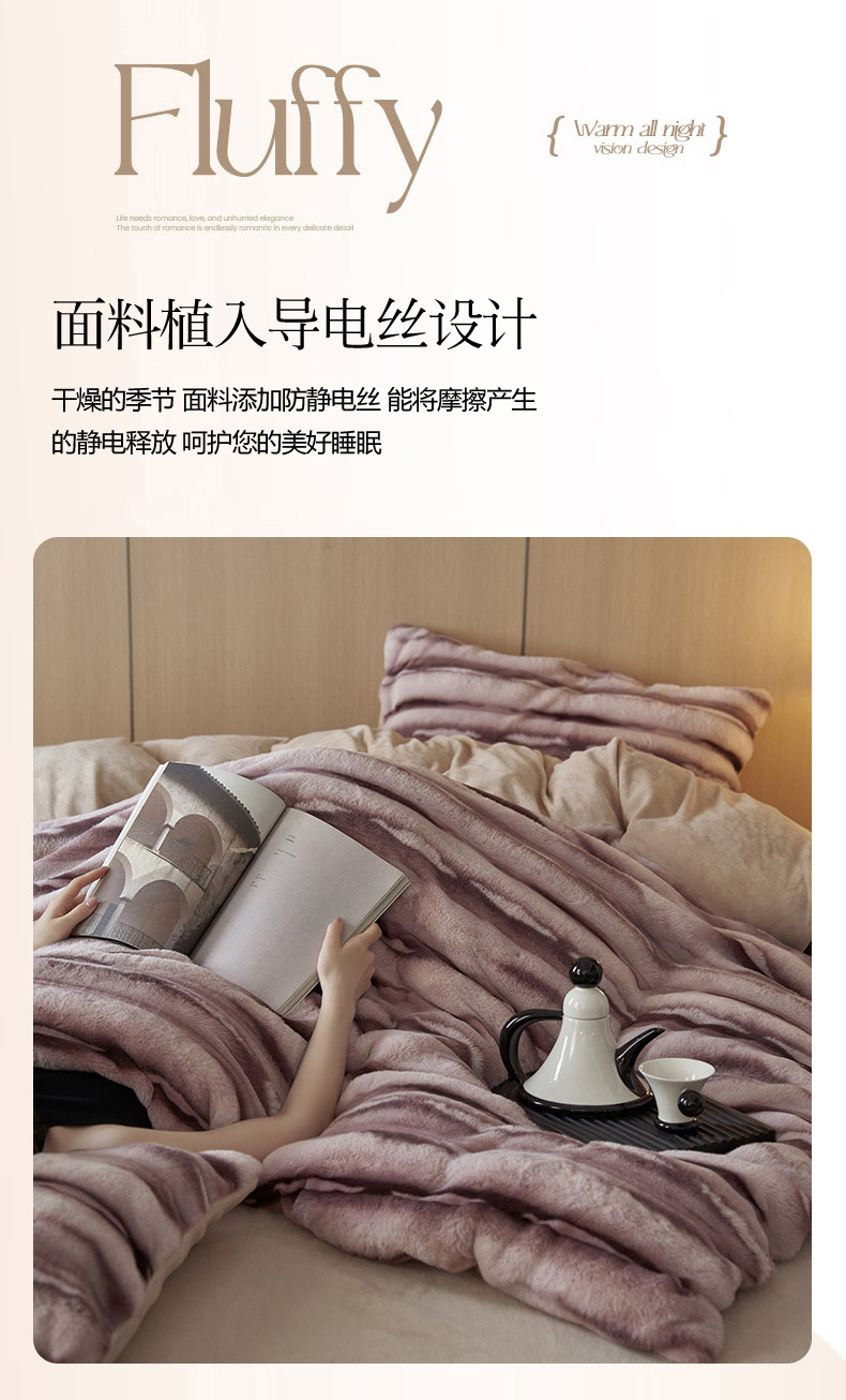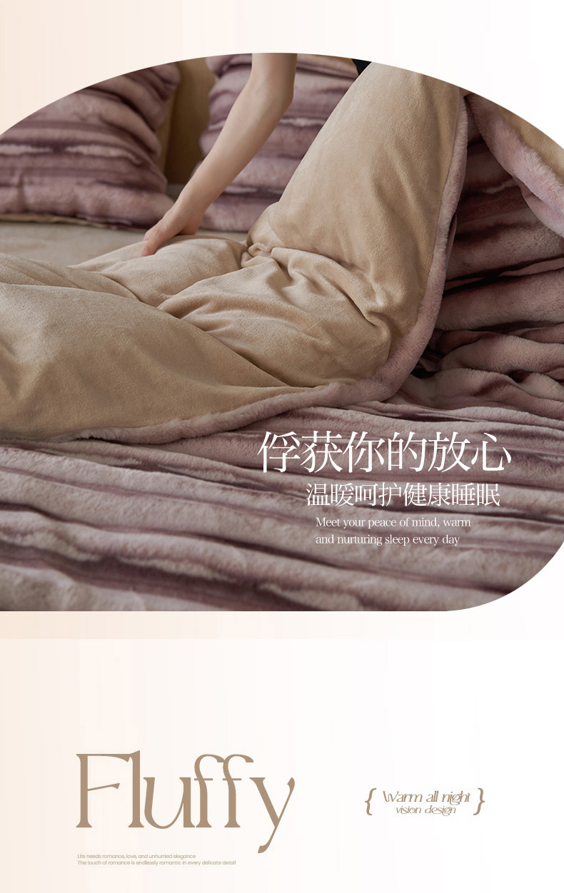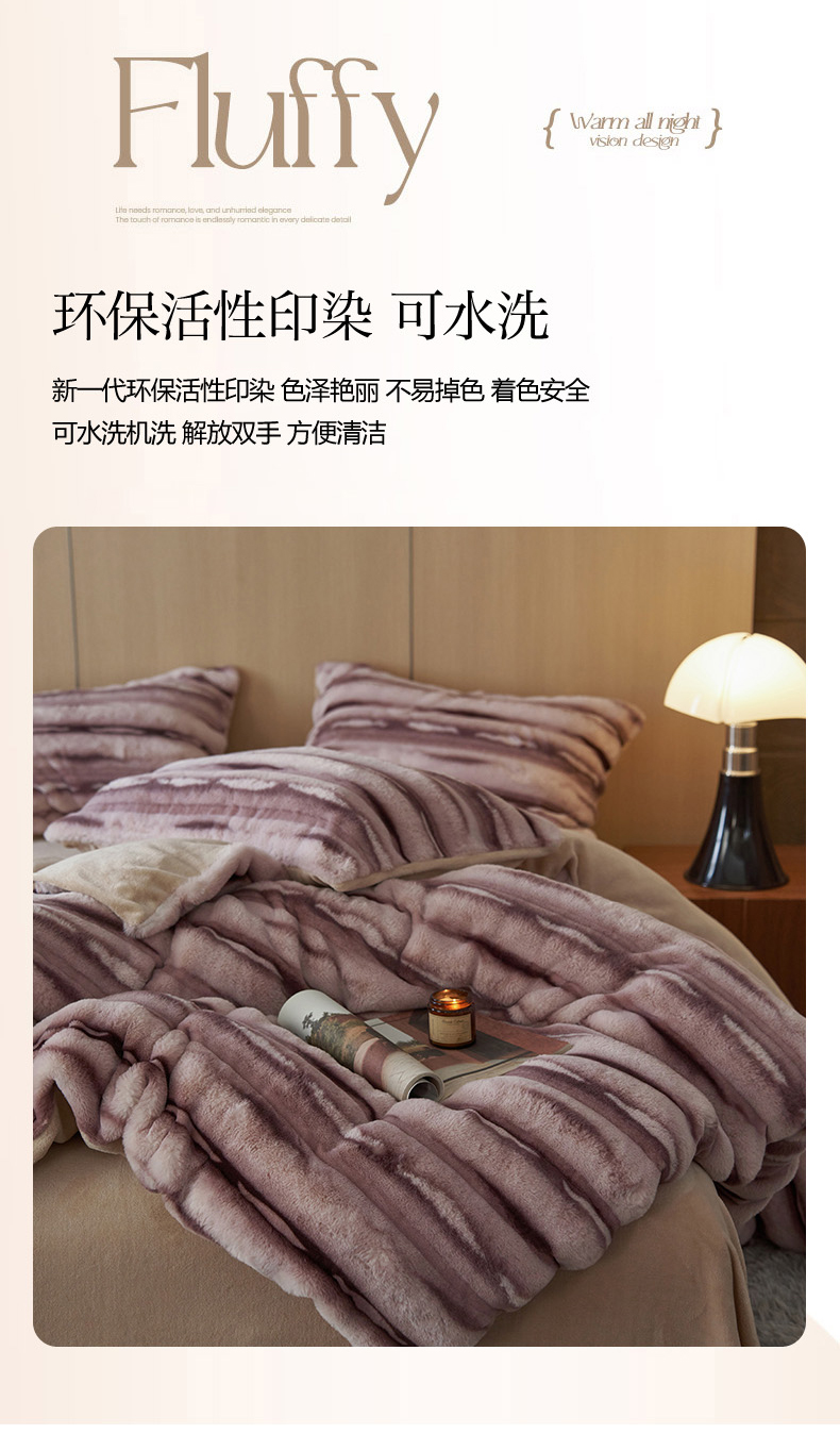 商品名称:眠博士 2025新款兔兔牛奶绒加厚保暖四件套 兔兔绒-条条紫咖