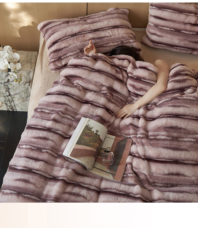 眠博士 2025新款兔兔牛奶绒加厚保暖四件套 兔兔绒-条条紫咖