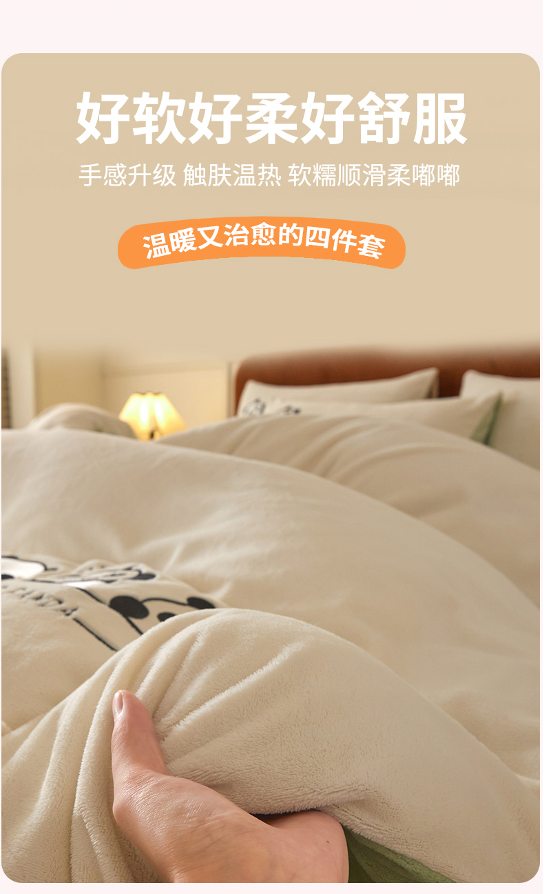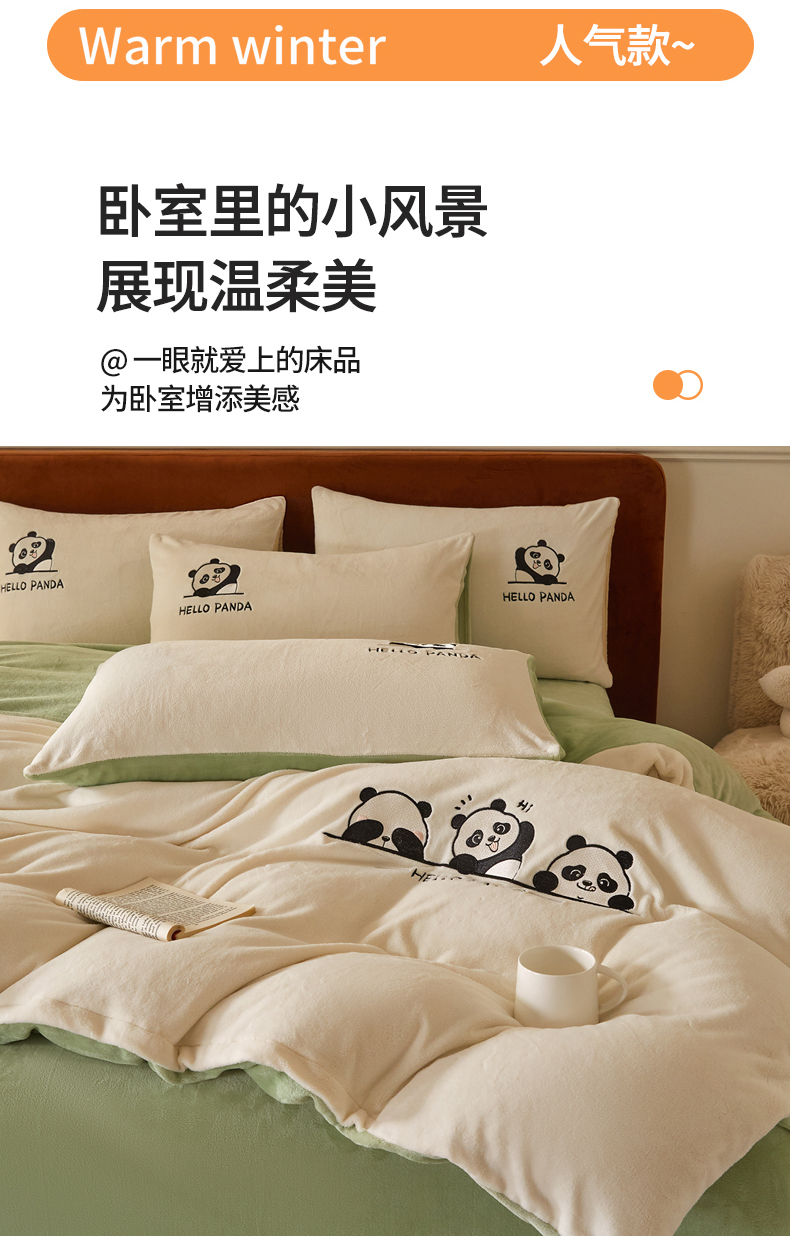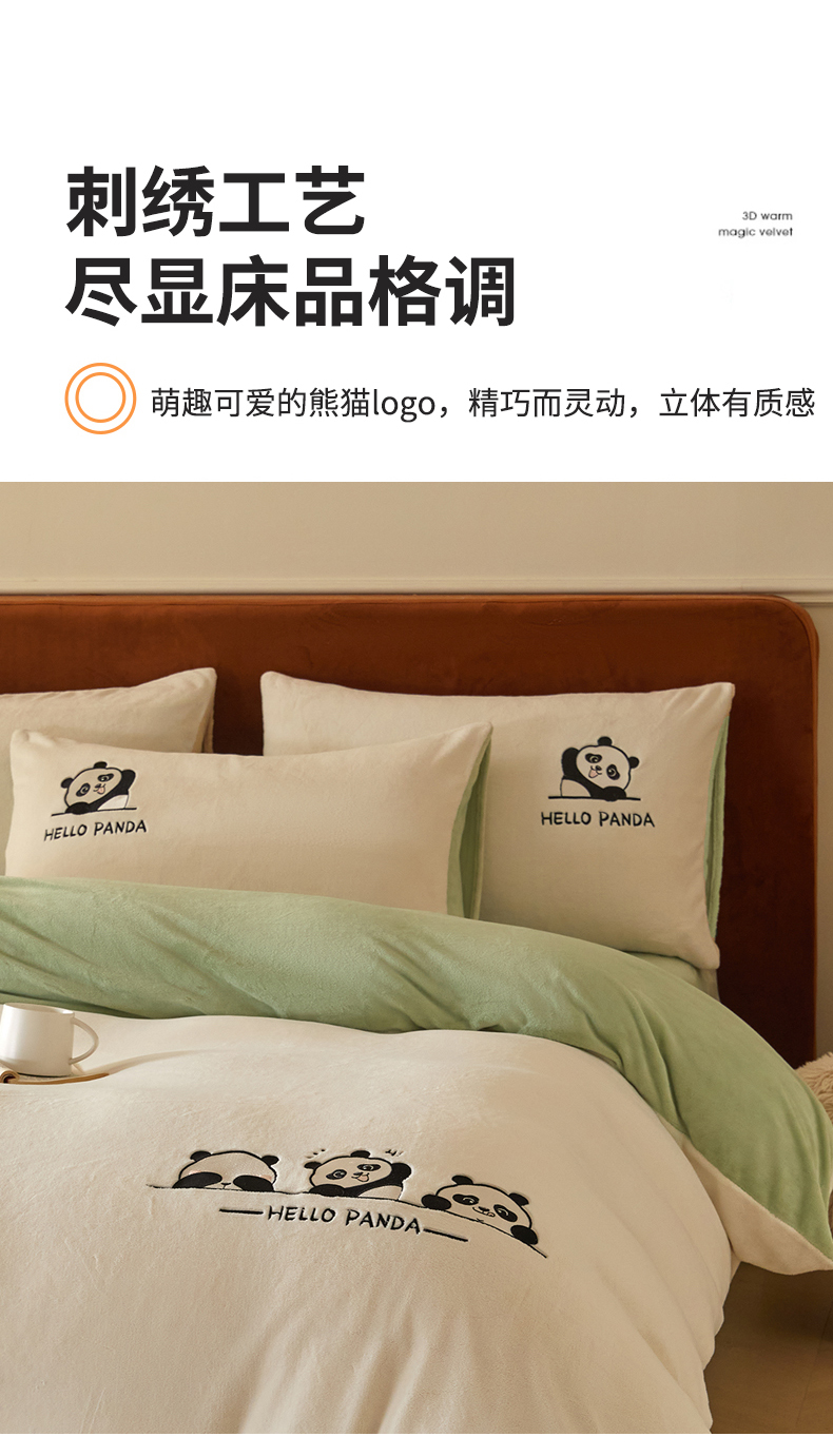 当前位置: 91家纺网 > 商品网购 > 床品套件 > 四件套 > 牛奶绒四件套 > ONE TWO ONE 121 2025新款牛奶绒刺绣珊瑚绒牛奶绒法兰绒兔毛绒四件套panda刺绣熊猫-场景二 panda刺绣熊猫-浅绿