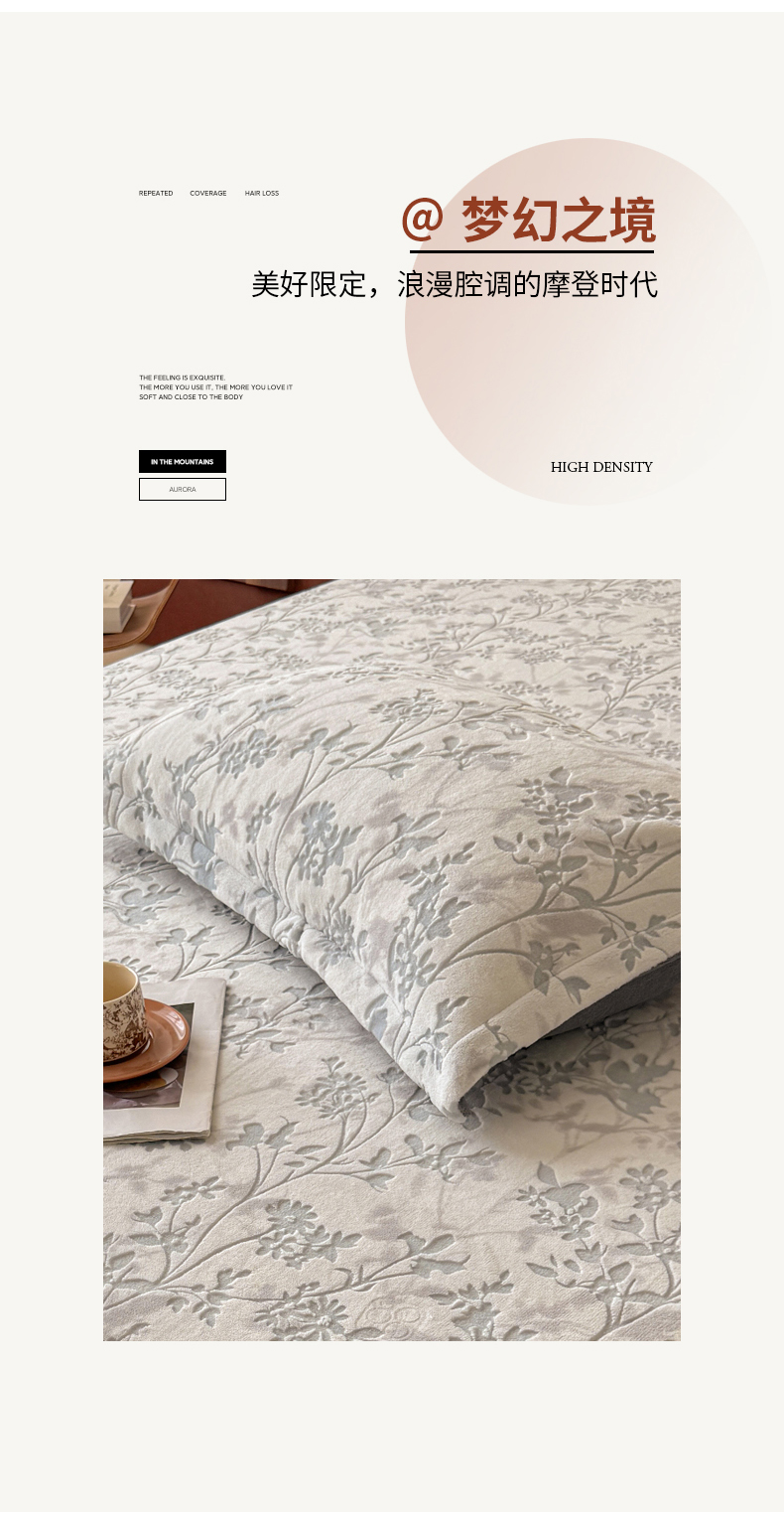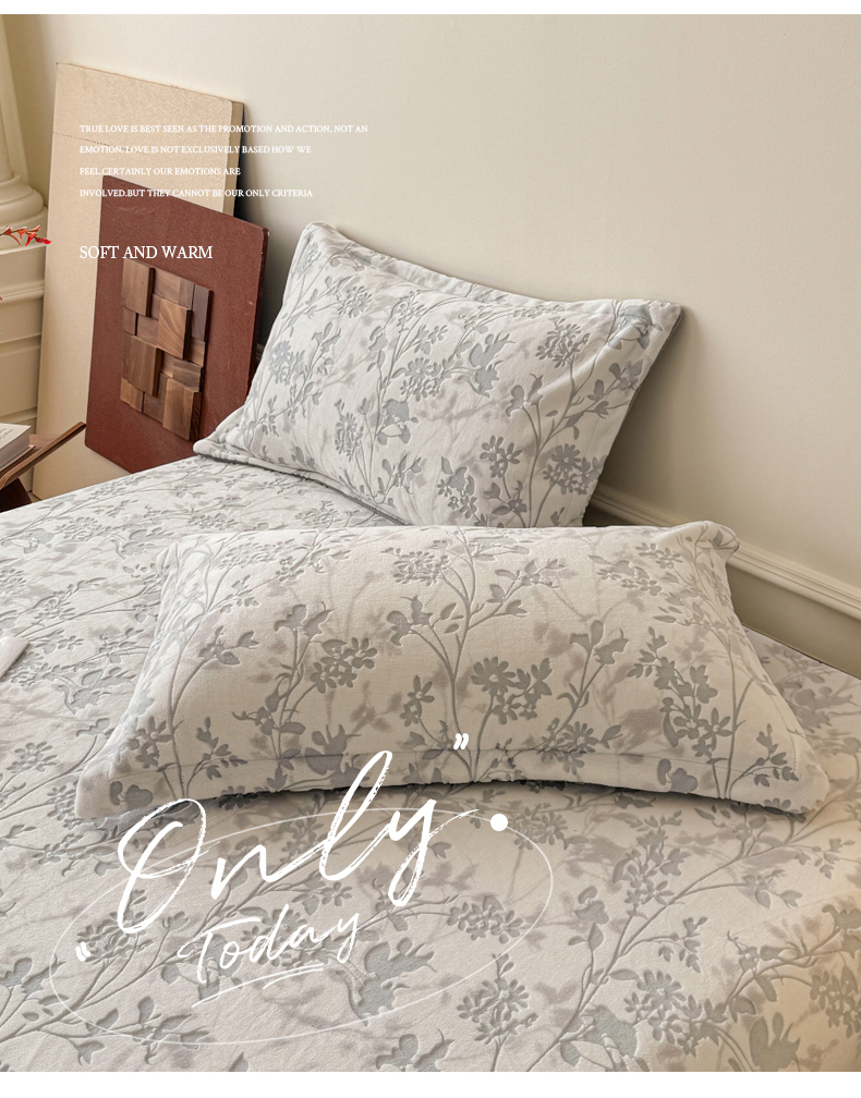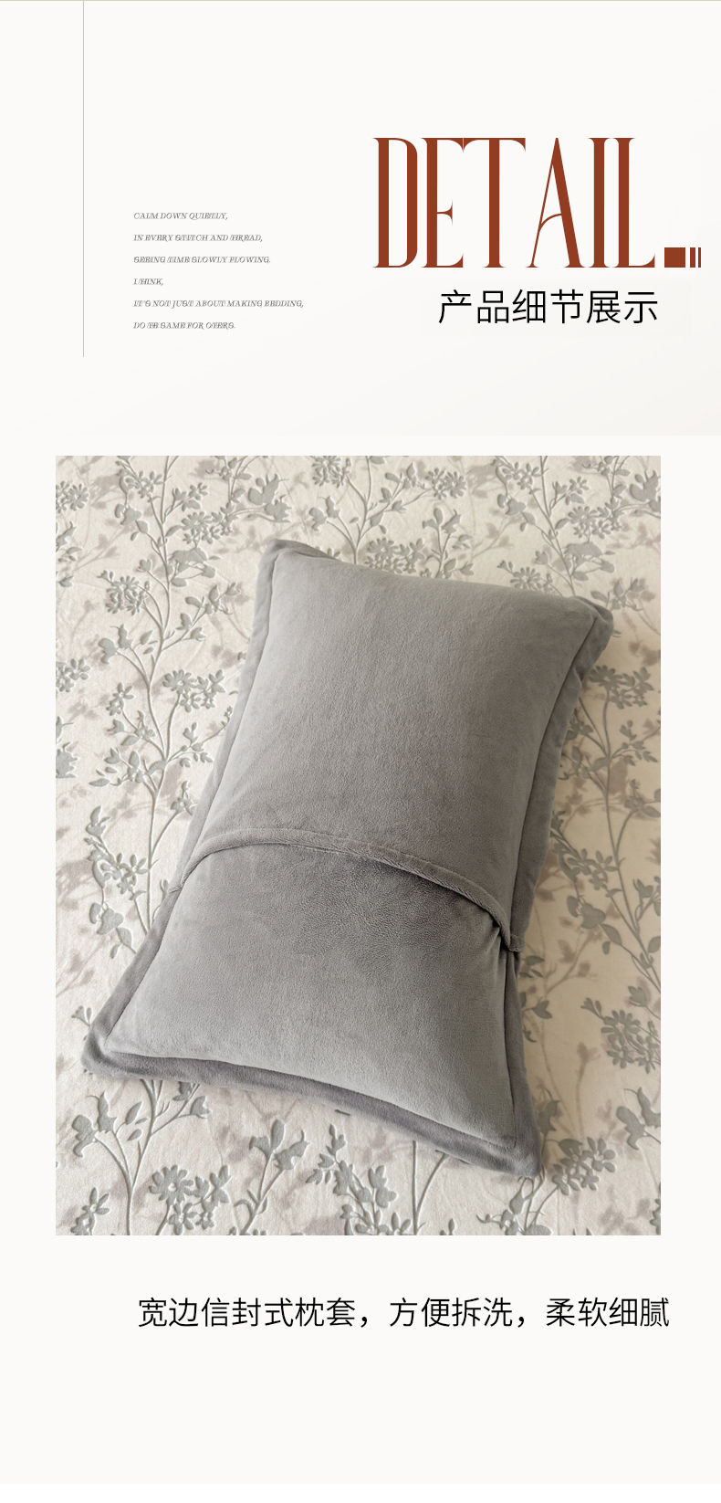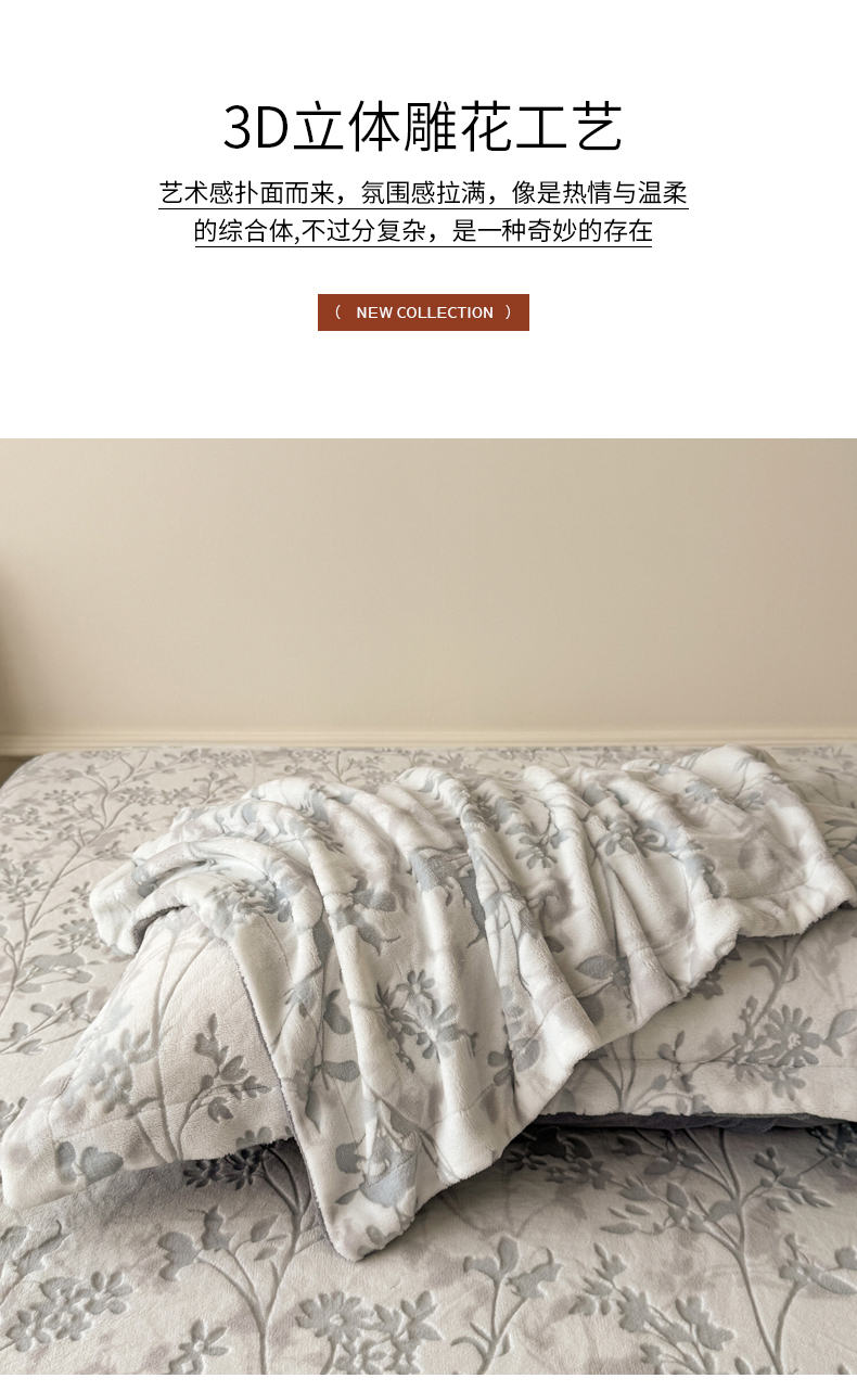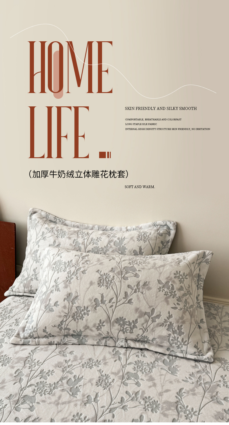 商品名称:LIFE.丽芙 2025秋冬新款A类牛奶绒加厚立体雕花压线宽边枕套 花朝梦-灰