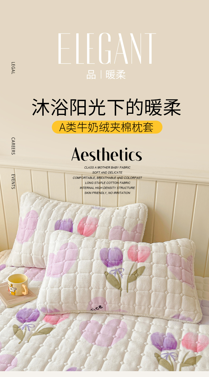 商品名称:LIFE.丽芙 2025秋冬新款A类牛奶绒加厚保暖夹棉枕套-包边款 花语