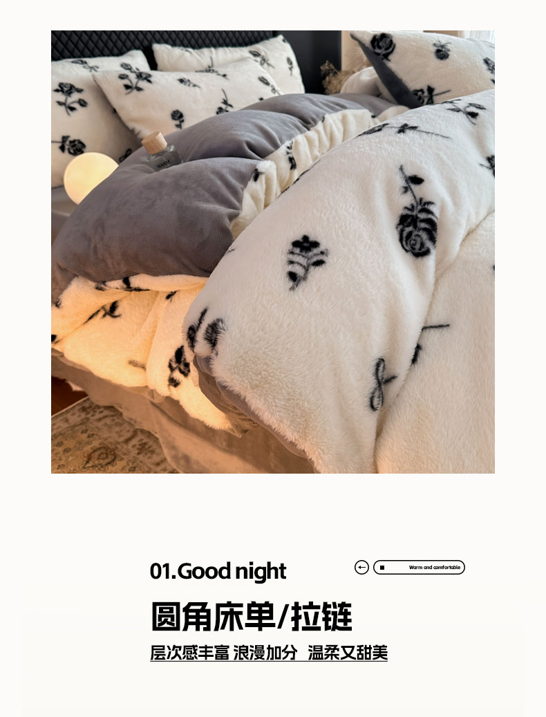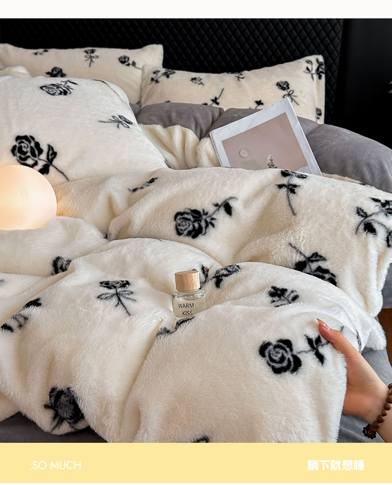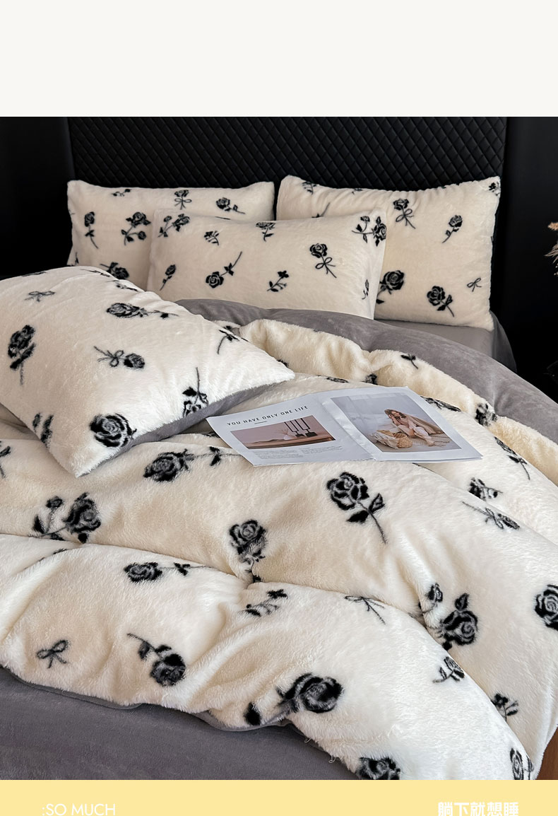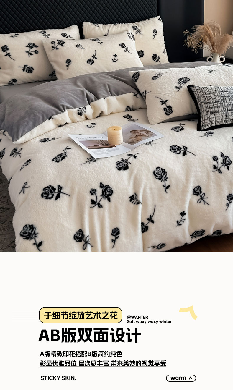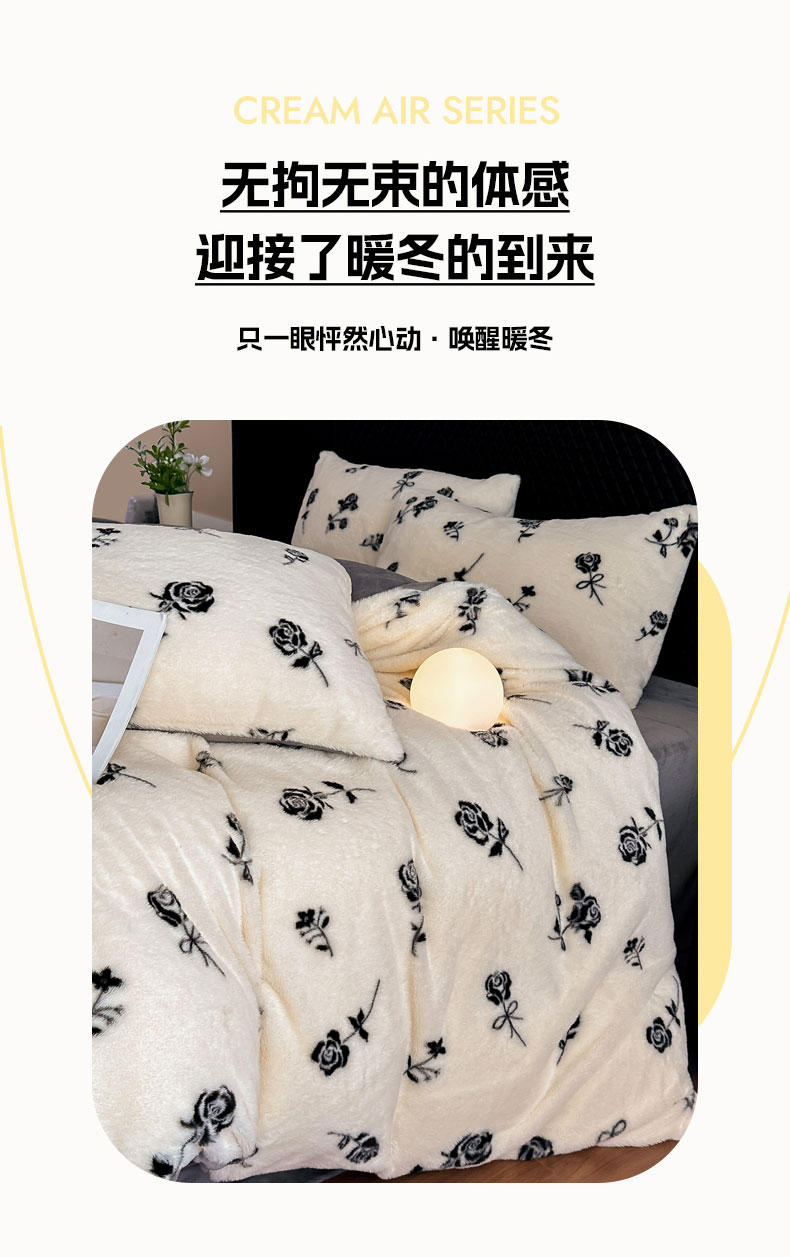 当前位置: 91家纺网 > 商品网购 > 床品套件 > 四件套 > 其它四件套 > 璐维斯 2025 A类舒适兔毛绒印花四件套卡通花卉牛奶绒秋冬保暖床上用品单被套三件套 玫瑰白