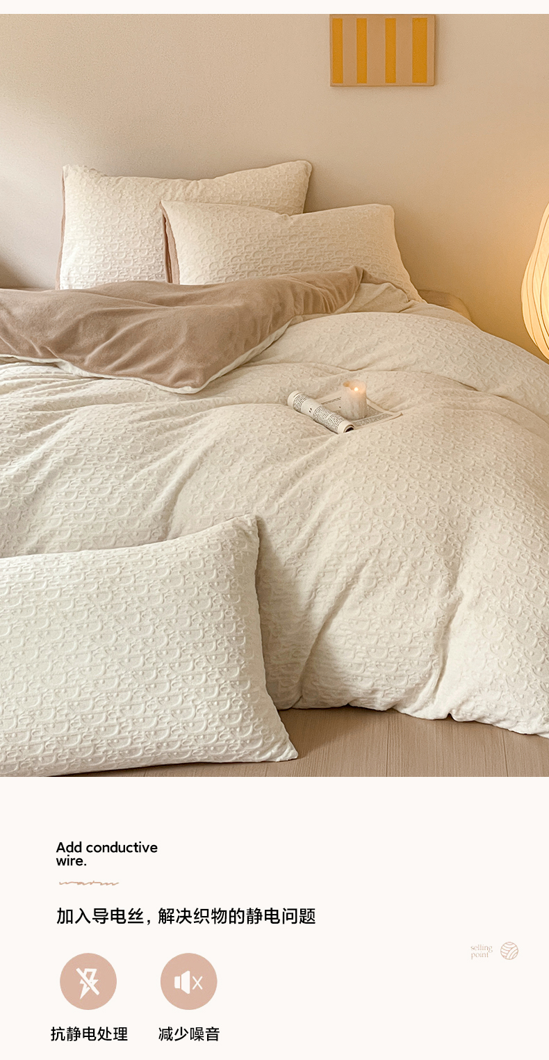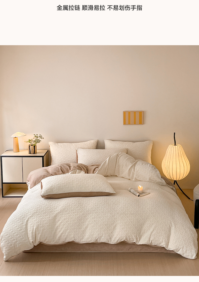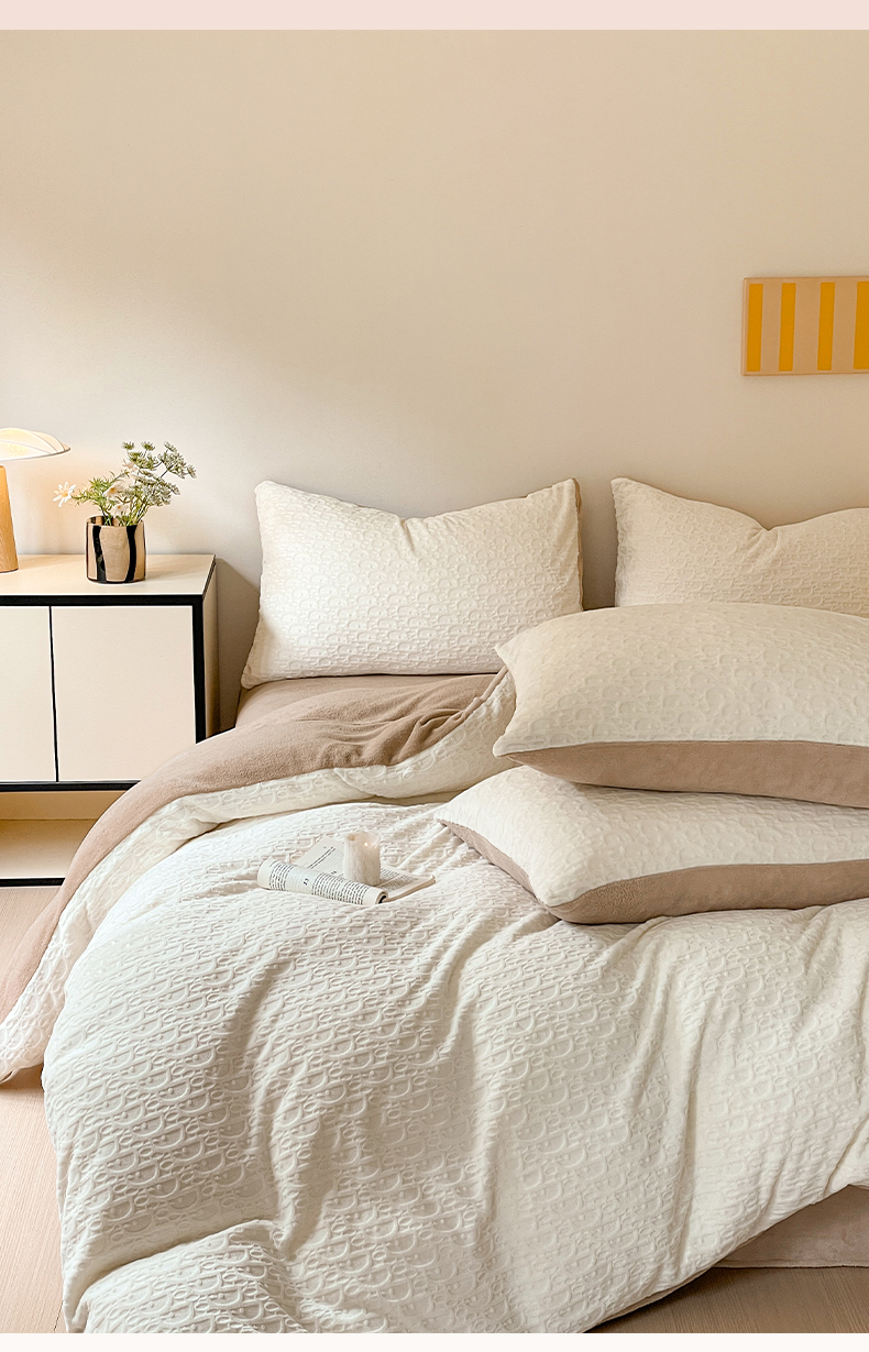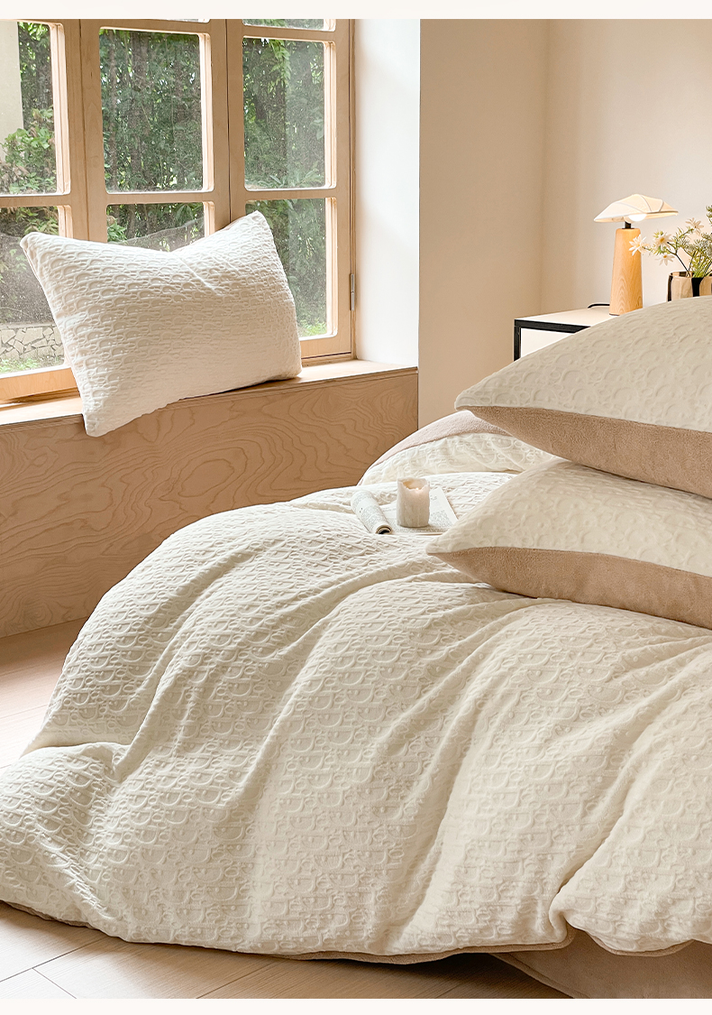 当前位置: 91家纺网 > 商品网购 > 床品套件 > 四件套 > 牛奶绒四件套 > 雅居纺家纺 2025新款雕花绒四件套-简约系列 米兰-白
