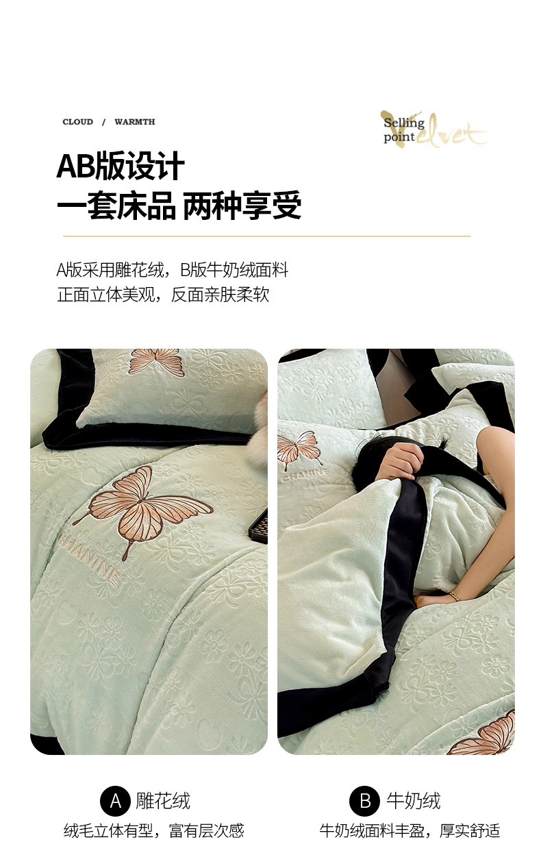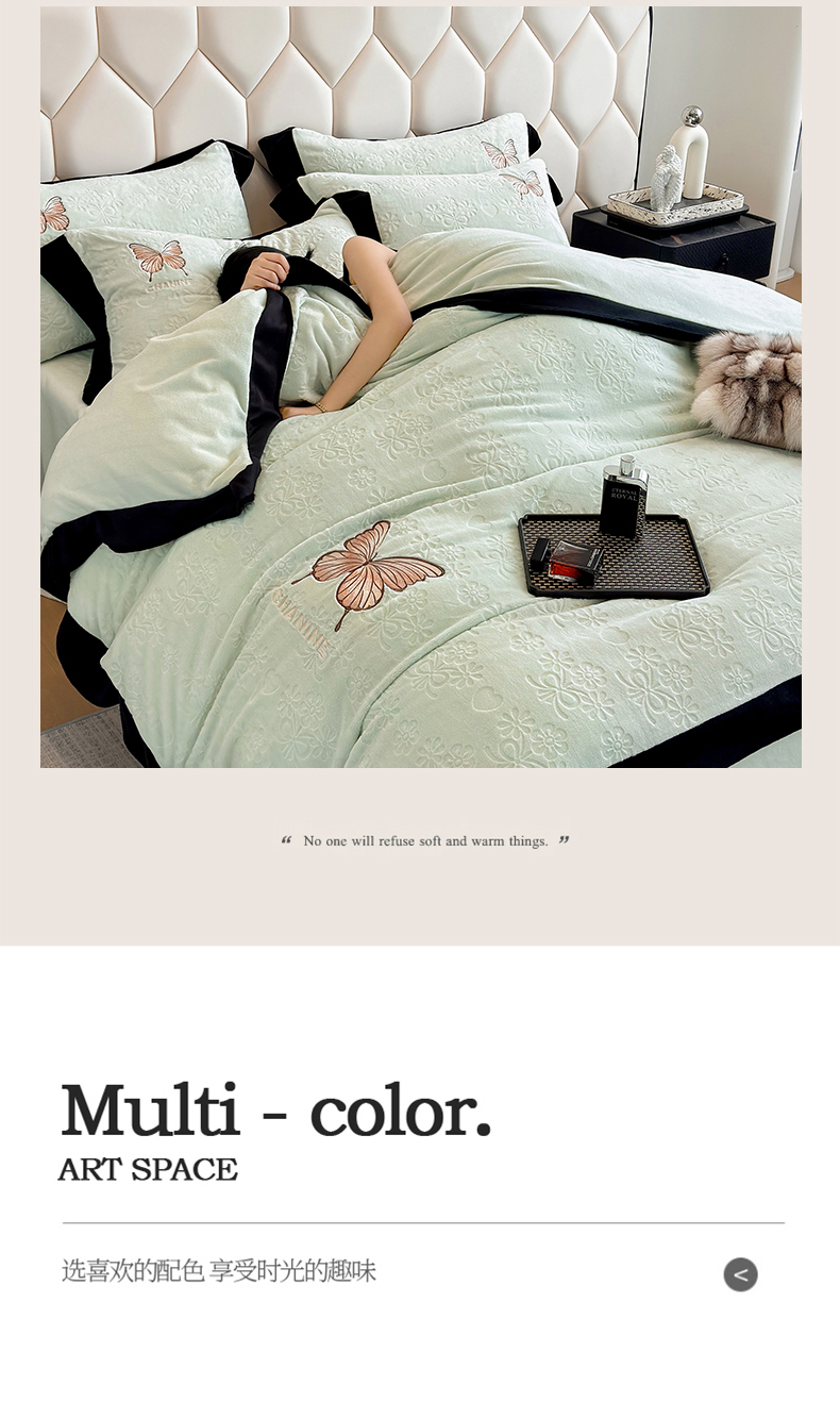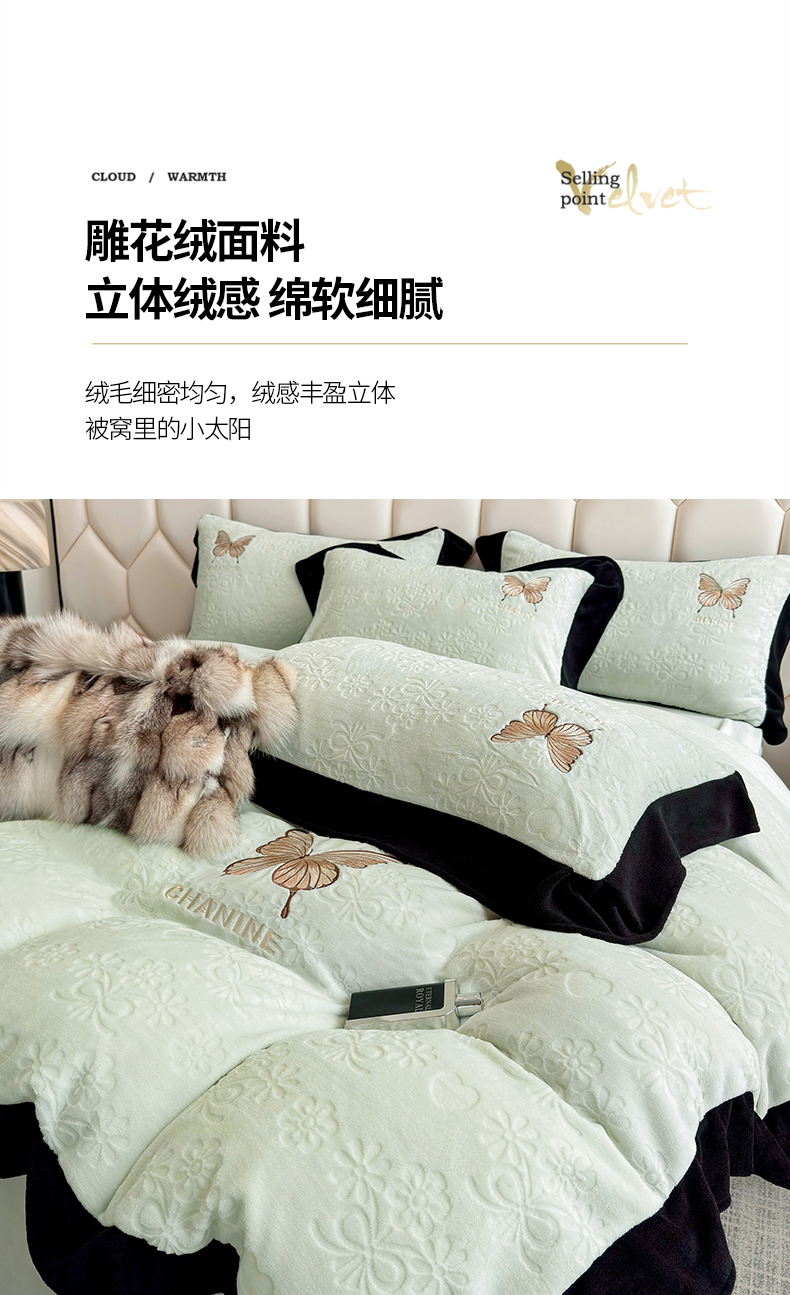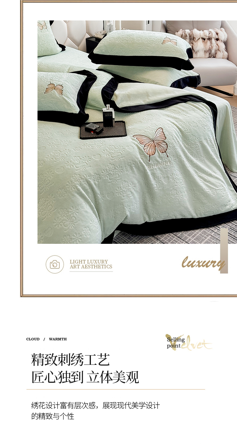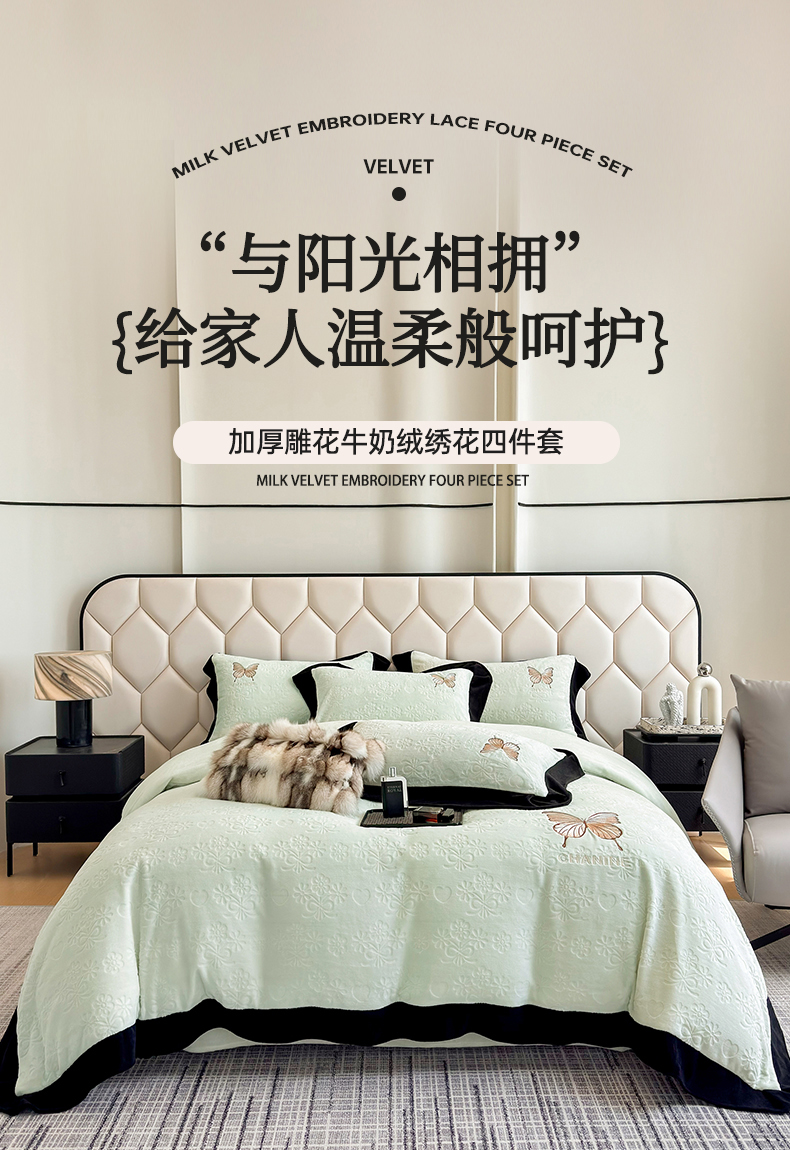 (总)苏美 2025新款烂花雕花绒牛奶绒绣花四件套,蝴蝶-粉,蝴蝶-蓝,蝴蝶-米白,蝴蝶-紫,花朵-粉玉,花朵-蓝,花朵-绿