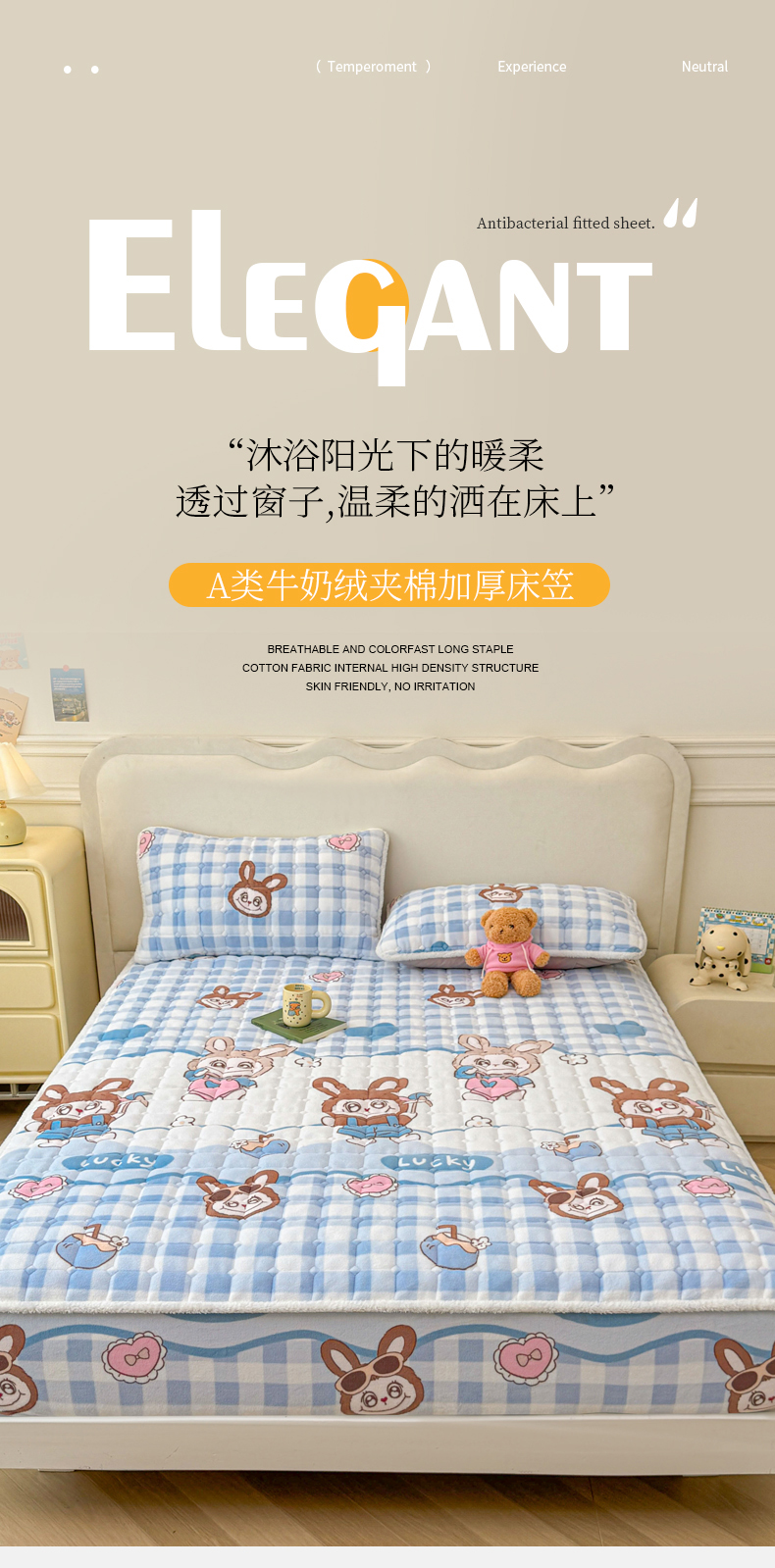• 91家纺网 家纺一手货源 找家纺 LIFE.丽芙 2025秋冬新款牛奶绒加厚夹棉单床笠印花款床垫子保护套秋冬保暖床罩子三件套 布布乐园