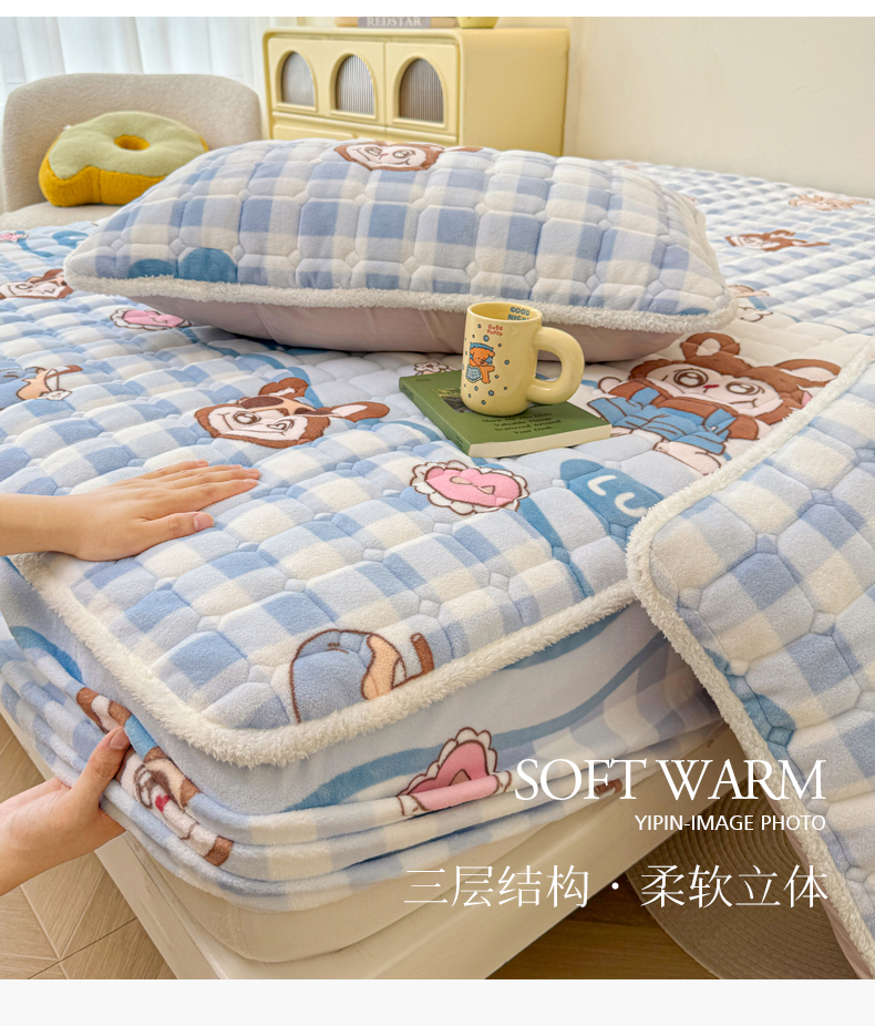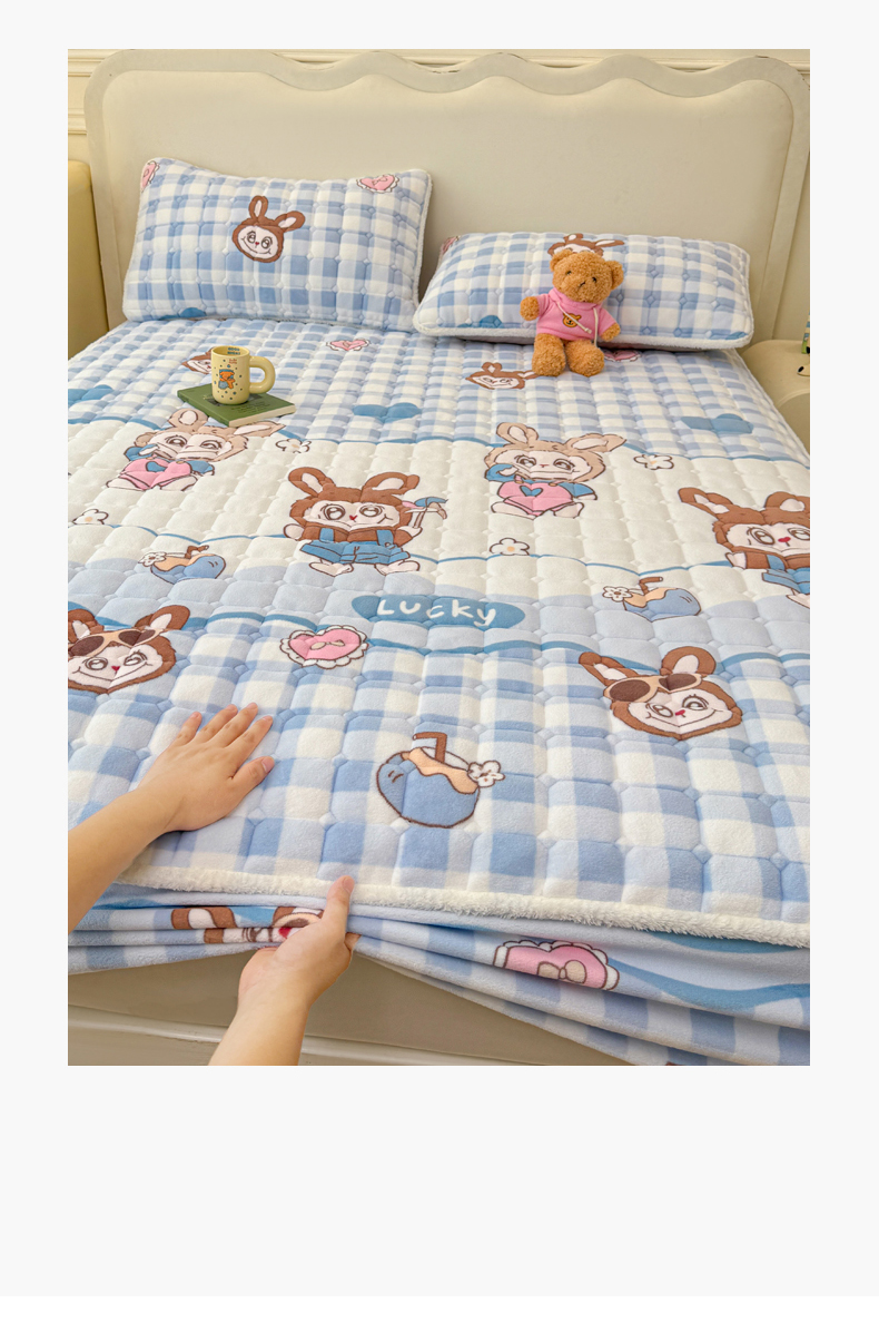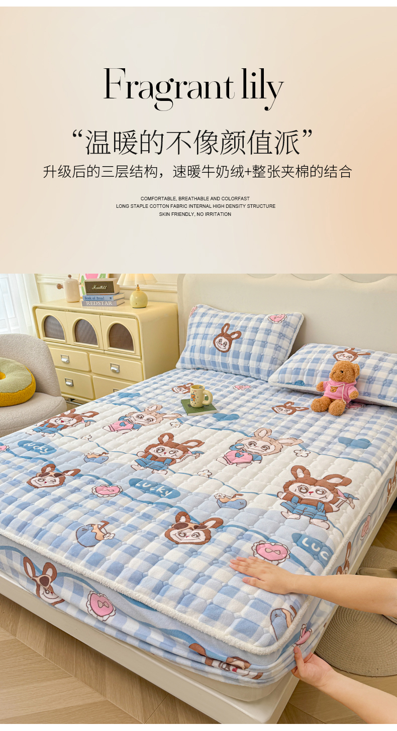 LIFE.丽芙 2025秋冬新款牛奶绒加厚夹棉单床笠印花款床垫子保护套秋冬保暖床罩子三件套 布布乐园