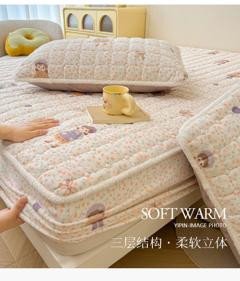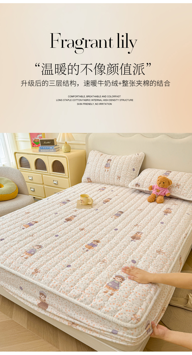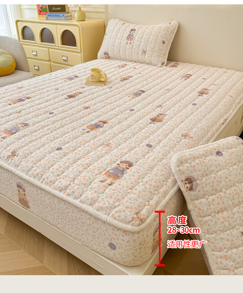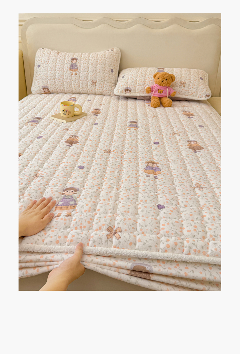 • 91家纺网 家纺一手货源 找家纺 LIFE.丽芙 2025秋冬新款牛奶绒加厚夹棉单床笠印花款床垫子保护套秋冬保暖床罩子三件套 甜美女孩