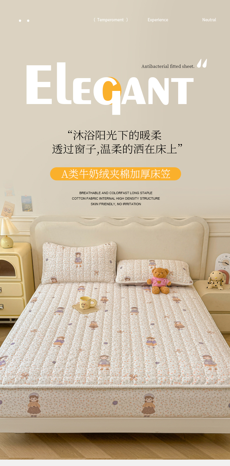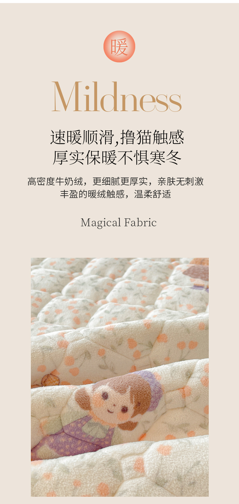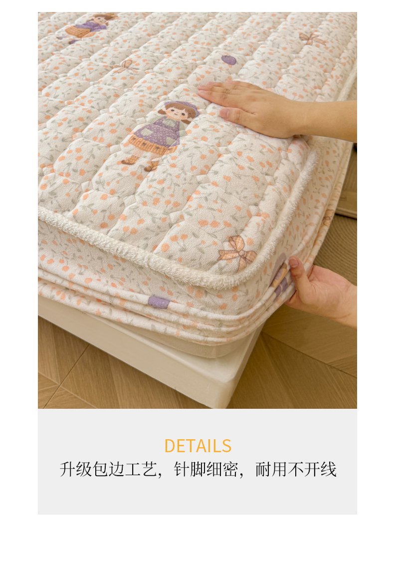 • 91家纺网 家纺一手货源 找家纺 LIFE.丽芙 2025秋冬新款牛奶绒加厚夹棉单床笠印花款床垫子保护套秋冬保暖床罩子三件套 甜美女孩