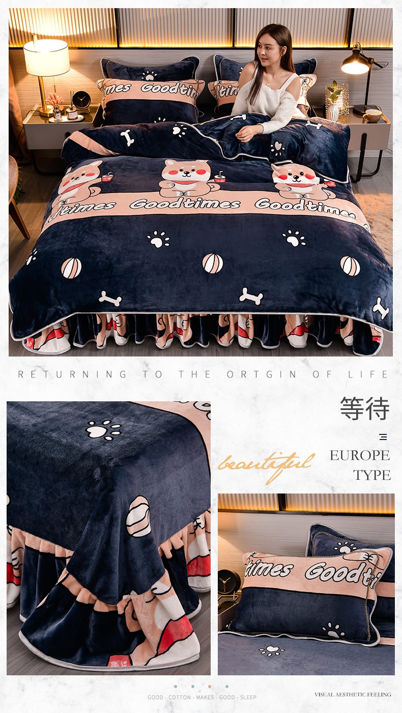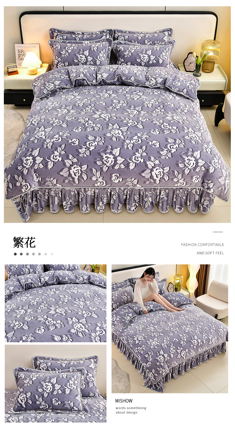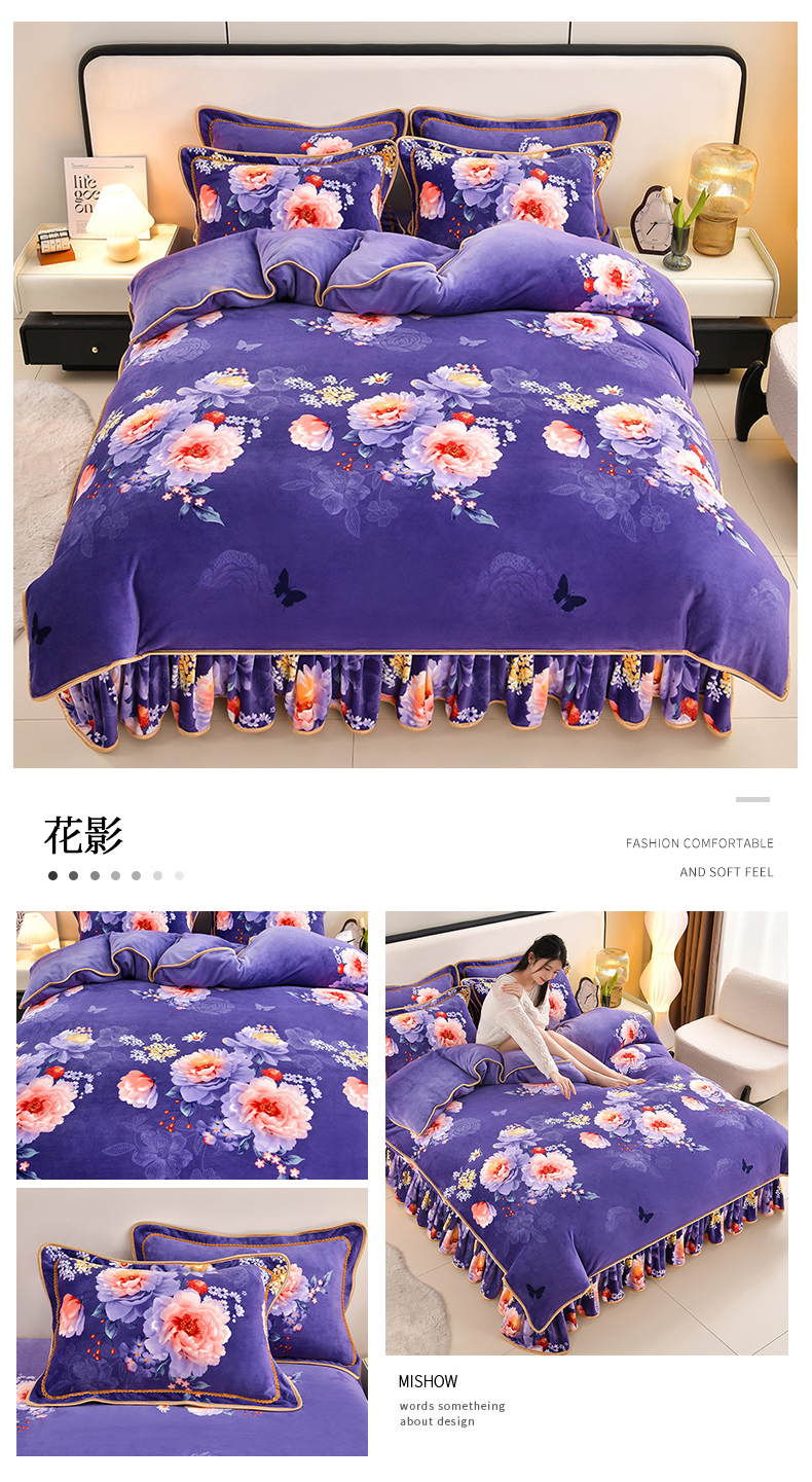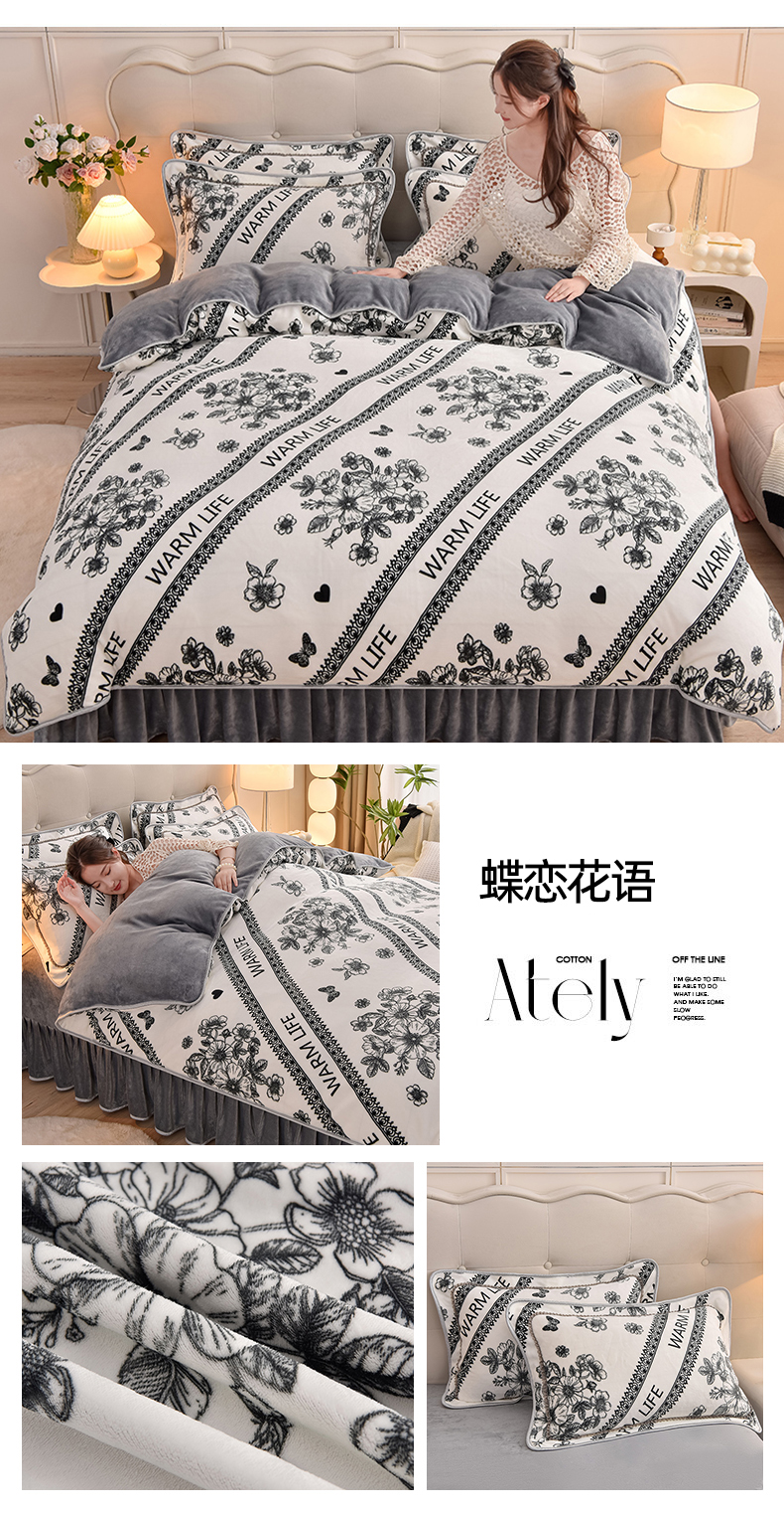 新8.5-9.5斤法莱绒四件套珊瑚牛奶金貂绒四件套床裙 春暖花开