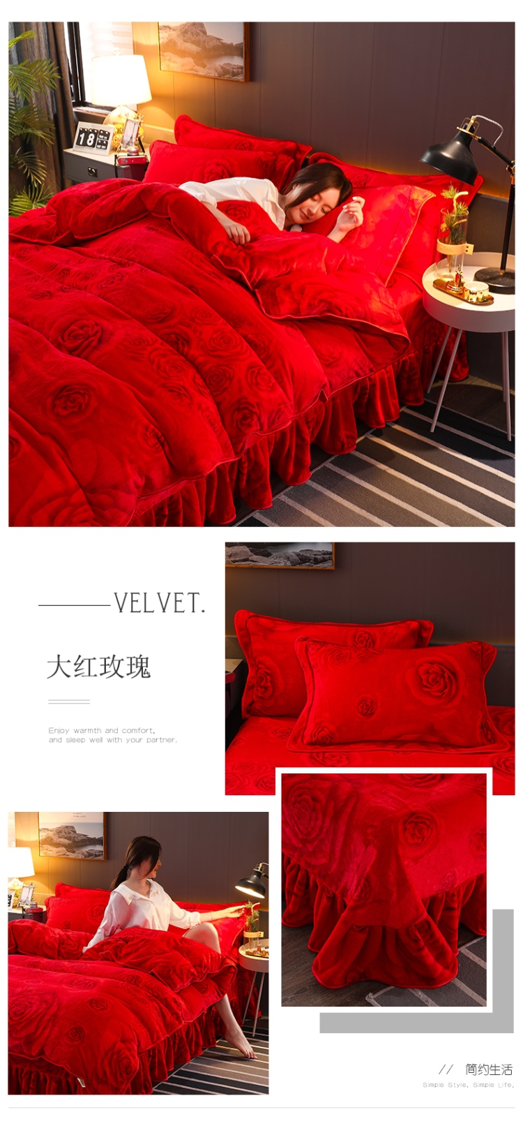 总)牵梦萦 2025欧式烂花6D纯色牛奶法莱绒提花床裙四件套,宫廷风-香郁粉,宫廷风-流沙驼,宫廷风-紫罗兰,轻奢风-焦糖咖,千鸟格-星光灰,轻奢风-宝石红,轻奢风-丹霞橙