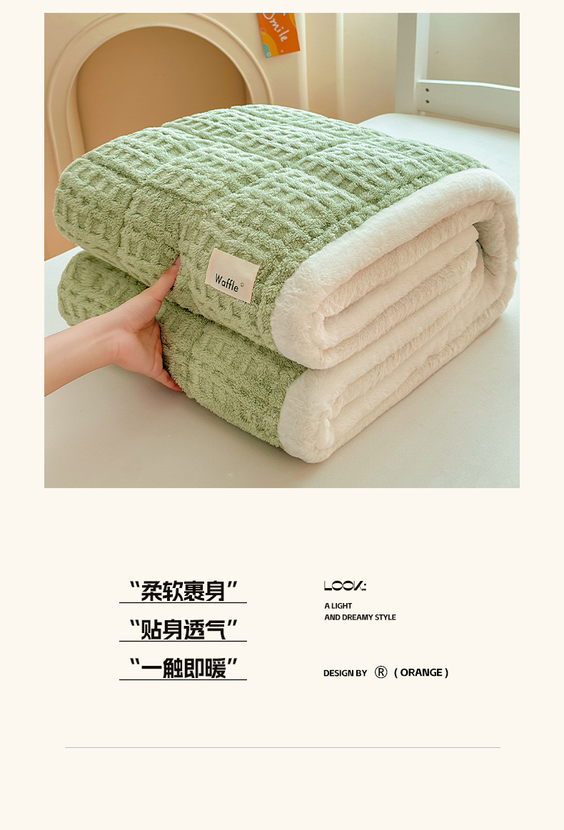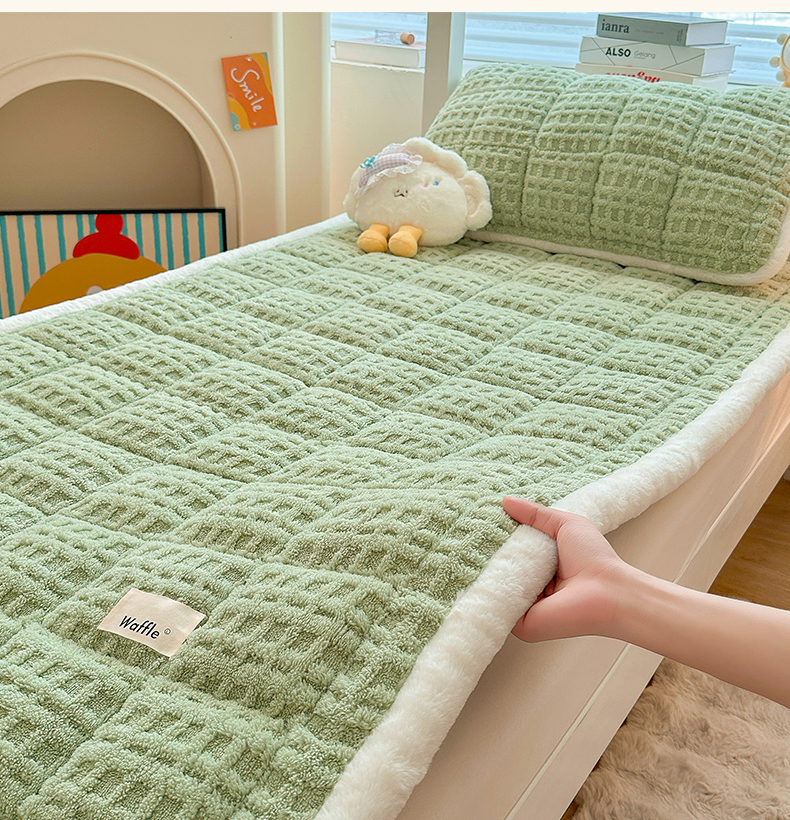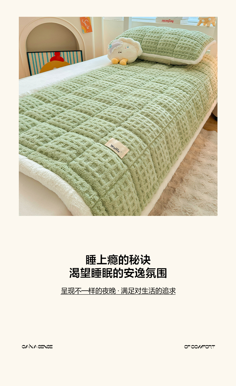 (总)喜居 2025新款舒棉绒华夫格床褥垫,雾蓝,茉绿,雅灰,-柔粉,奶咖,暖灰