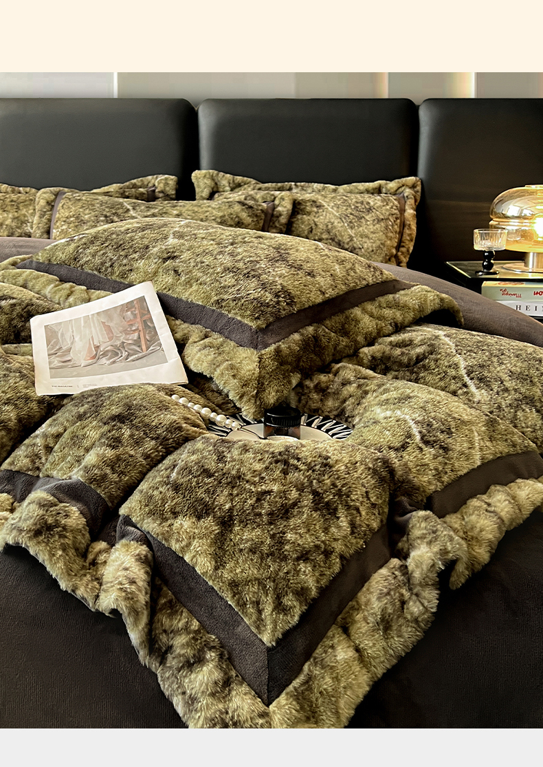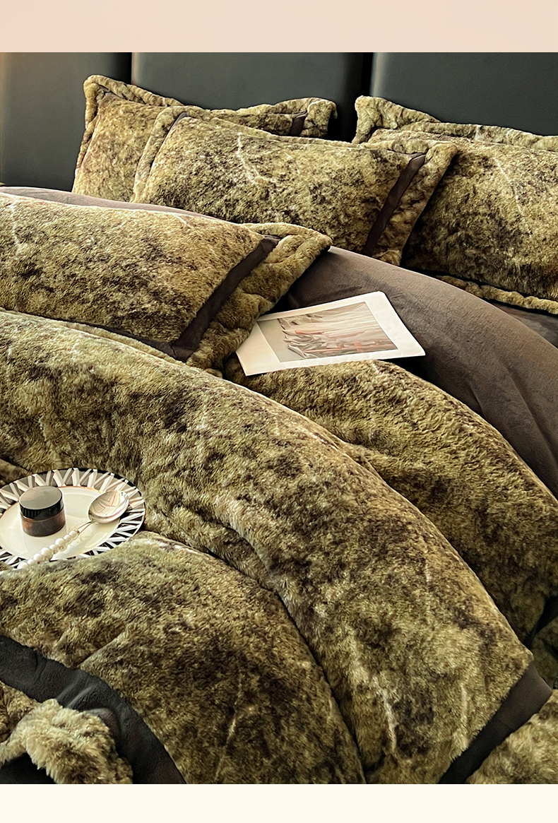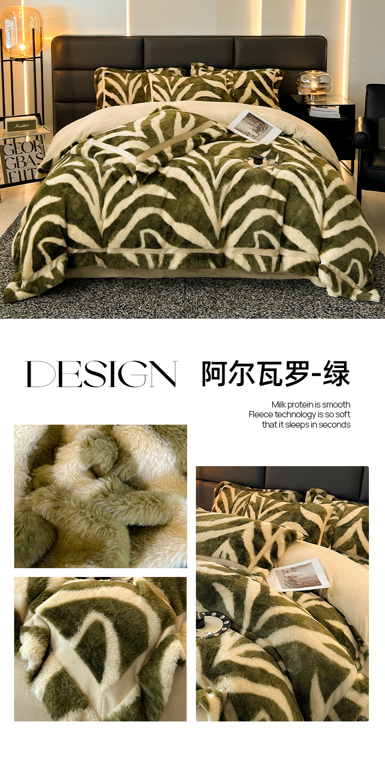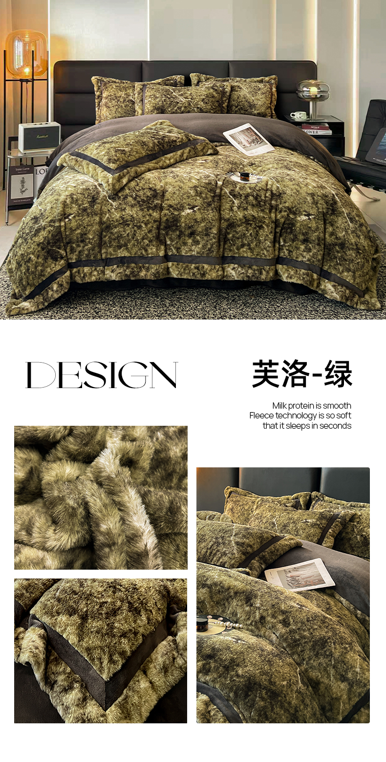 商品名称:极简 2025新款兔毛绒牛奶绒宽边四件套 芙洛-绿
