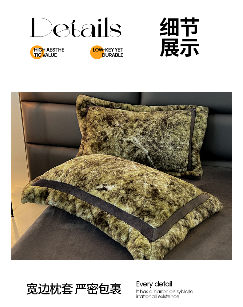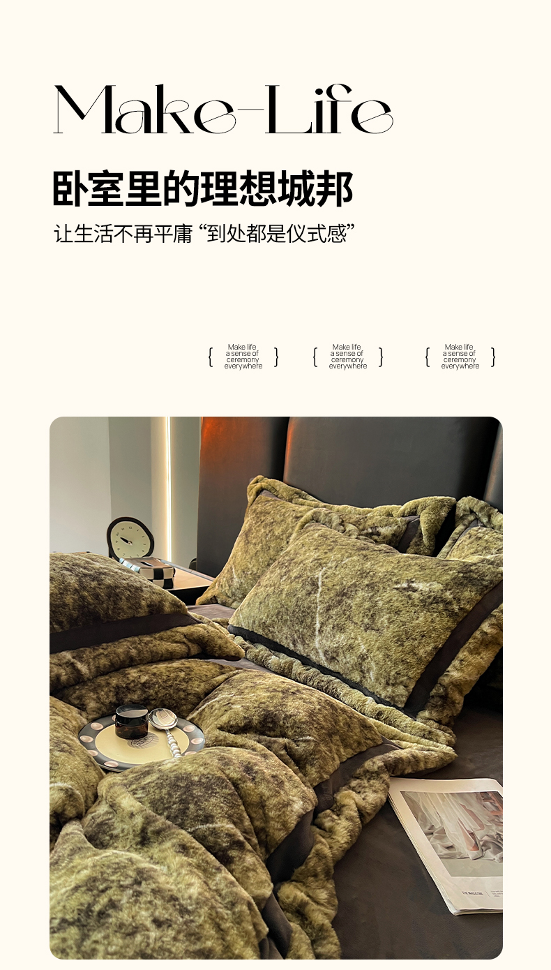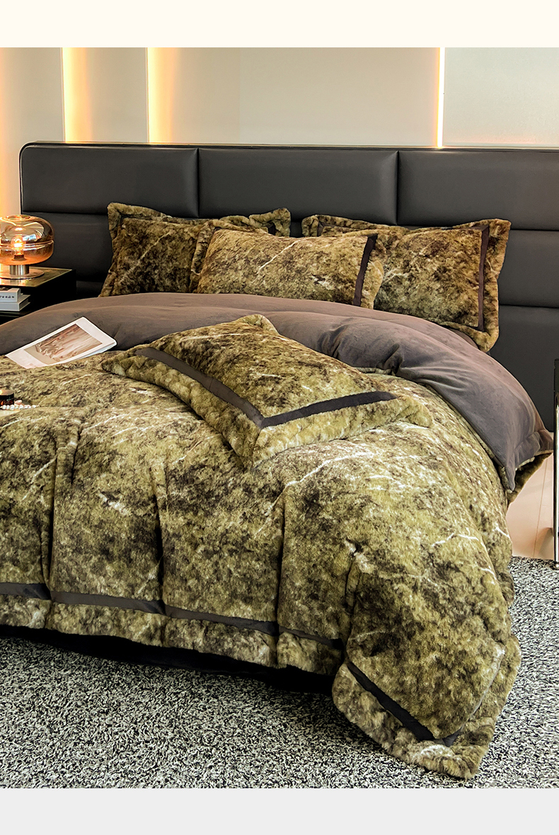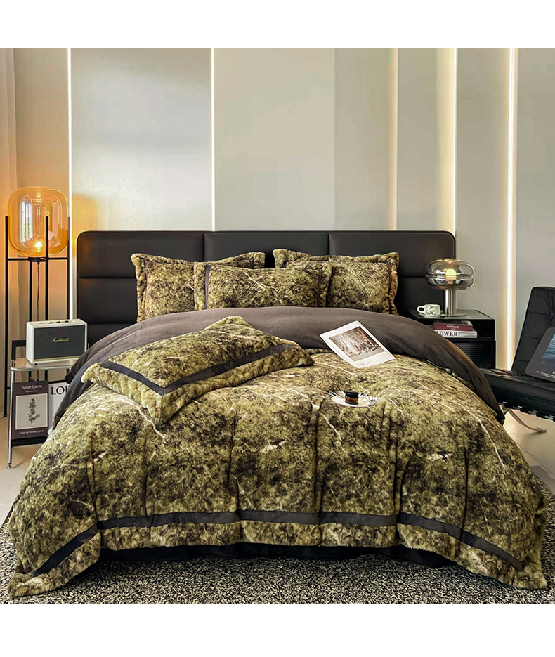 商品名称:极简 2025新款兔毛绒牛奶绒宽边四件套 芙洛-绿