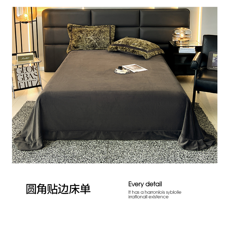极简 2025新款兔毛绒牛奶绒宽边四件套 芙洛-绿