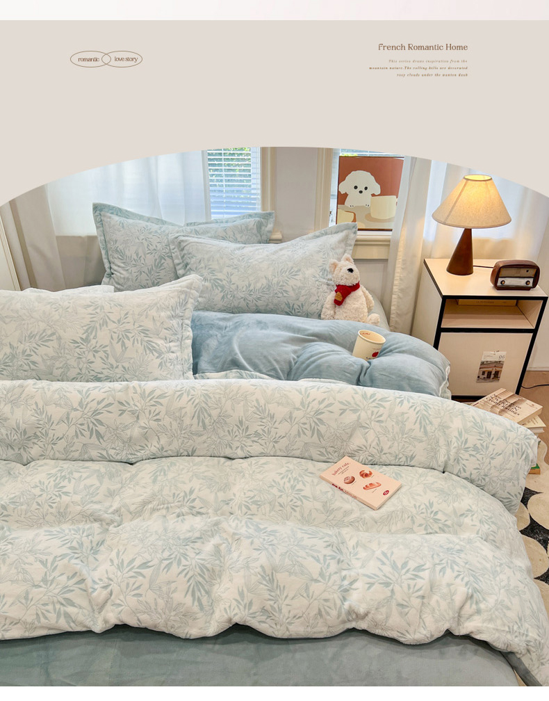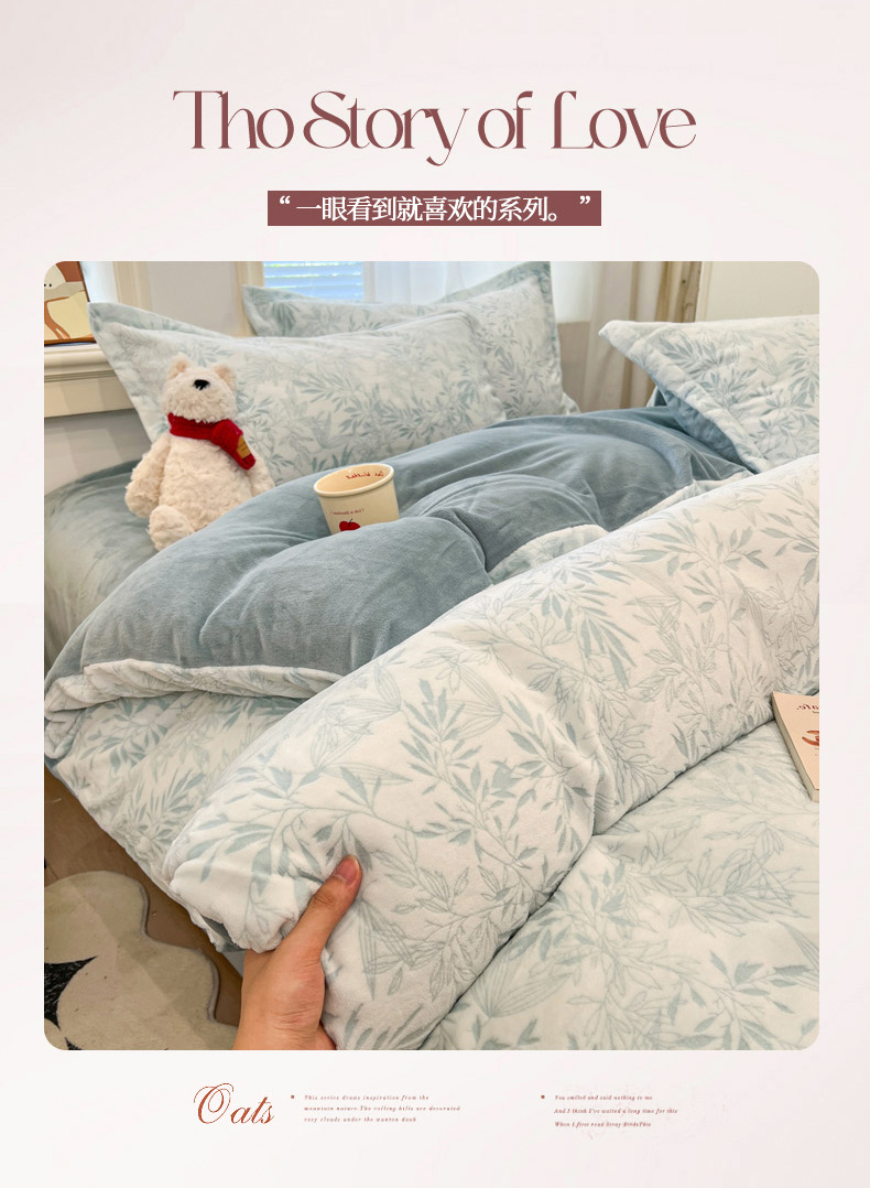 (总)慕尚家纺 2025新款磨毛提花双层纱四件套,慕叶粉,慕叶灰,清雅灰,清雅咖,清雅绿,森木粉,森木灰,森木绿,叶韵灰,叶韵咖,叶韵绿