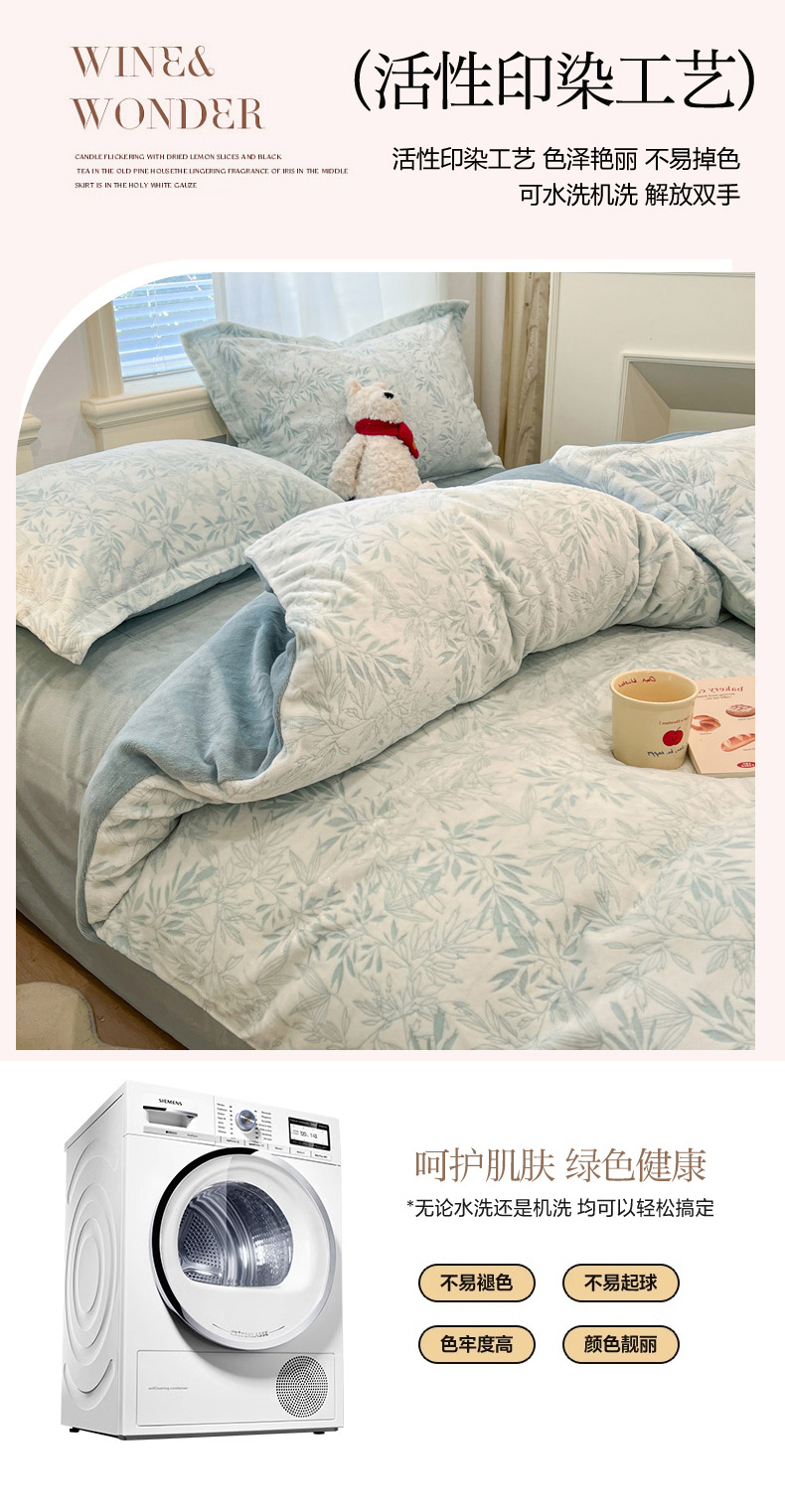 (总)慕尚家纺 2025新款豆豆绒刺绣四件套,大耳狗 白蓝,玫瑰 白粉