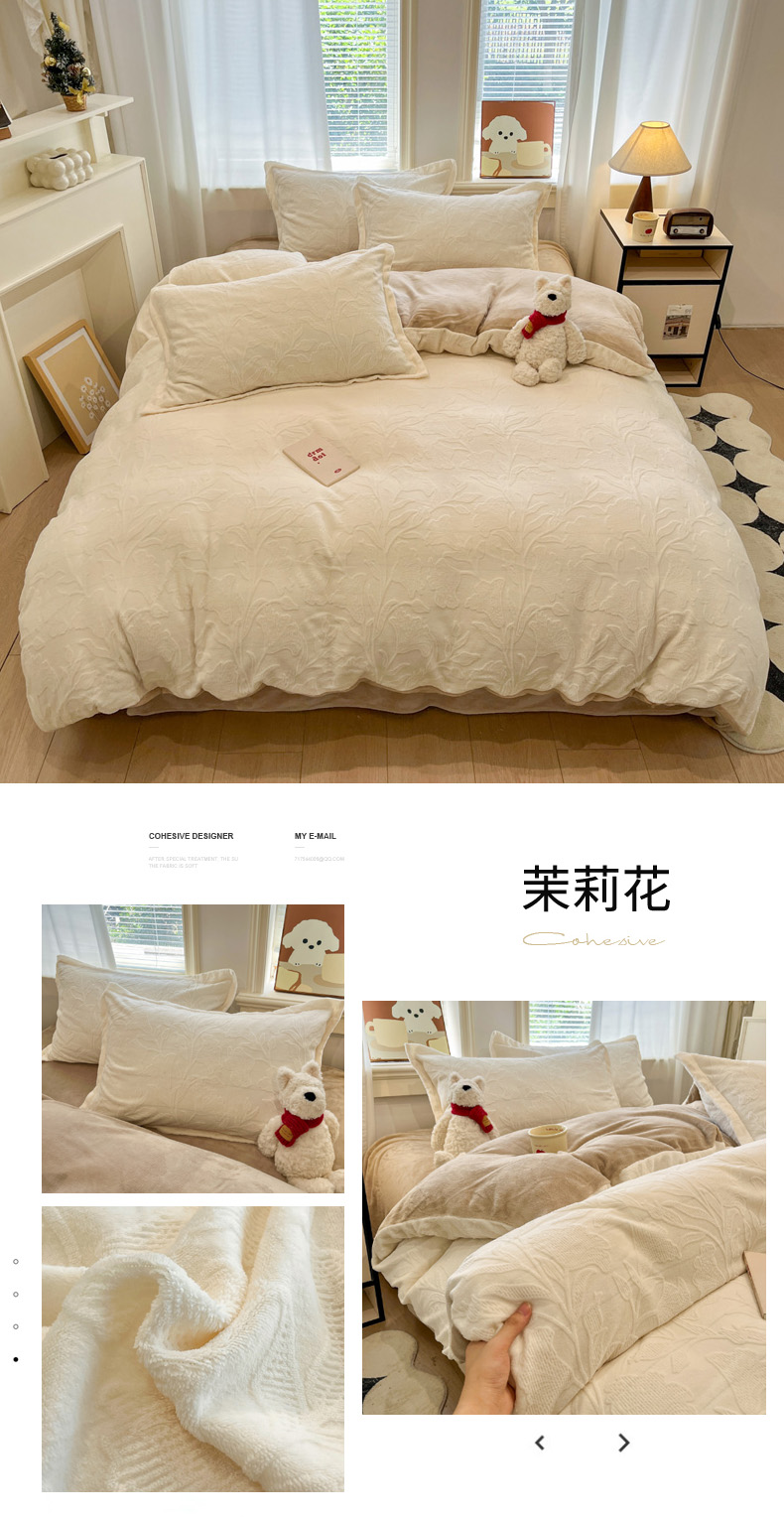 商品名称:(总)慕尚家纺 2025新款双色立体雕花牛奶绒四件套