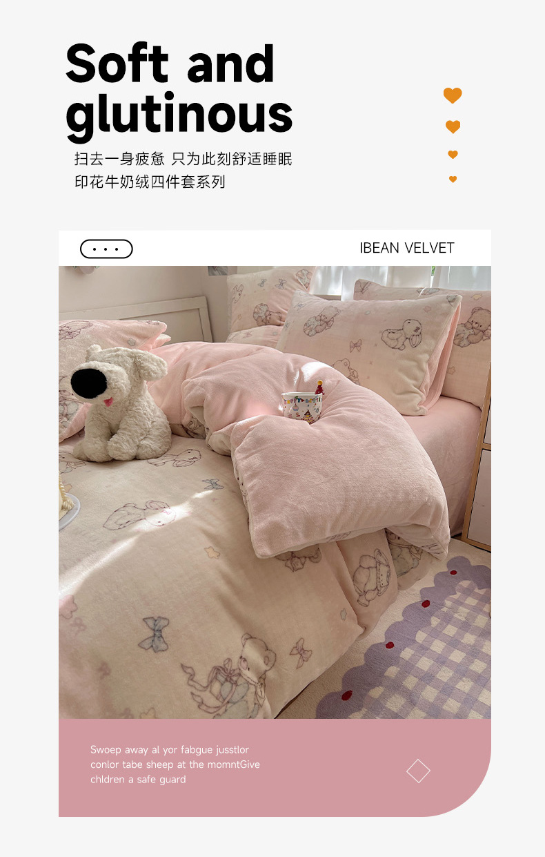 (总)红嘴企鹅 2025新款精致贴布绣牛奶绒四件套,棒棒糖-粉,Bunny兔-粉,Bunny兔-蓝,Bunny兔-紫,Cute狗-粉,Cute狗-蓝,Cute狗-紫