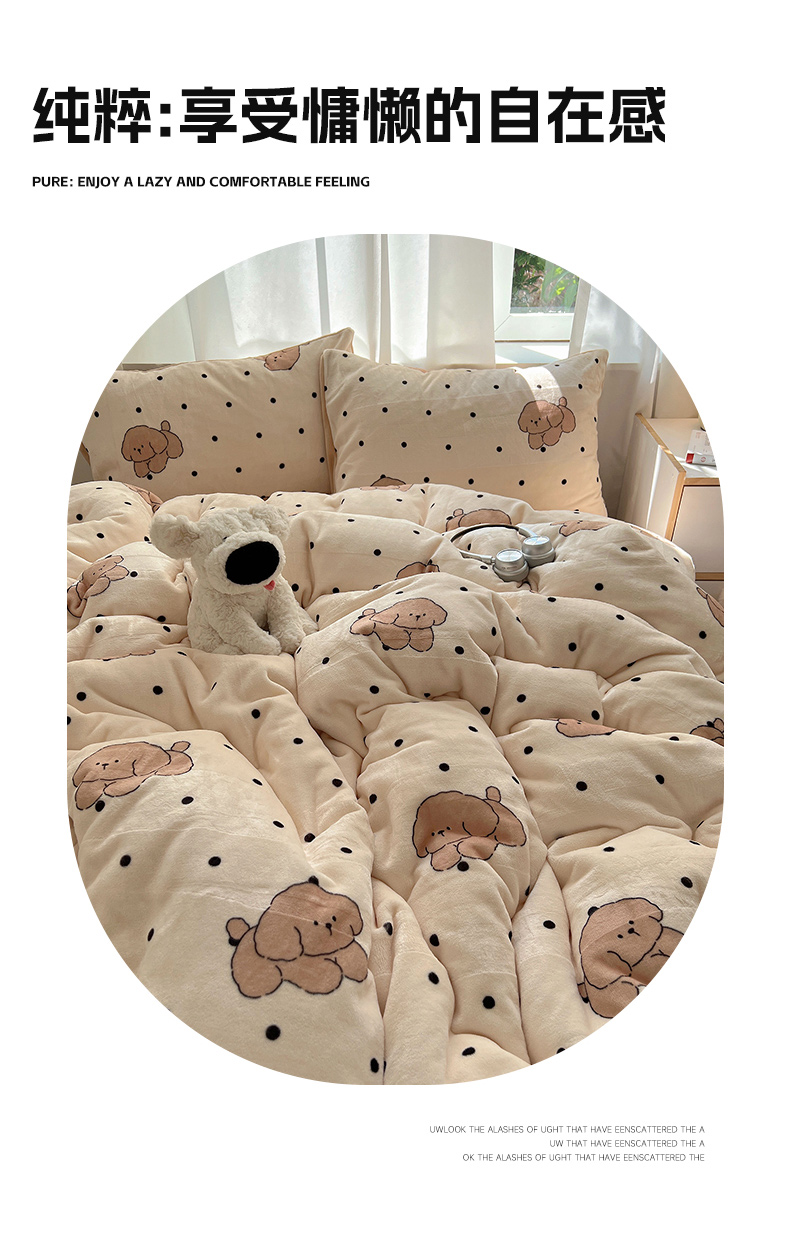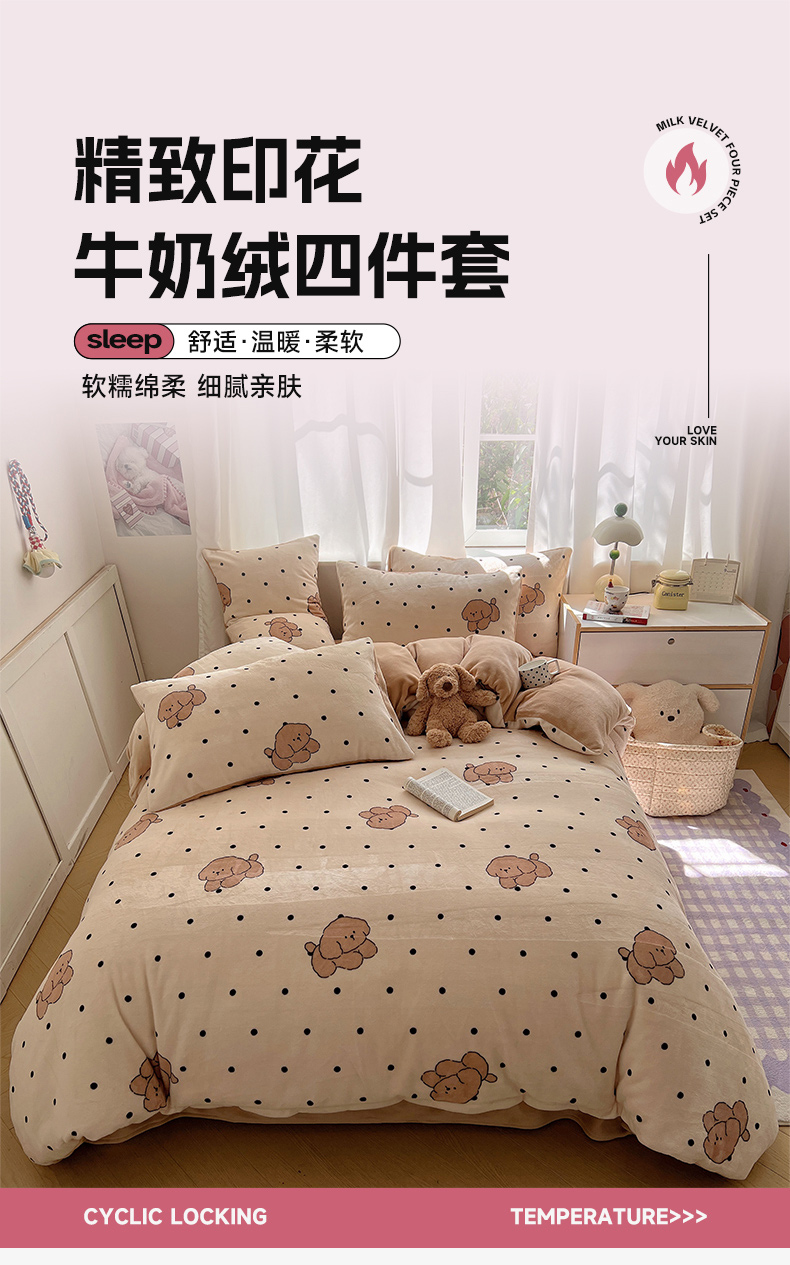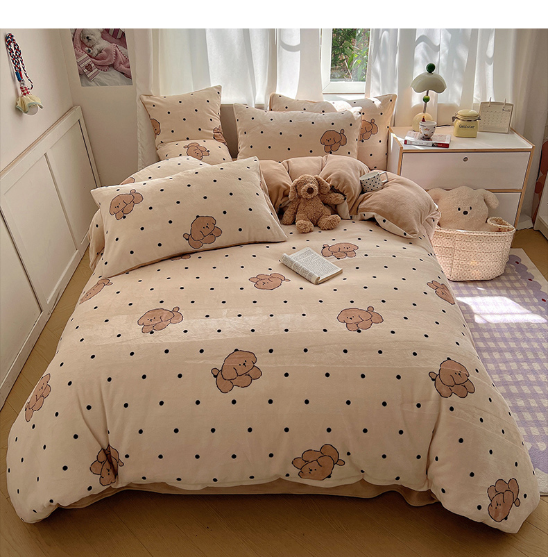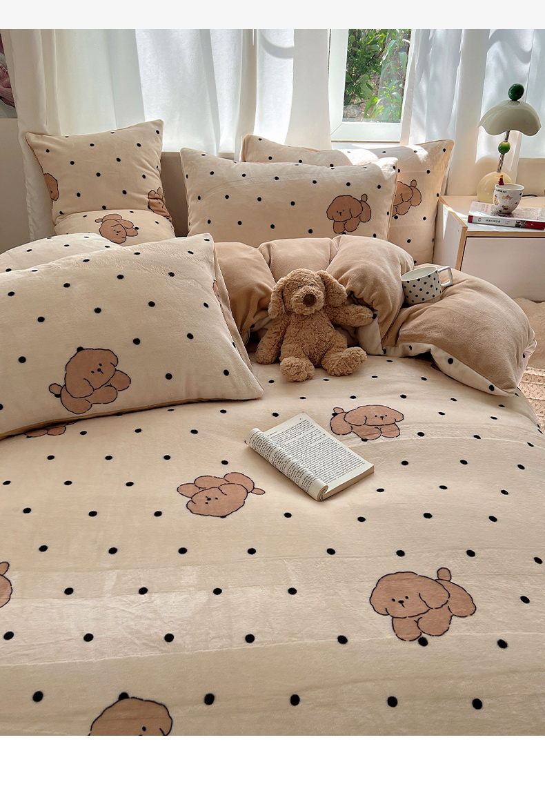 当前位置: 91家纺网 > 商品网购 > 床品套件 > 四件套 > 牛奶绒四件套 > 红嘴企鹅 2025新款精致印花牛奶绒四件套 牛奶绒-波点狗