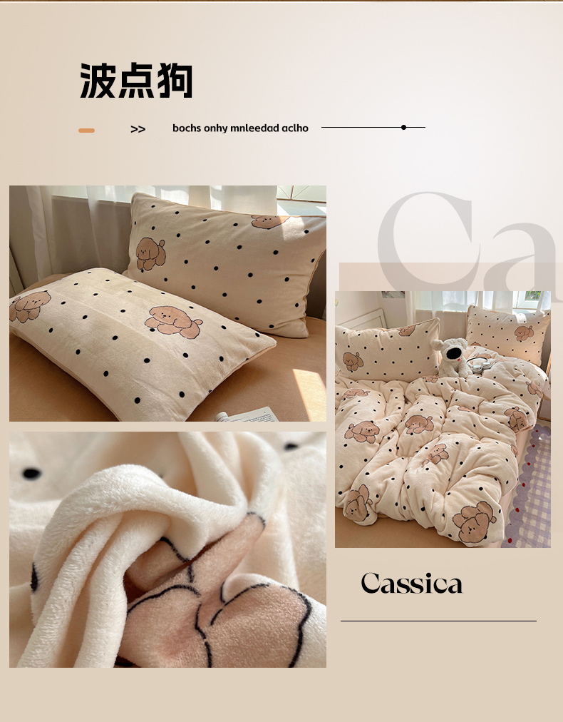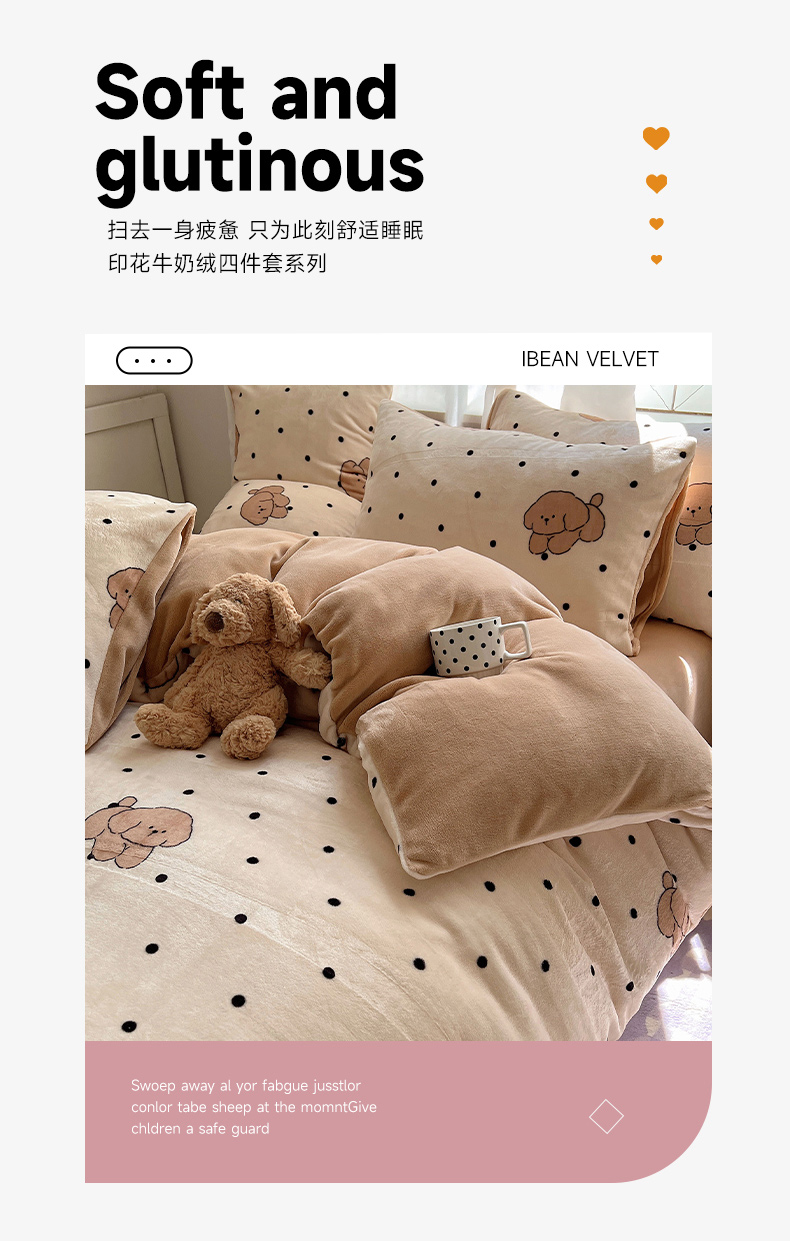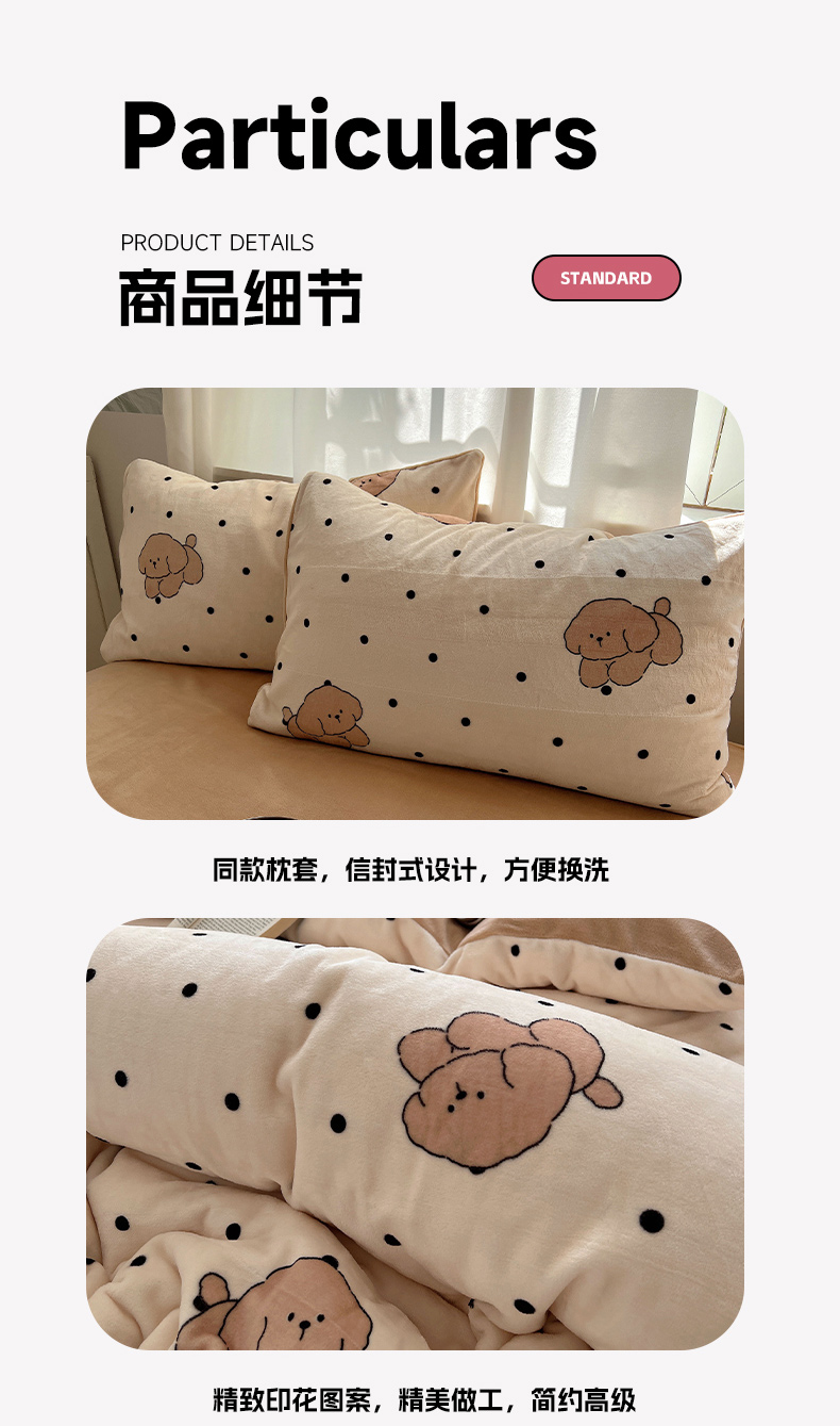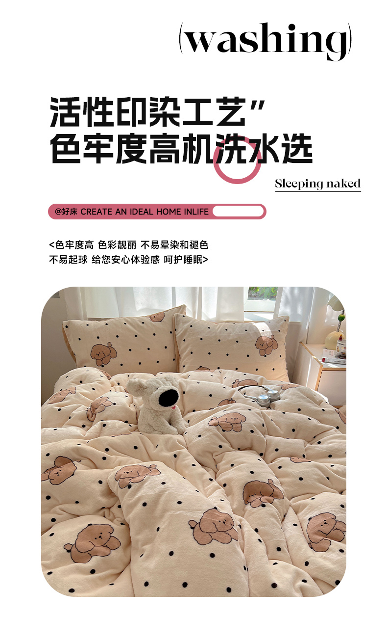 当前位置: 91家纺网 > 商品网购 > 床品套件 > 四件套 > 牛奶绒四件套 > 红嘴企鹅 2025新款精致印花牛奶绒四件套 牛奶绒-波点狗