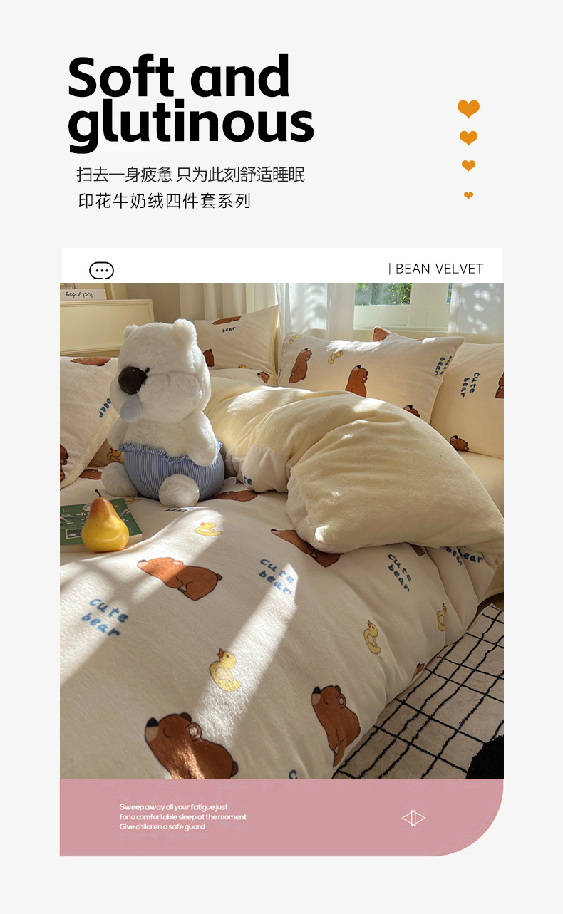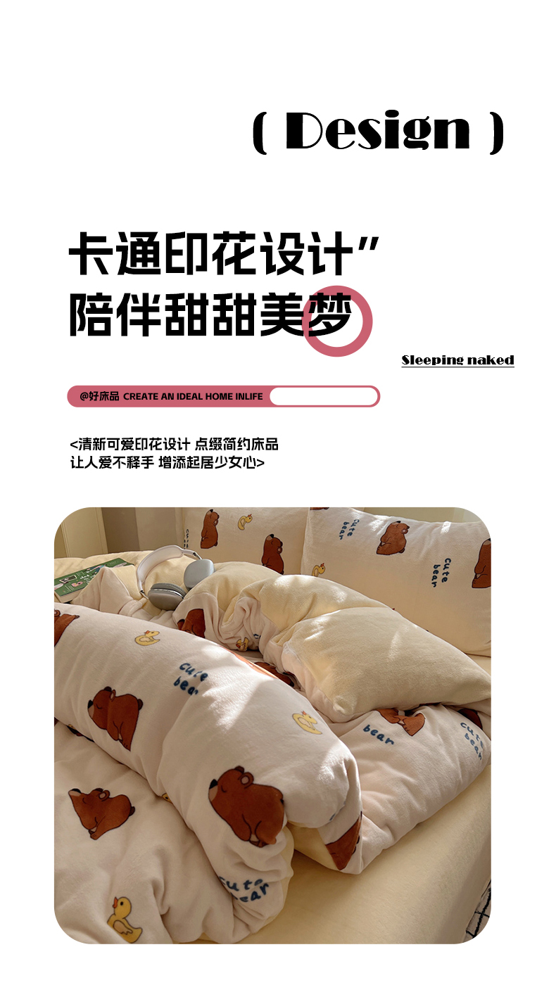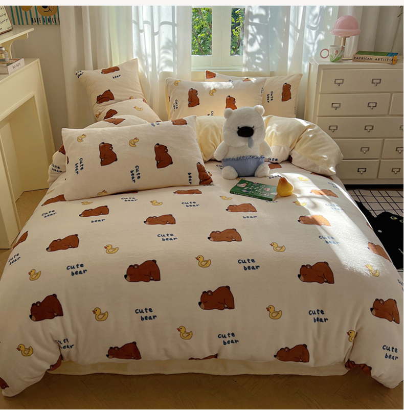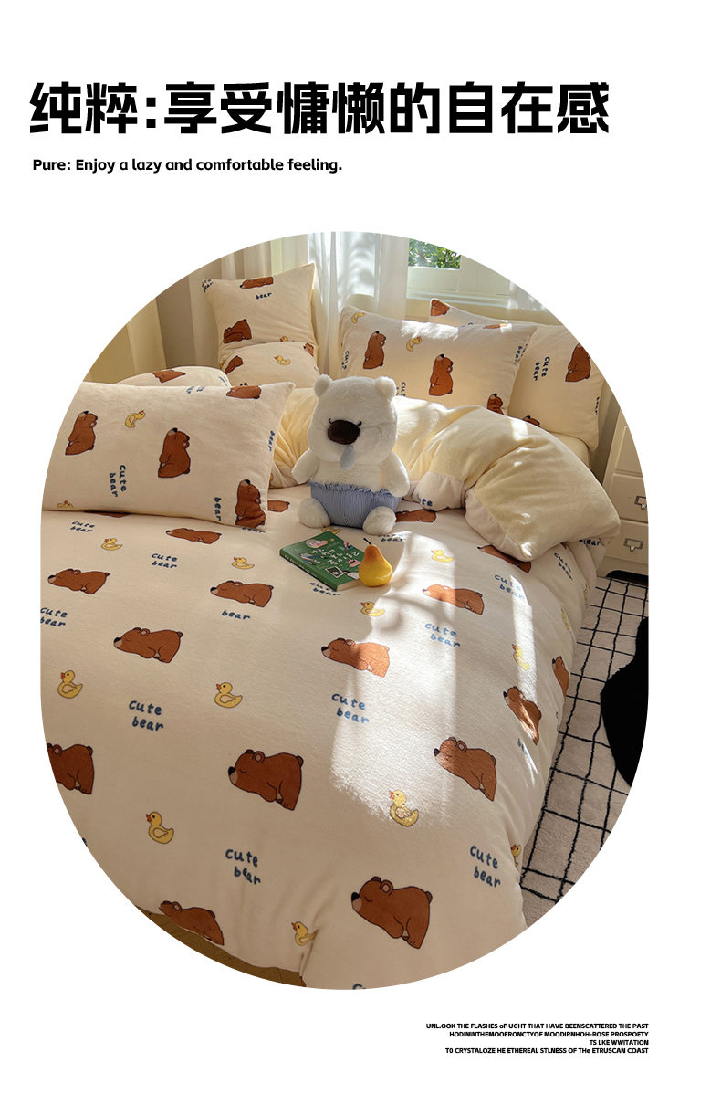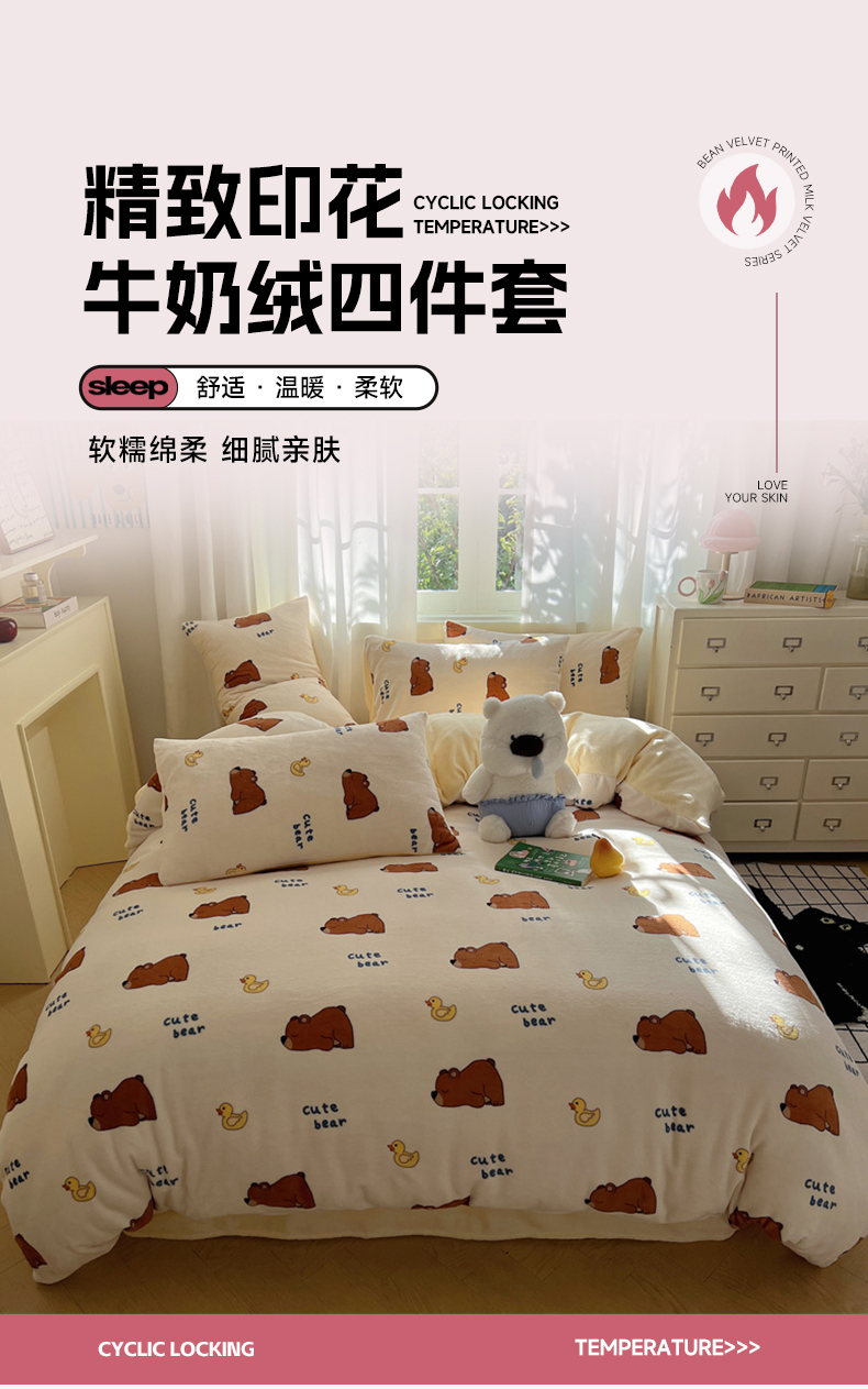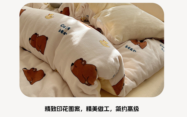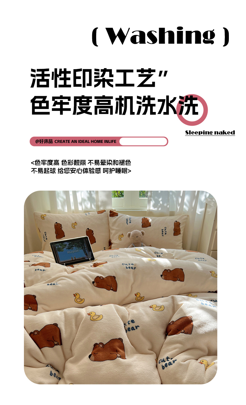 当前位置: 91家纺网 > 商品网购 > 床品套件 > 四件套 > 牛奶绒四件套 > 红嘴企鹅 2025新款精致印花牛奶绒四件套 爬爬熊