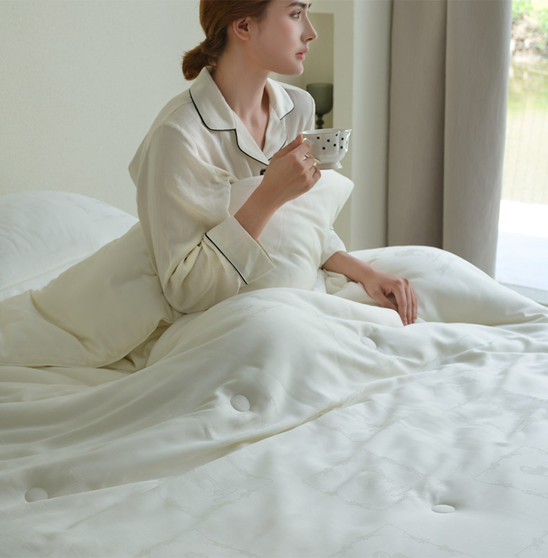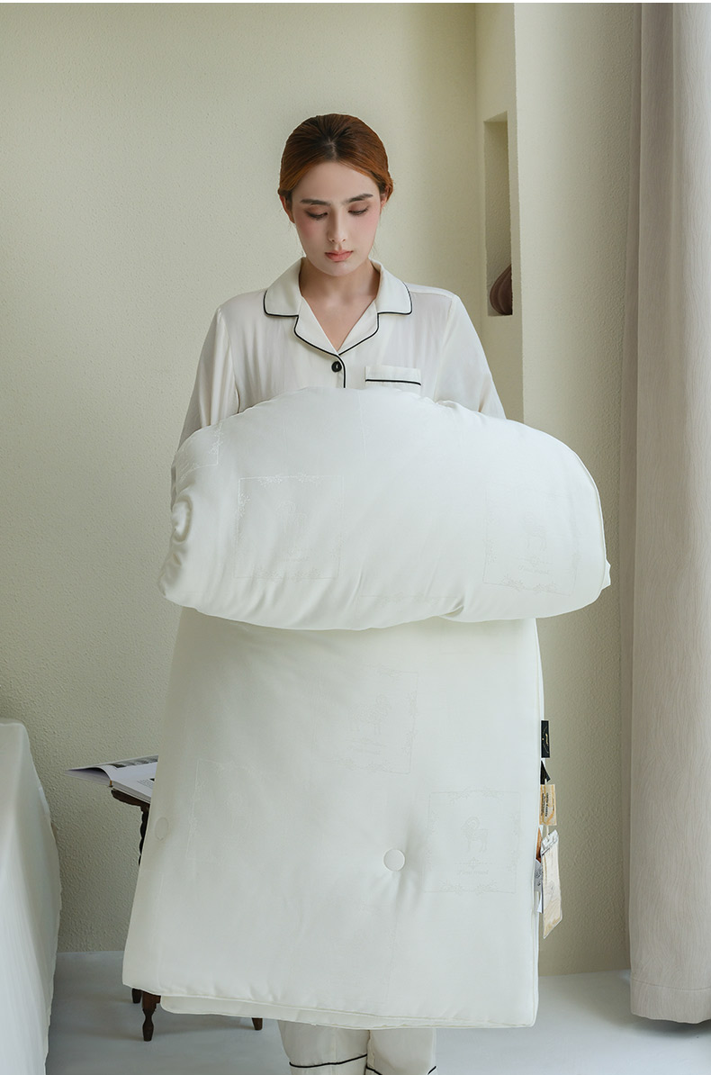 桂雅居 2025新款金糯羊-凯斯米尔羊毛蚕丝提花被被子被芯 浅米白