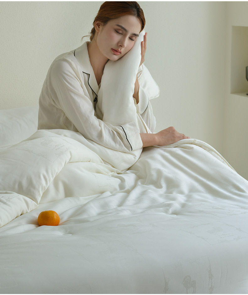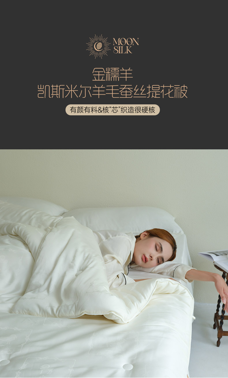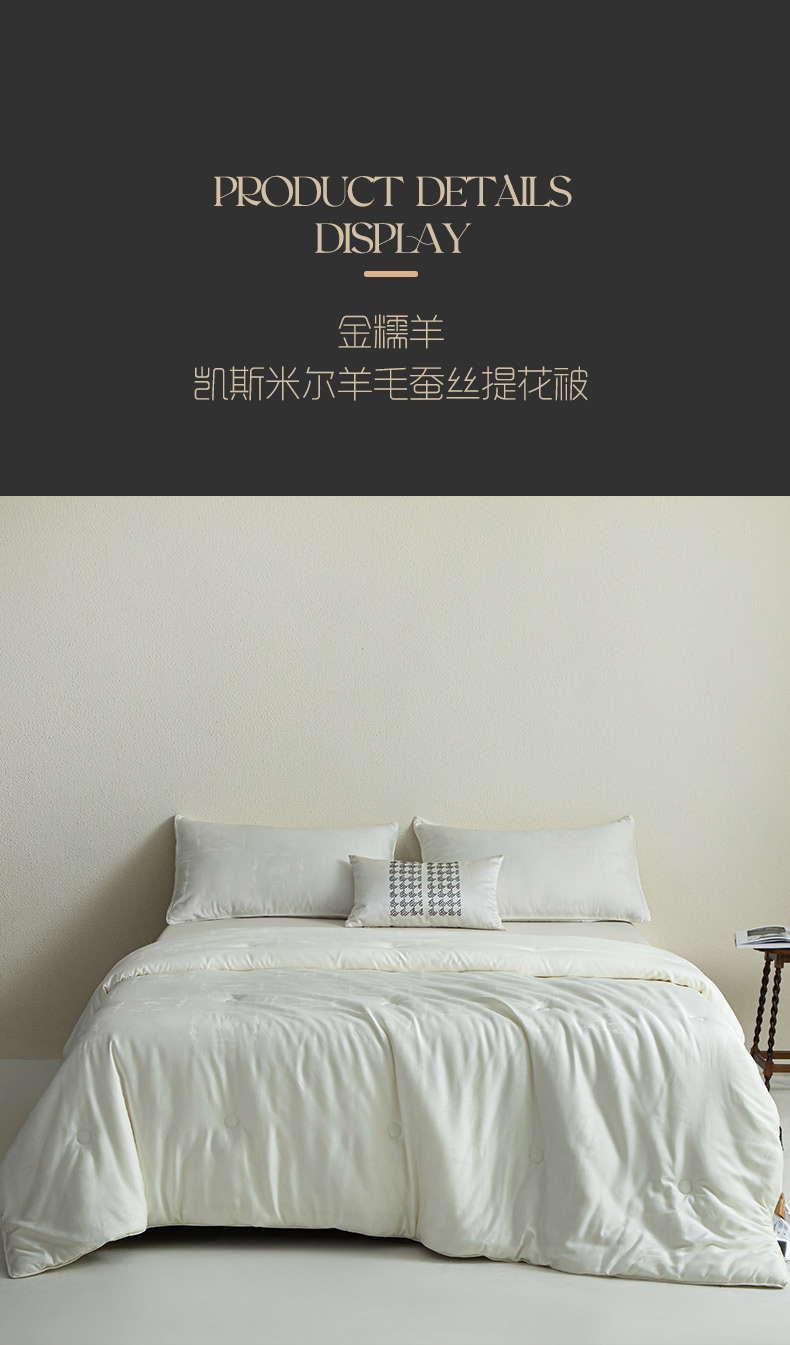商品名称:桂雅居 2025新款金糯羊-凯斯米尔羊毛蚕丝提花被被子被芯 浅米白