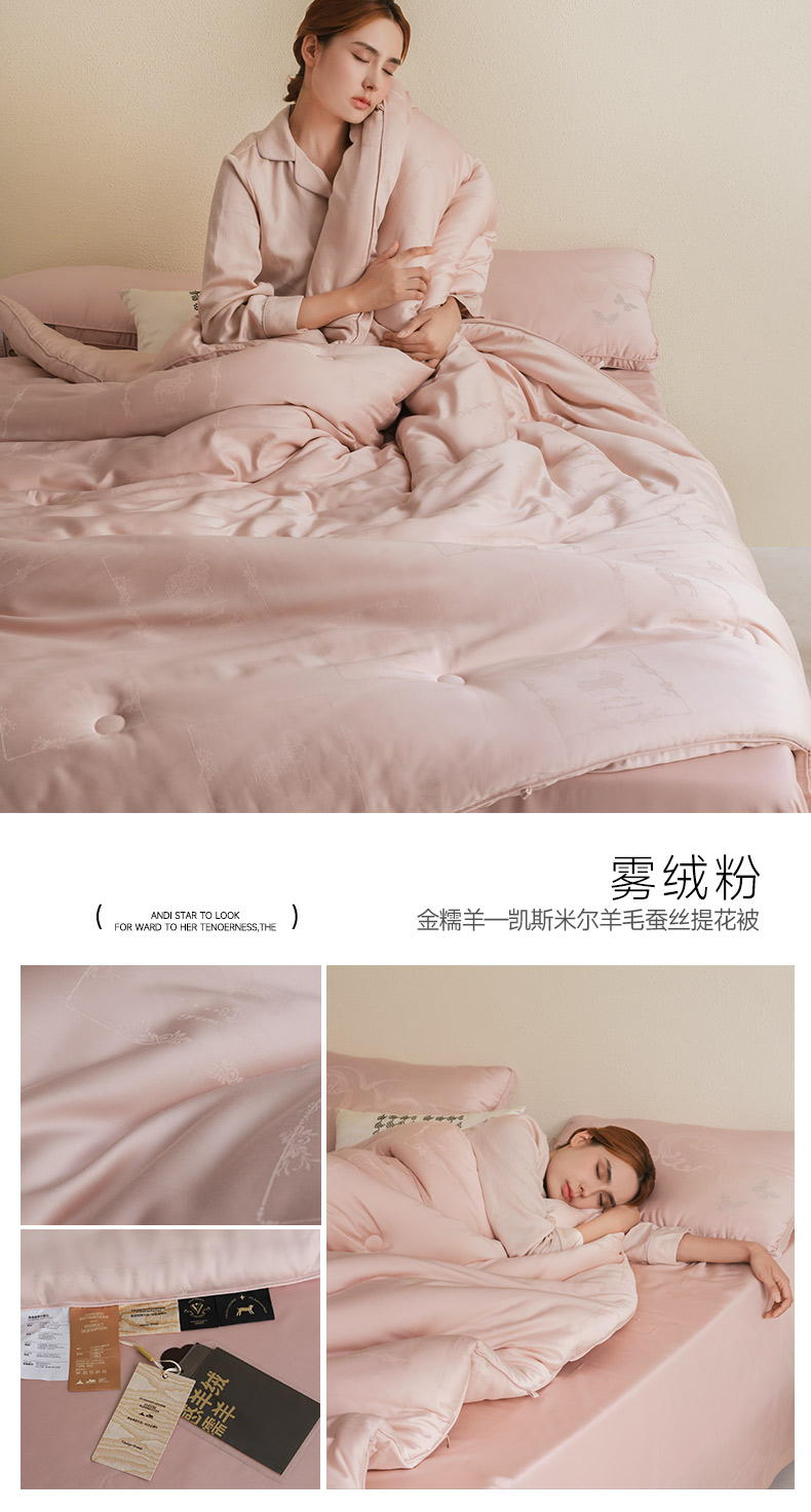 (总)桂雅居 2025新款金糯羊-凯斯米尔羊毛蚕丝提花被被子被芯,浅金色,浅米白,雾绒粉