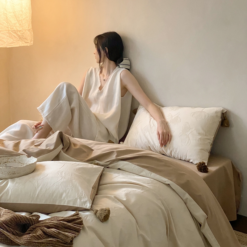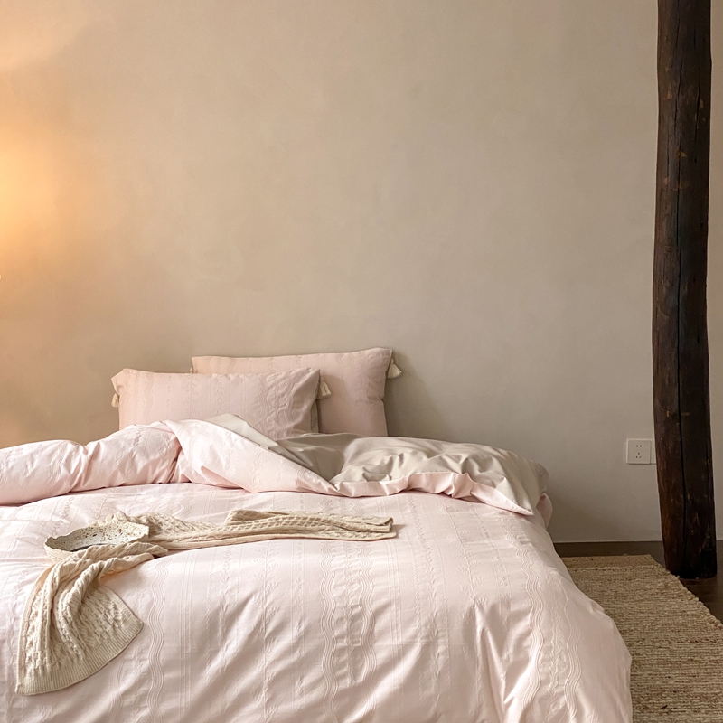 当前位置: 91家纺网 > 商品网购 > 床品套件 > 四件套 > 全棉普通四件套 > 玉宇阁家居 2025新款色织空气全棉纯棉大提花磨毛四件套(流苏款) 流苏款-甜桃也