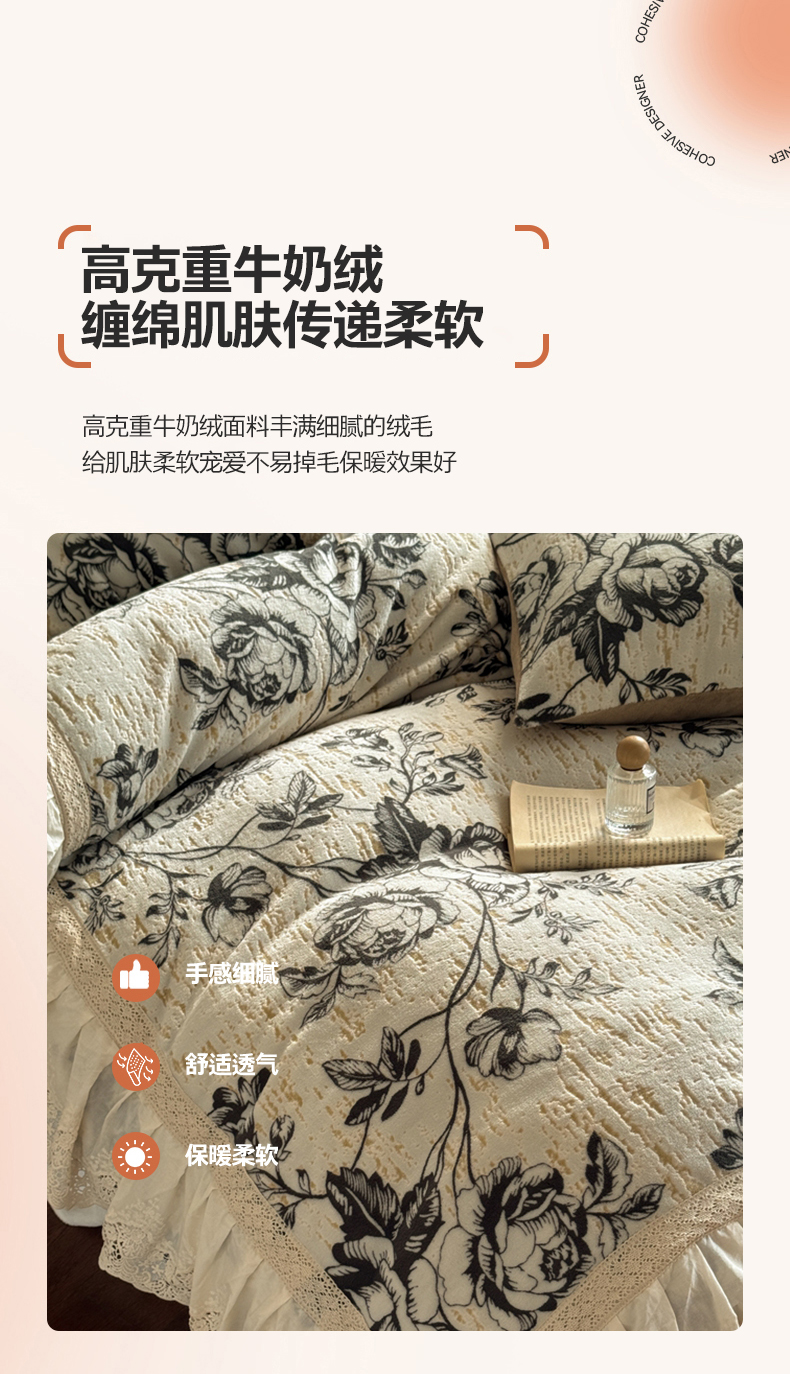 (总)花香四季家纺 2025新款雕花绒牛奶绒夹棉床盖款四件套系列-浪漫情缘,浪漫情缘-粉色,浪漫情缘-米白