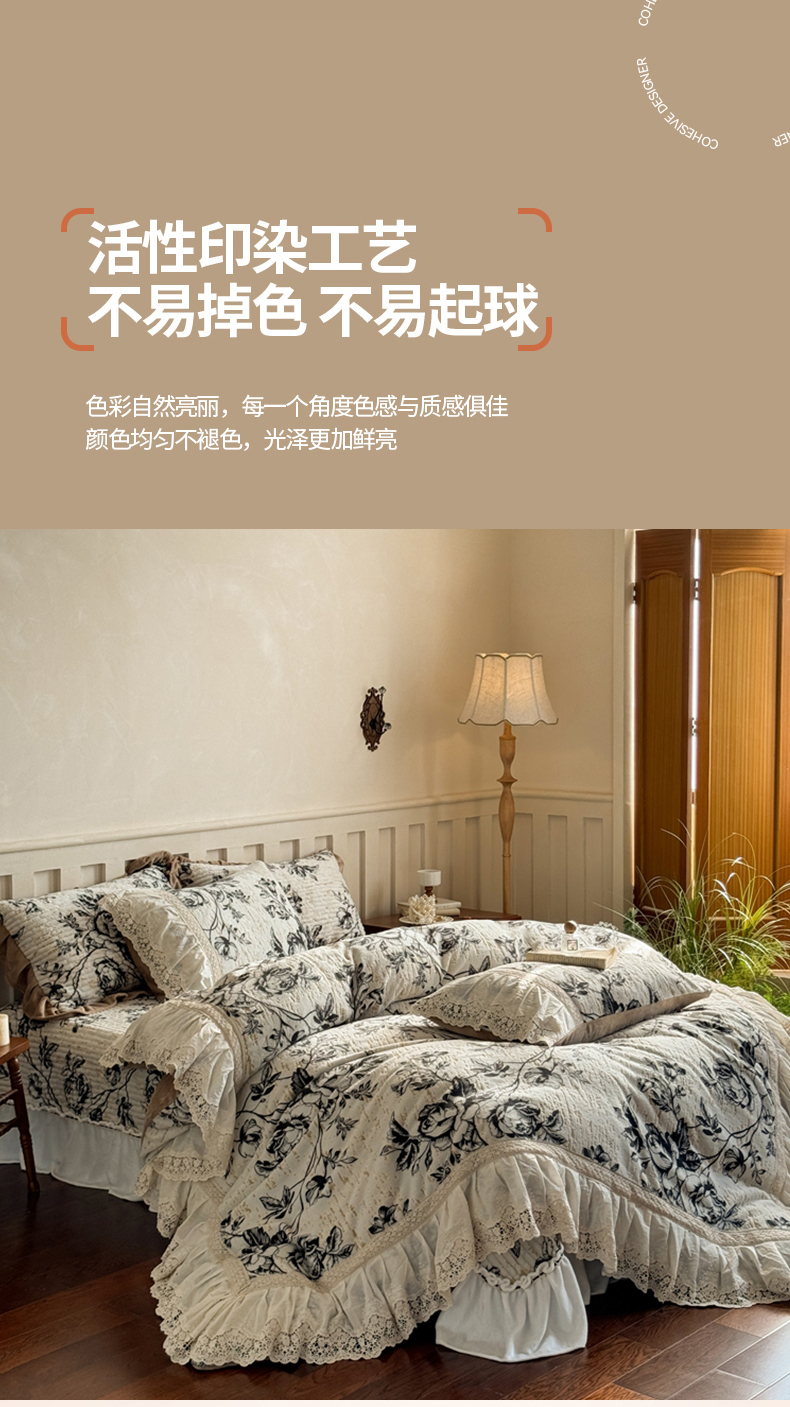 (总)花香四季家纺 2025新款法式夹棉绗缝床裙单件三件套蕾丝公主风-可可甜心,可可甜心-玉,可可甜心-白,可可甜心-灰,可可甜心-绿,可可甜心-紫