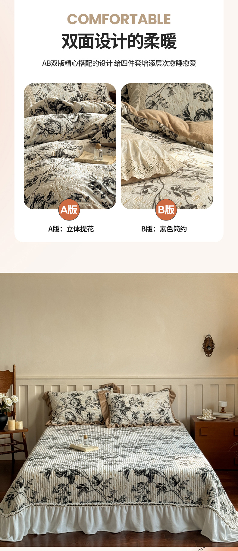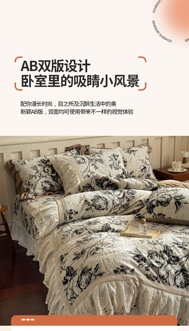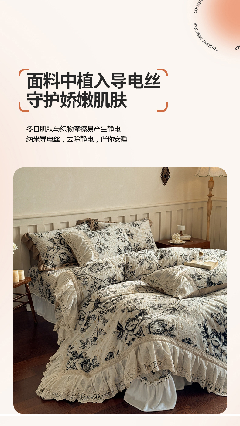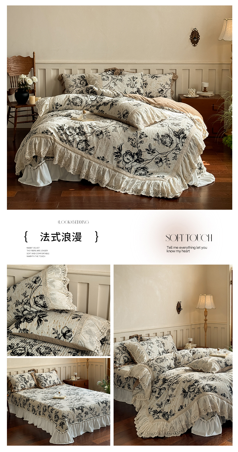 商品名称:花香四季家纺 2025新款雕花绒夹棉床盖款四件套系列 法式浪漫
