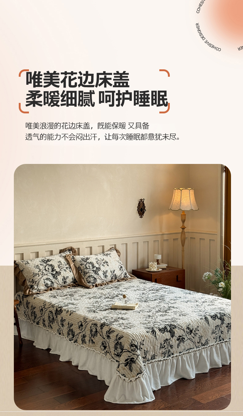(总)花香四季家纺 2025新款牛奶绒夹棉床盖单件三件套-浪漫花语,浪漫花语-奶油白,浪漫花语-复古绿,浪漫花语-樱花粉,浪漫花语-优雅紫