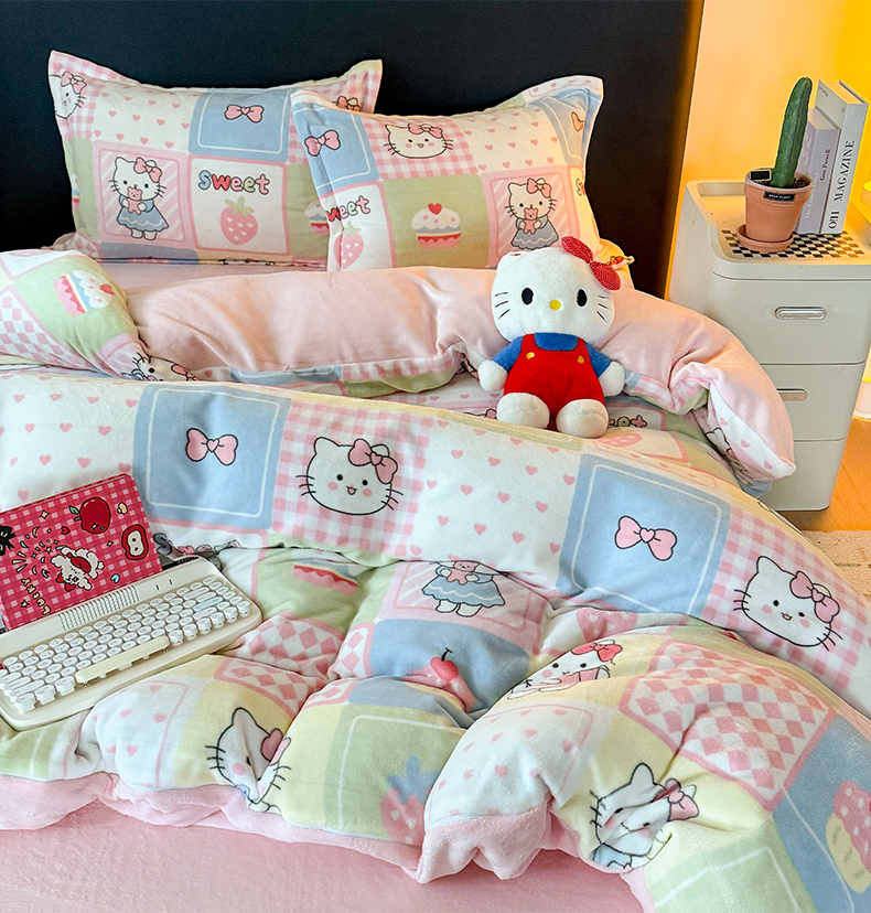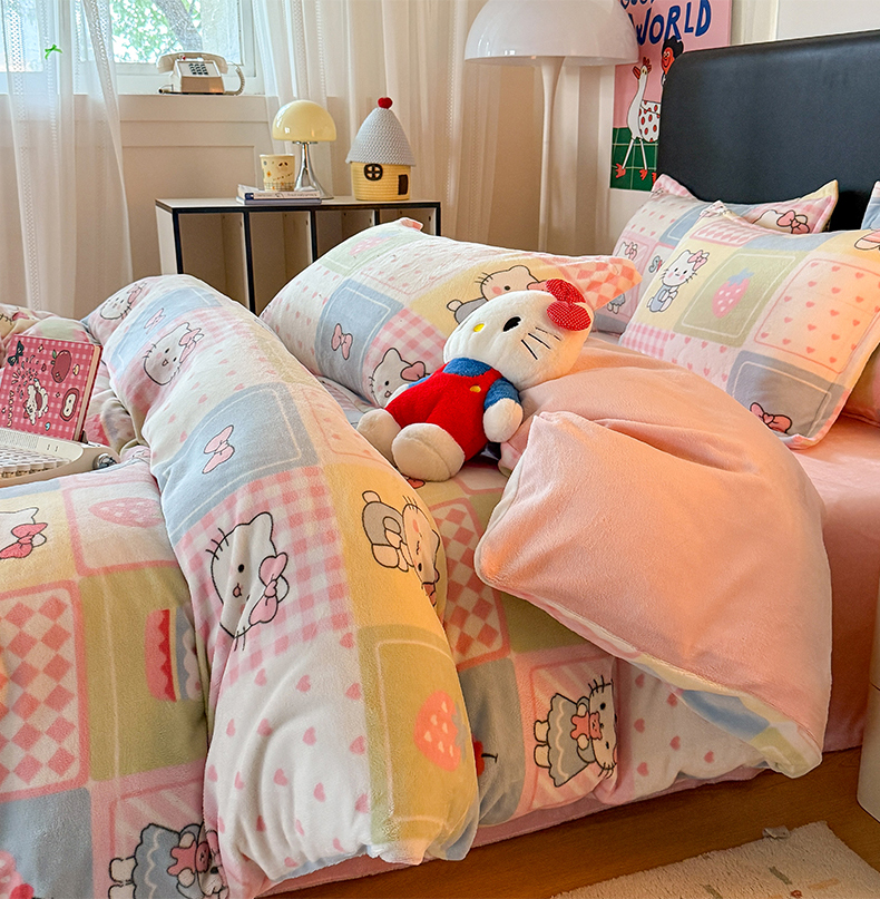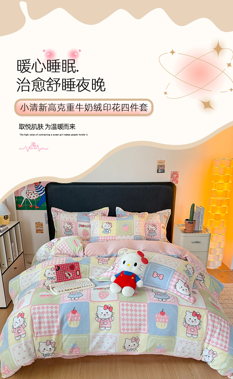 当前位置: 91家纺网 > 商品网购 > 床品套件 > 四件套 > 牛奶绒四件套 > 艾特你 2025新款小清新高克重牛奶绒印花四件套 格子猫咪