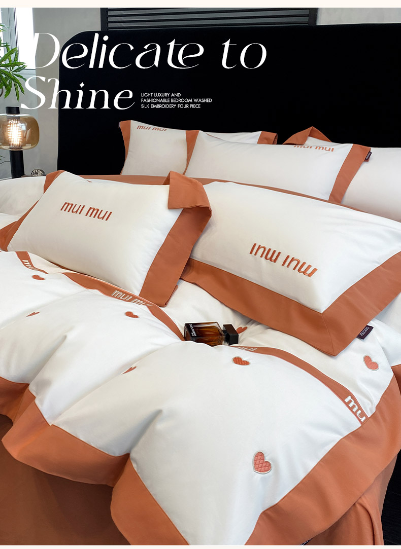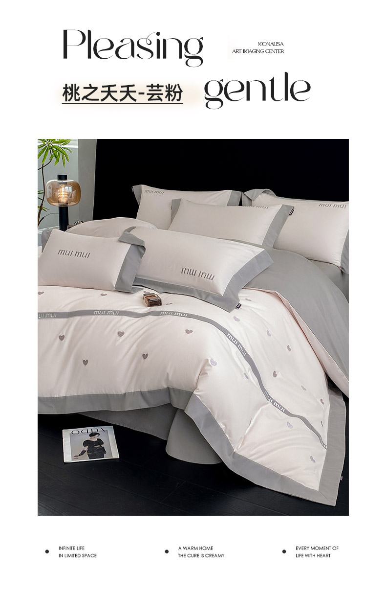当前位置: 91家纺网 > 商品网购 > 床品套件 > 四件套 > 全棉普通四件套 > 高端A类加厚保暖全棉磨毛四件套纯棉被套奢侈品同款刺绣轻奢床笠款秋冬床上用品 桃之夭夭-艾橙
