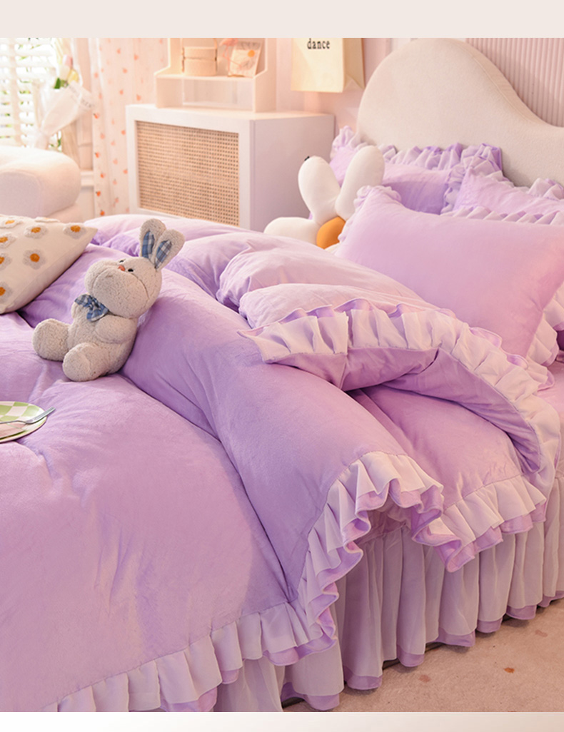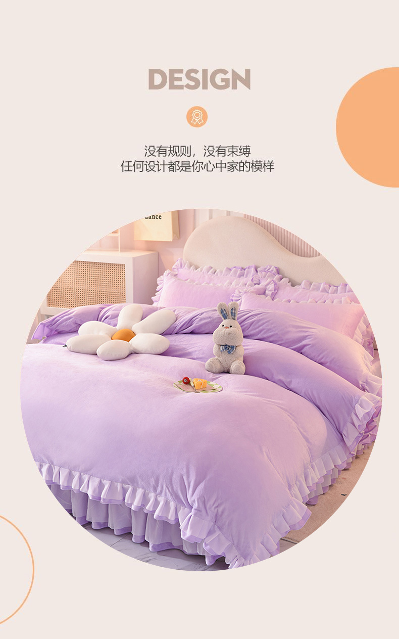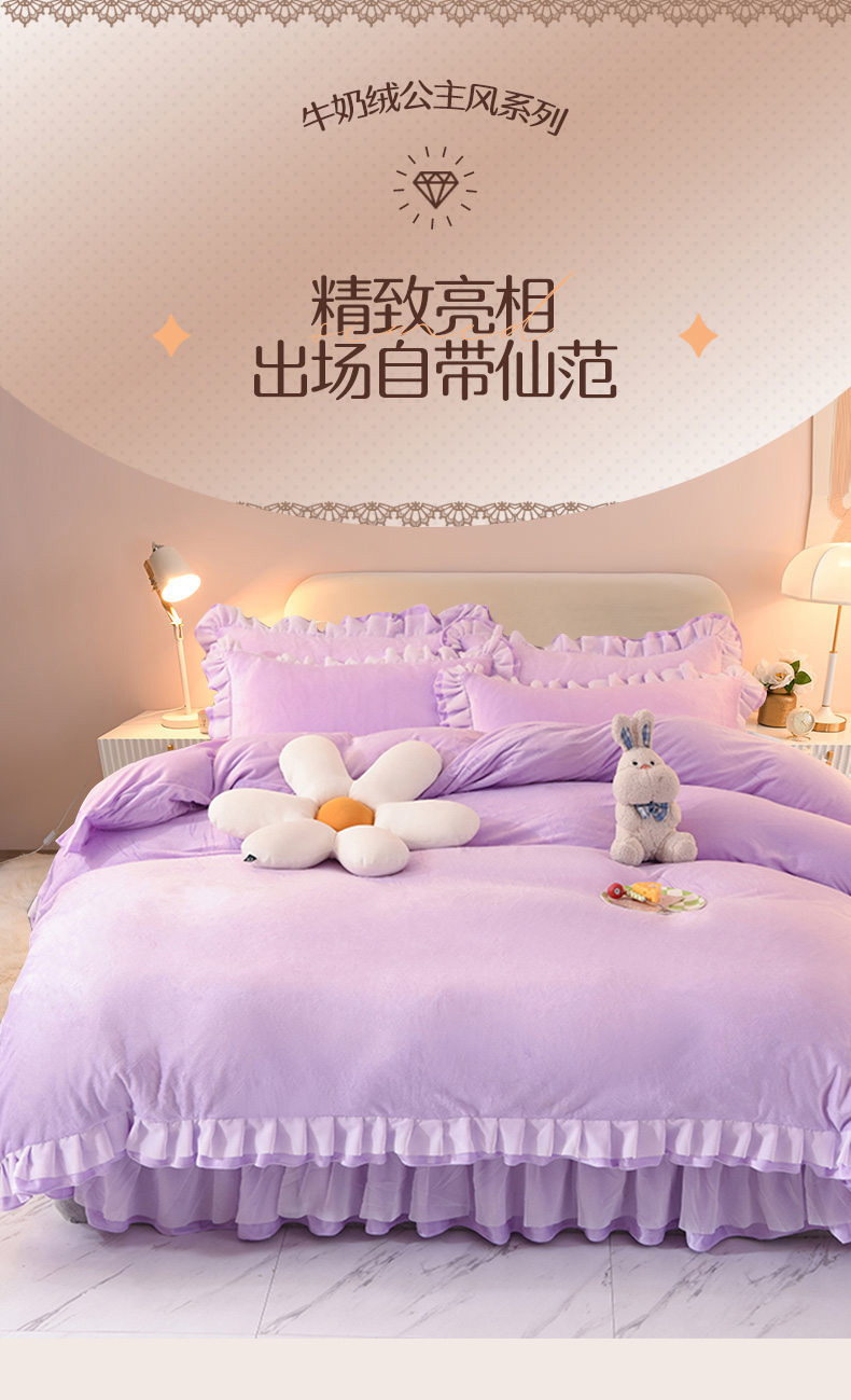 商品名称:后庭寝室 2025新款韩式花边牛奶绒四件套-香香公主系列 香香公主-浅紫