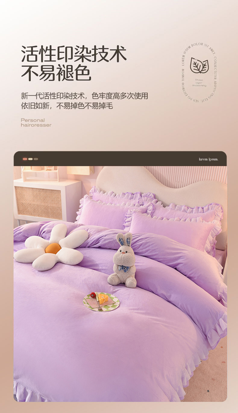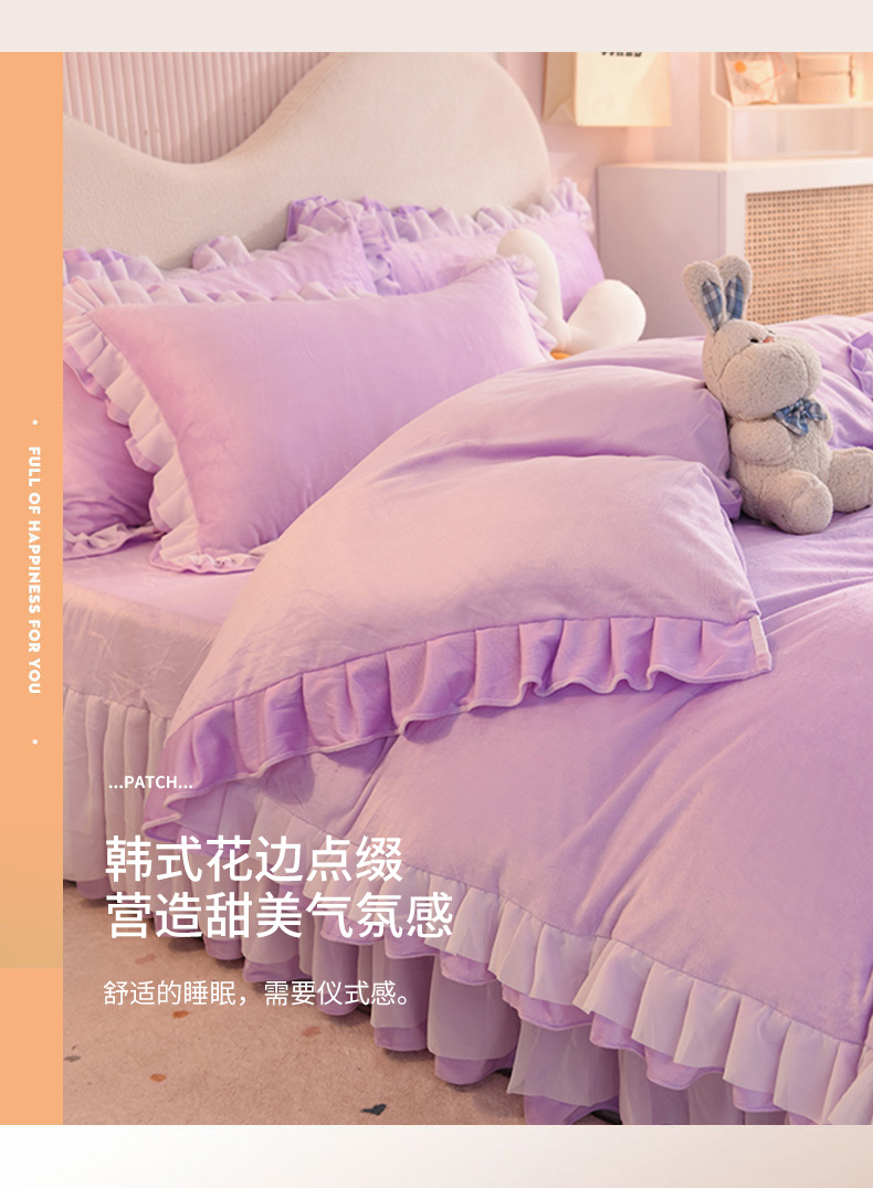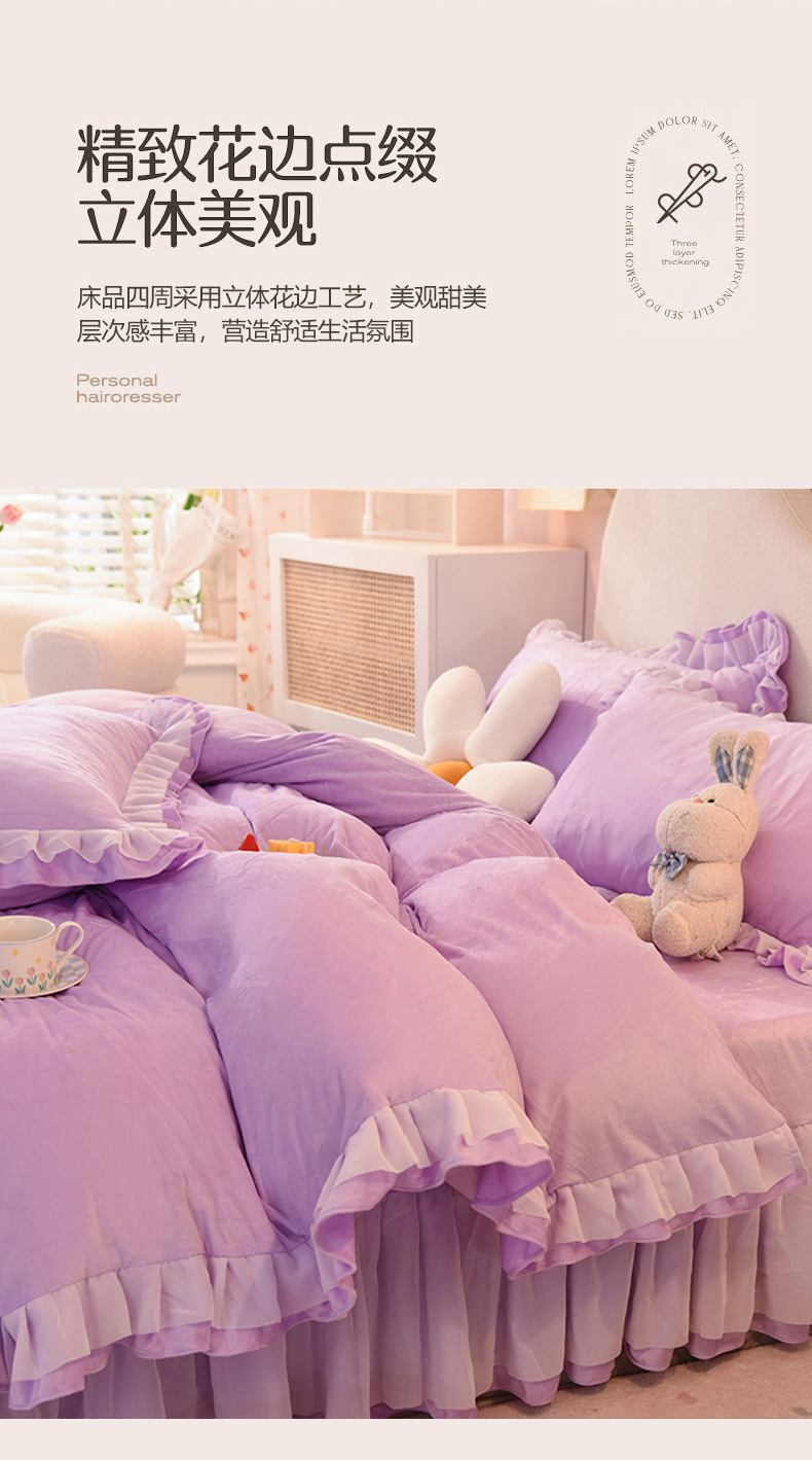 后庭寝室 2025新款韩式花边牛奶绒四件套-香香公主系列 香香公主-浅紫