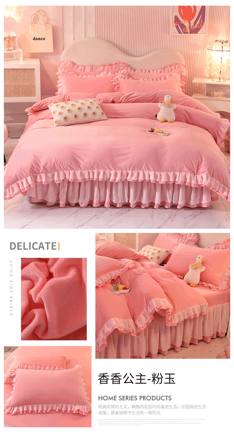 (总)后庭寝室 2025新款韩式花边牛奶绒四件套-香香公主系列,香香公主-嫩玉,香香公主-粉色,香香公主-豆沙,香香公主-粉玉,香香公主-湖蓝,香香公主-暖黄,香香公主-浅灰,香香公主-浅蓝,香香公主-浅紫,香香公主-玉色