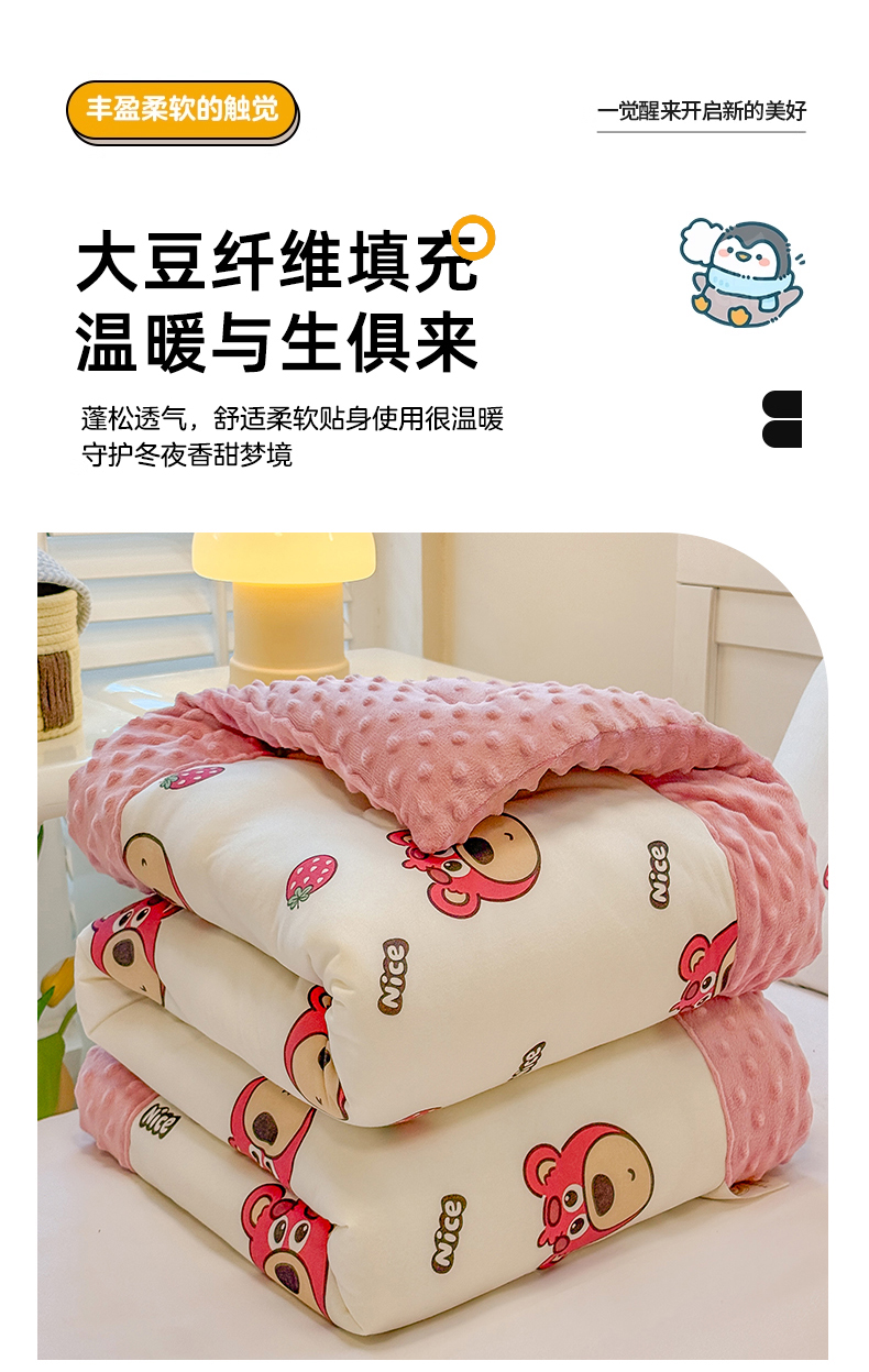 (总)天瑜家纺205新款A类针织面料手包豆豆绒冬被大豆被