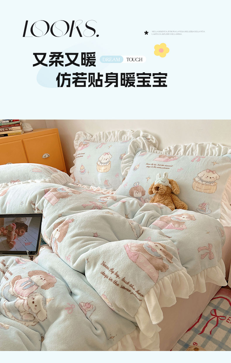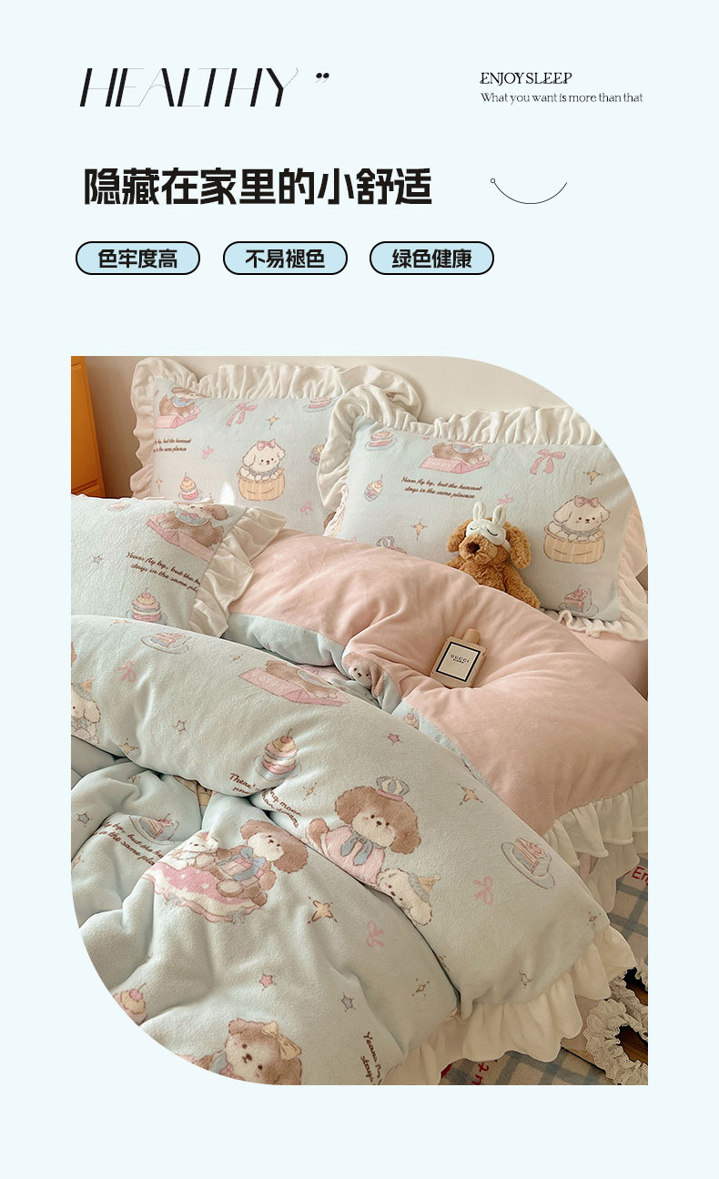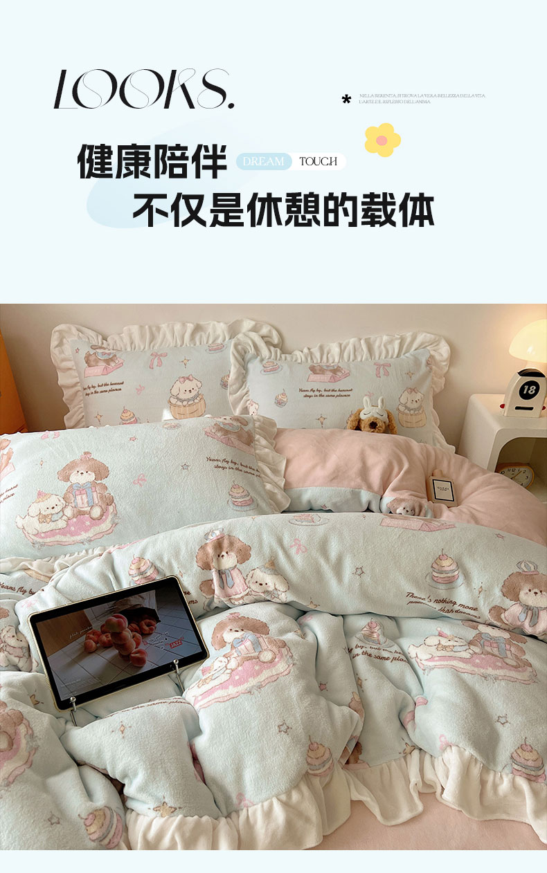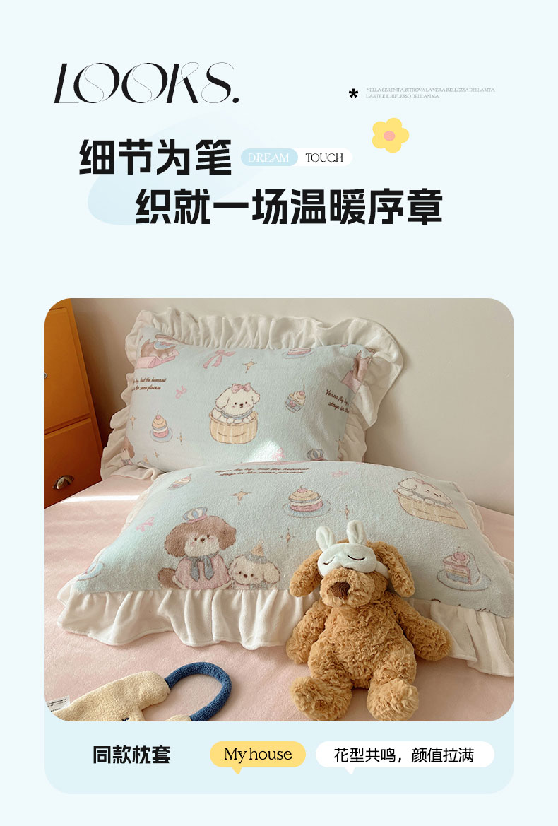 当前位置: 91家纺网 > 商品网购 > 床品套件 > 四件套 > 牛奶绒四件套 > 六巷胡同 2025新款韩式博主风花边款INS卡通牛奶绒四件套(第二系) 花边蛋糕奶油犬