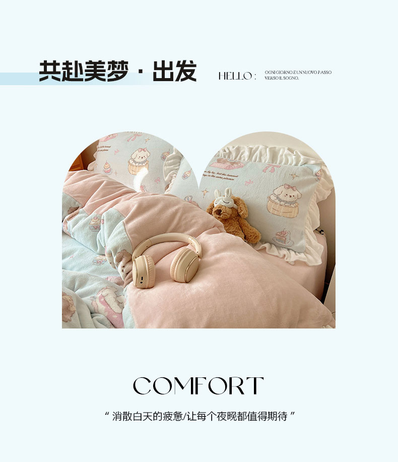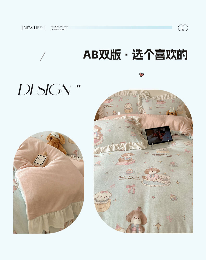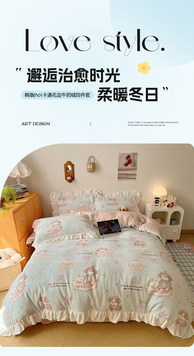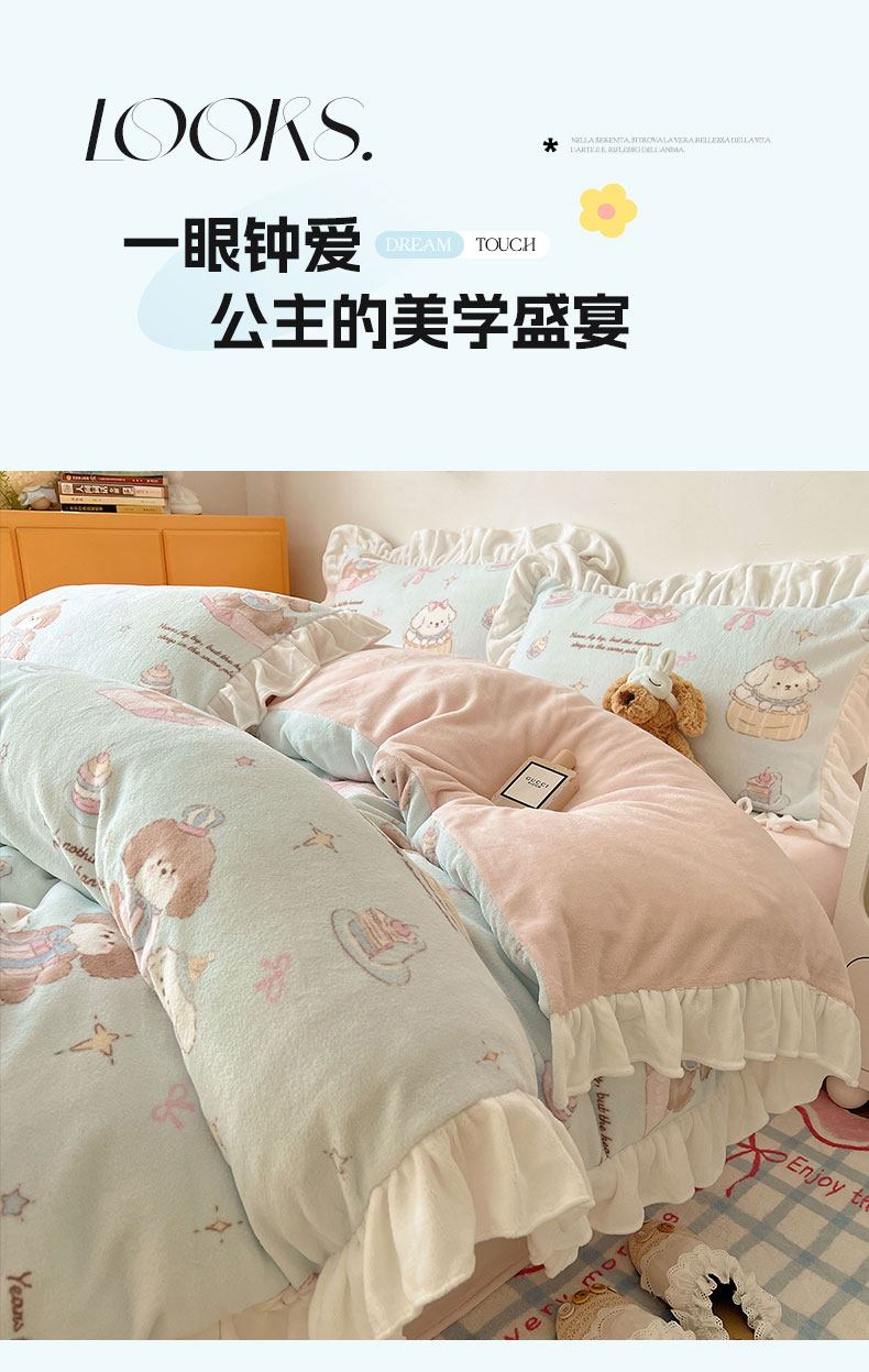 当前位置: 91家纺网 > 商品网购 > 床品套件 > 四件套 > 牛奶绒四件套 > 六巷胡同 2025新款韩式博主风花边款INS卡通牛奶绒四件套(第二系) 花边蛋糕奶油犬