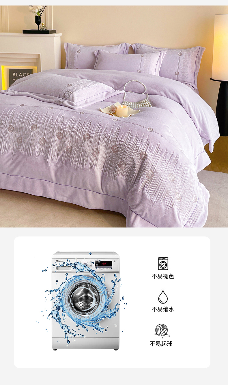 当前位置: 91家纺网 > 商品网购 > 床品套件 > 四件套 > 牛奶绒四件套 > 新方向 2025新款全消光A类刺绣牛奶绒四件套-玫瑰情缘 玫瑰情缘-魅紫