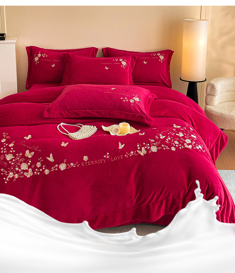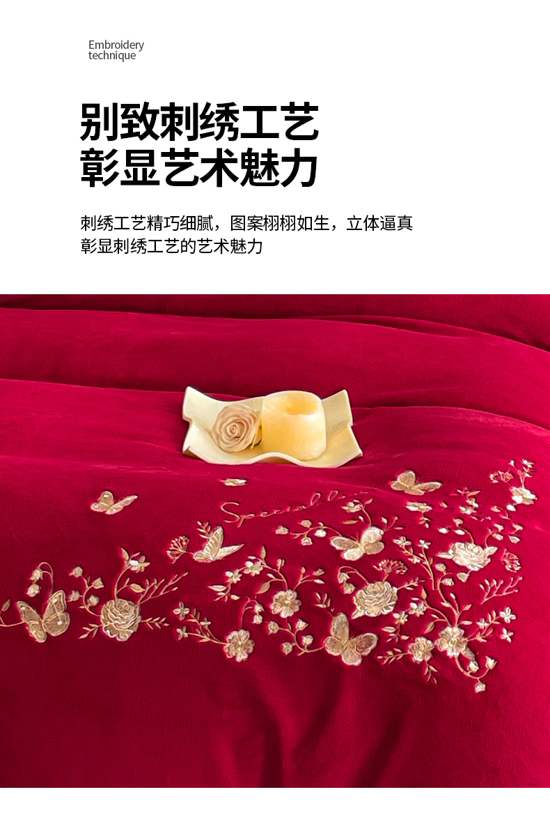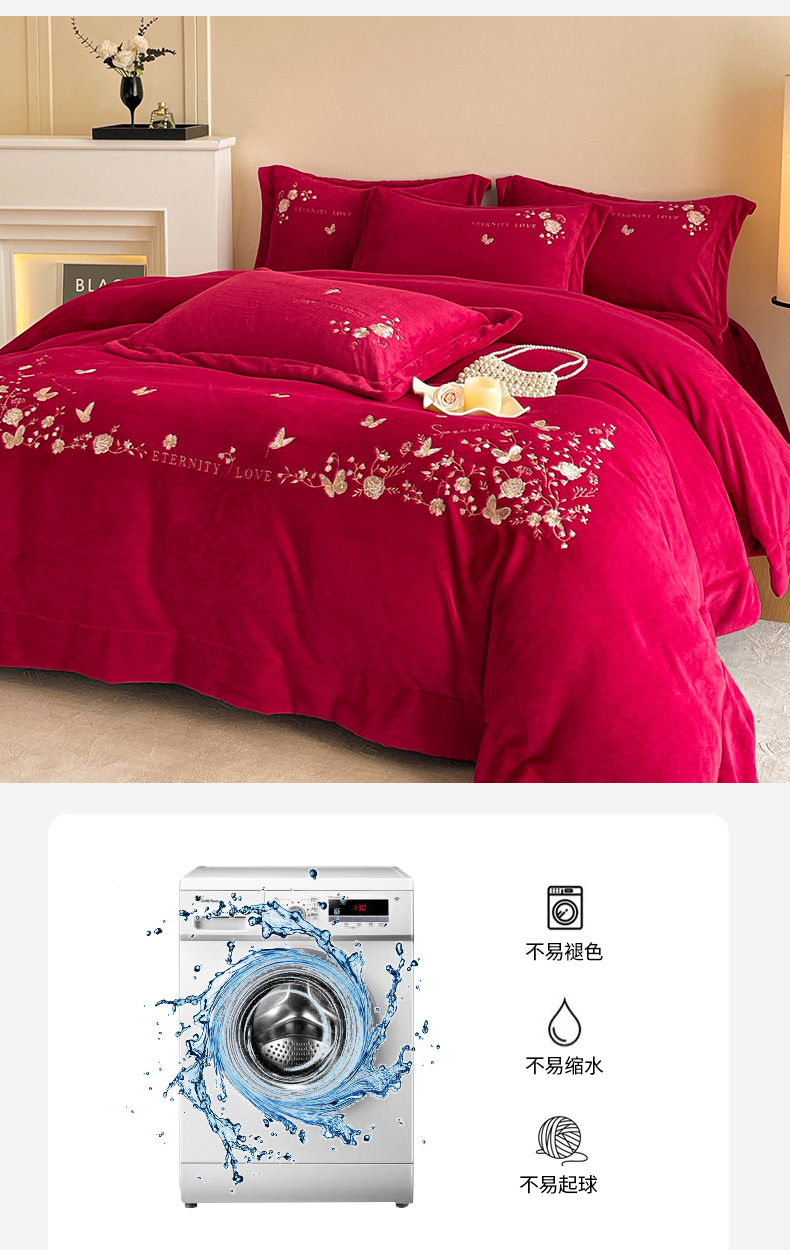 当前位置: 91家纺网 > 商品网购 > 床品套件 > 四件套 > 牛奶绒四件套 > 新方向 2025新款全消光A类刺绣牛奶绒四件套-浮生若梦 浮生若梦-洋酒红