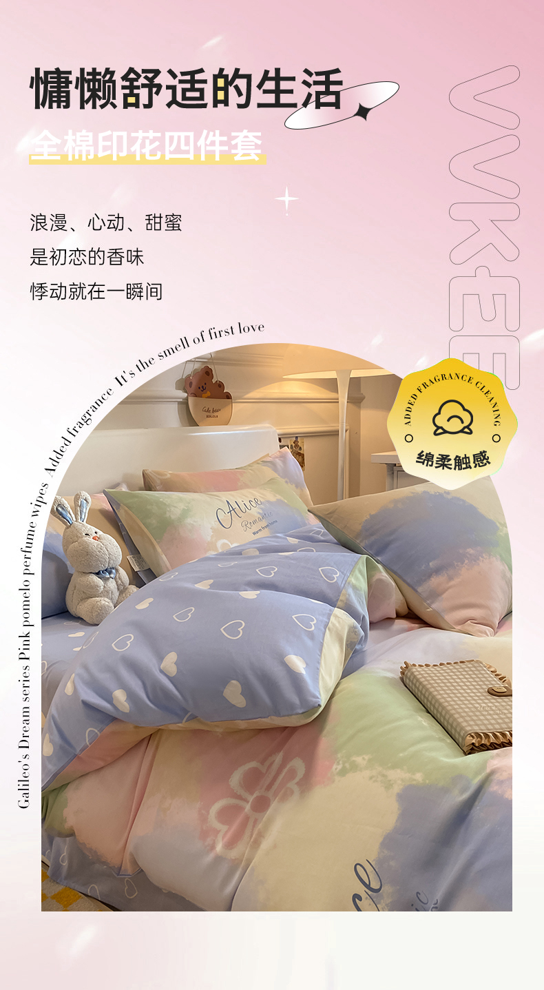 商品名称:澜妃 2025春夏新款12868全棉纯棉印花单被套 渲染
