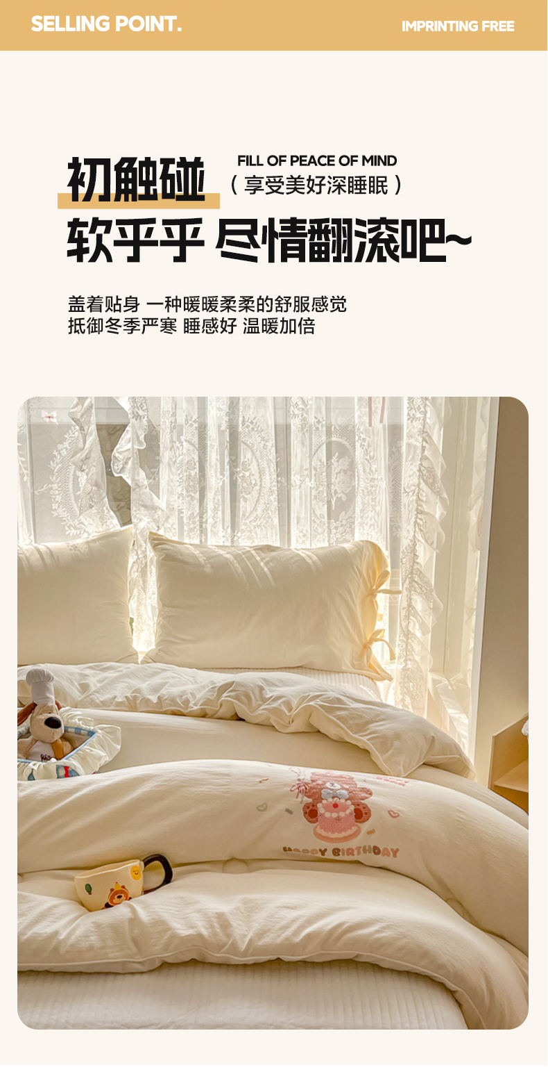 (总)漫仙阁家纺 2025新品云朵棉可爱风卡通烫画单床笠枕套三件套,小浣熊,邻家女孩,小青蛙,兔小姐,花仙子,狗狗家族