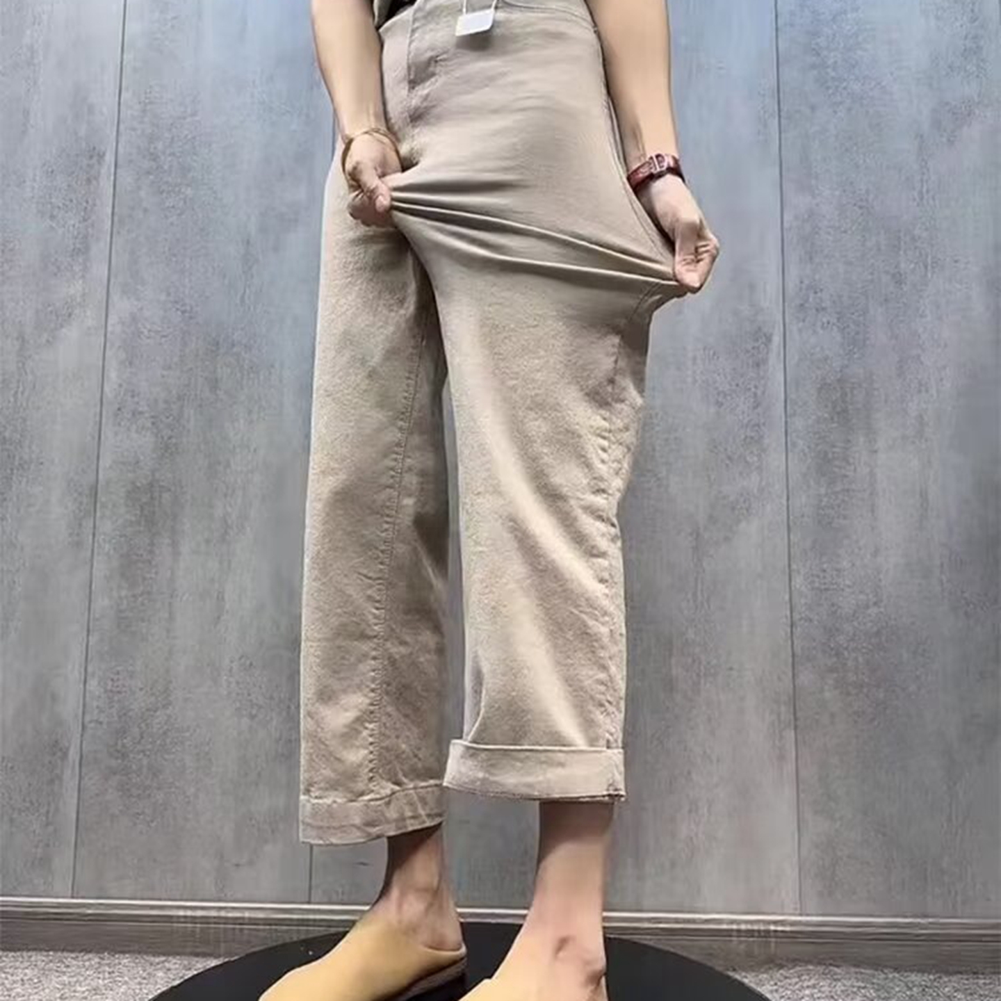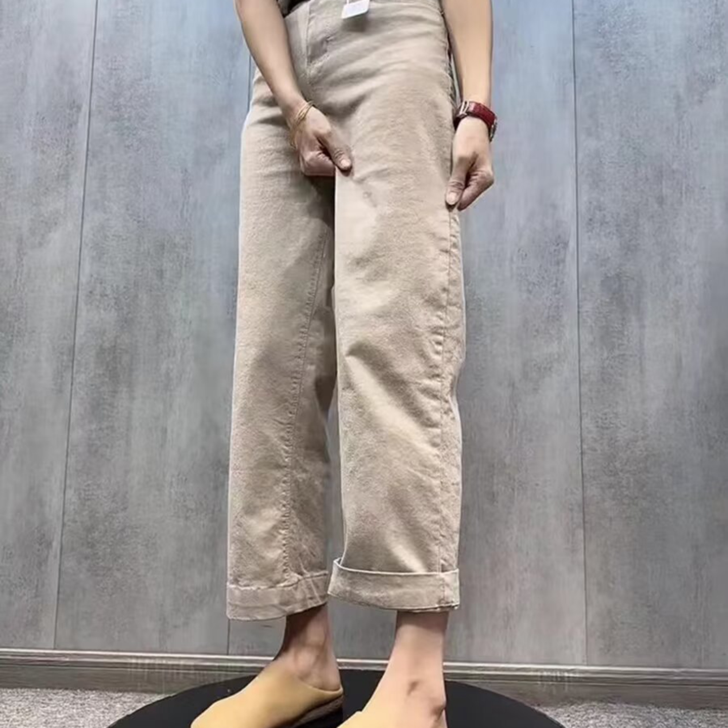 商品名称:洛兰沙家居馆【只代发】【只代发】 2025只代发欧货弹力牛仔裤女秋季2025新款高腰直筒宽松显瘦阔腿裤九分裤子32 白色